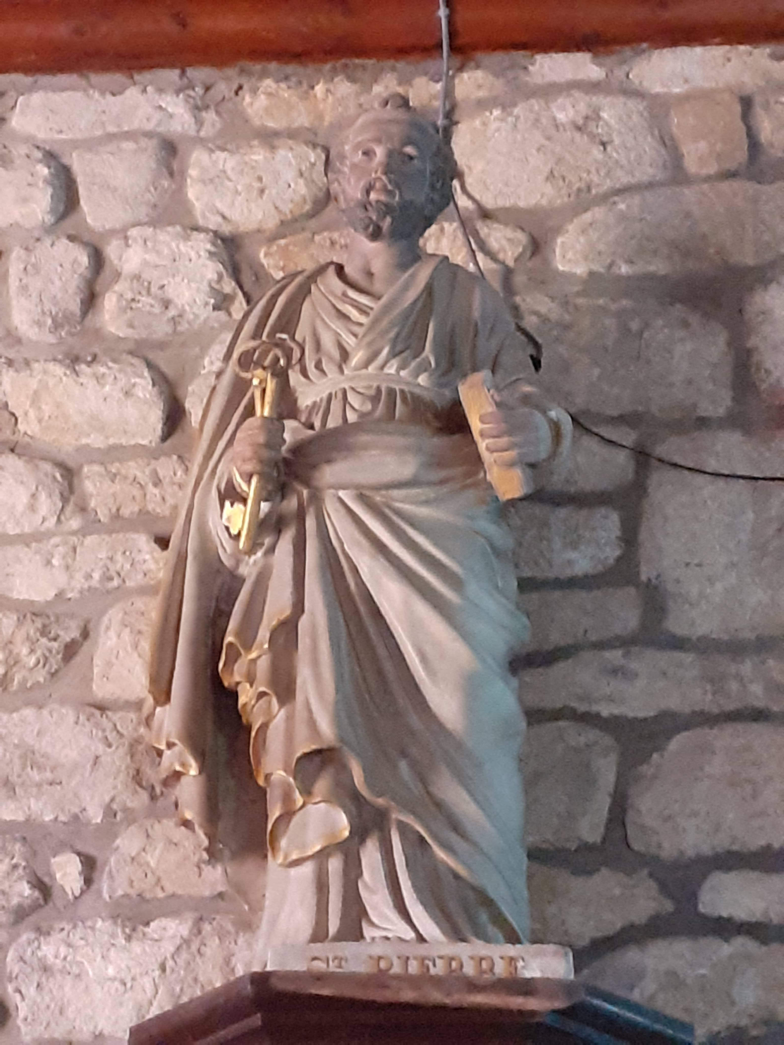 05/2022 - Pte église sympa, en plein milieu bourg. Jolis vitraux, statuettes dont Saint-Gildas, malheureusement bien sombre malgré cette belle journée ensoleillée. Un clocher bien solide.