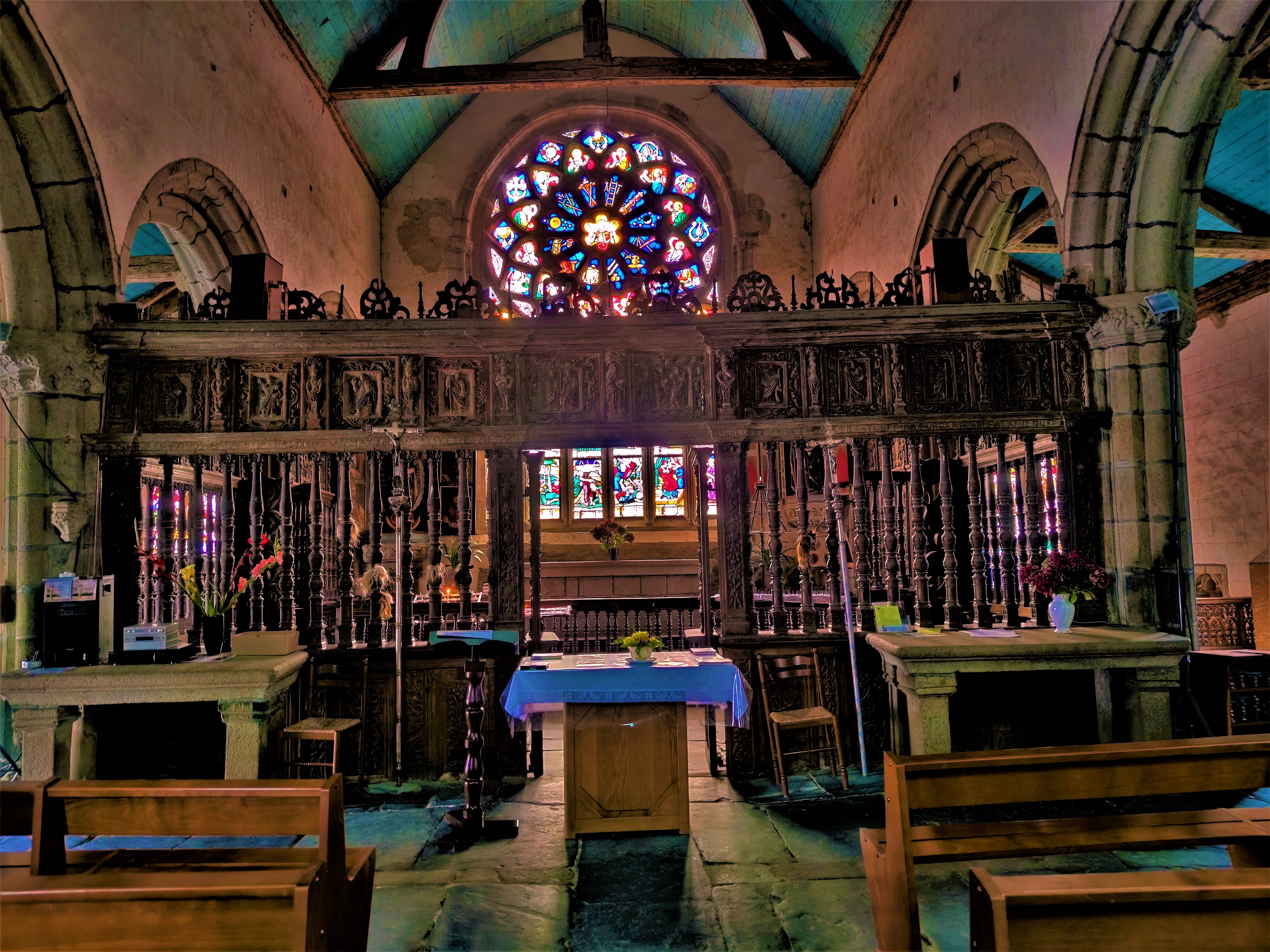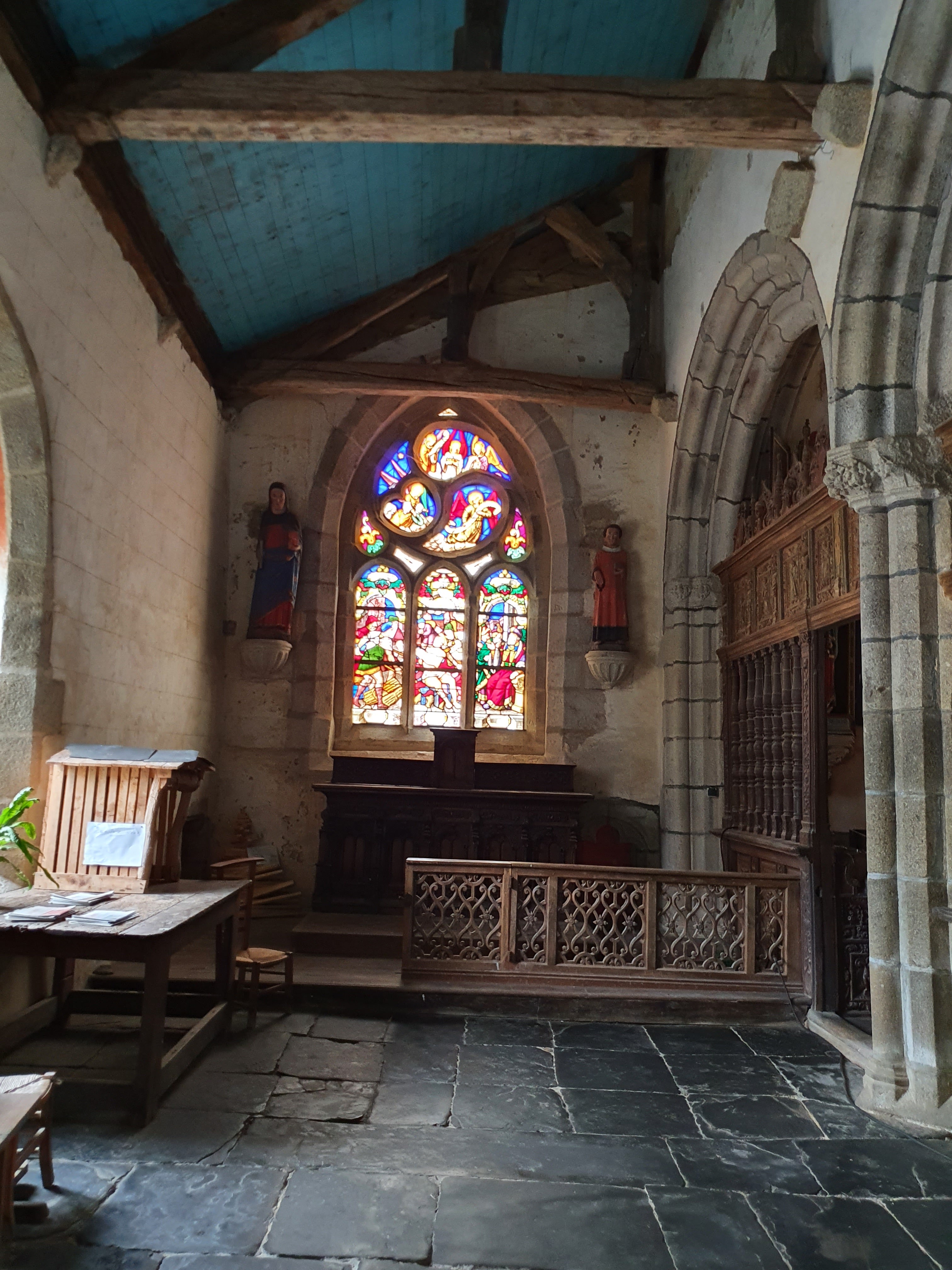 Magnifique découverte avec un splendide vitrail et son jubé tout cela niché dans un écrin de verdure