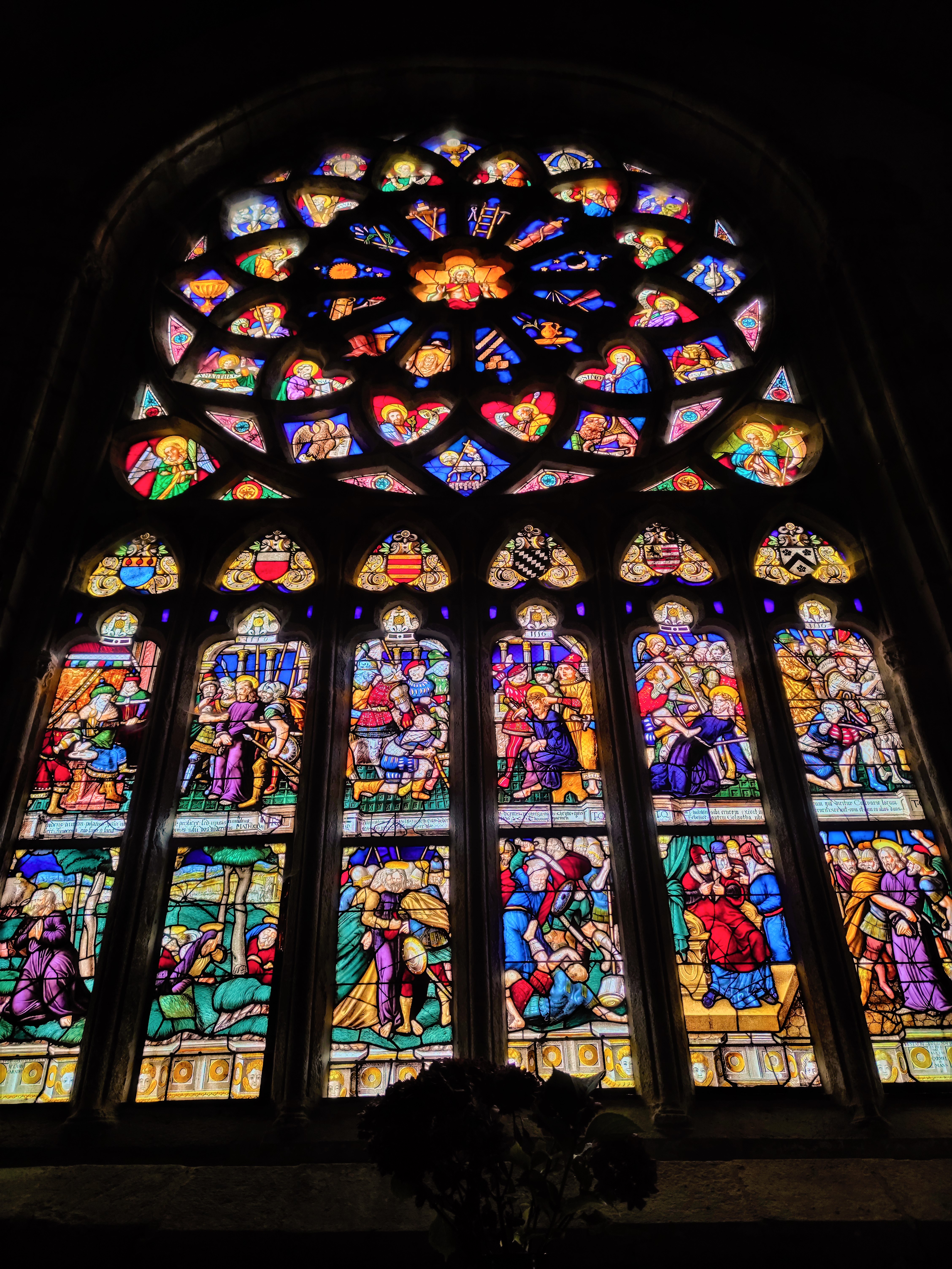 Magnifique clôture de chœur et vitraux du 16e siècle. Vaut le détour !!