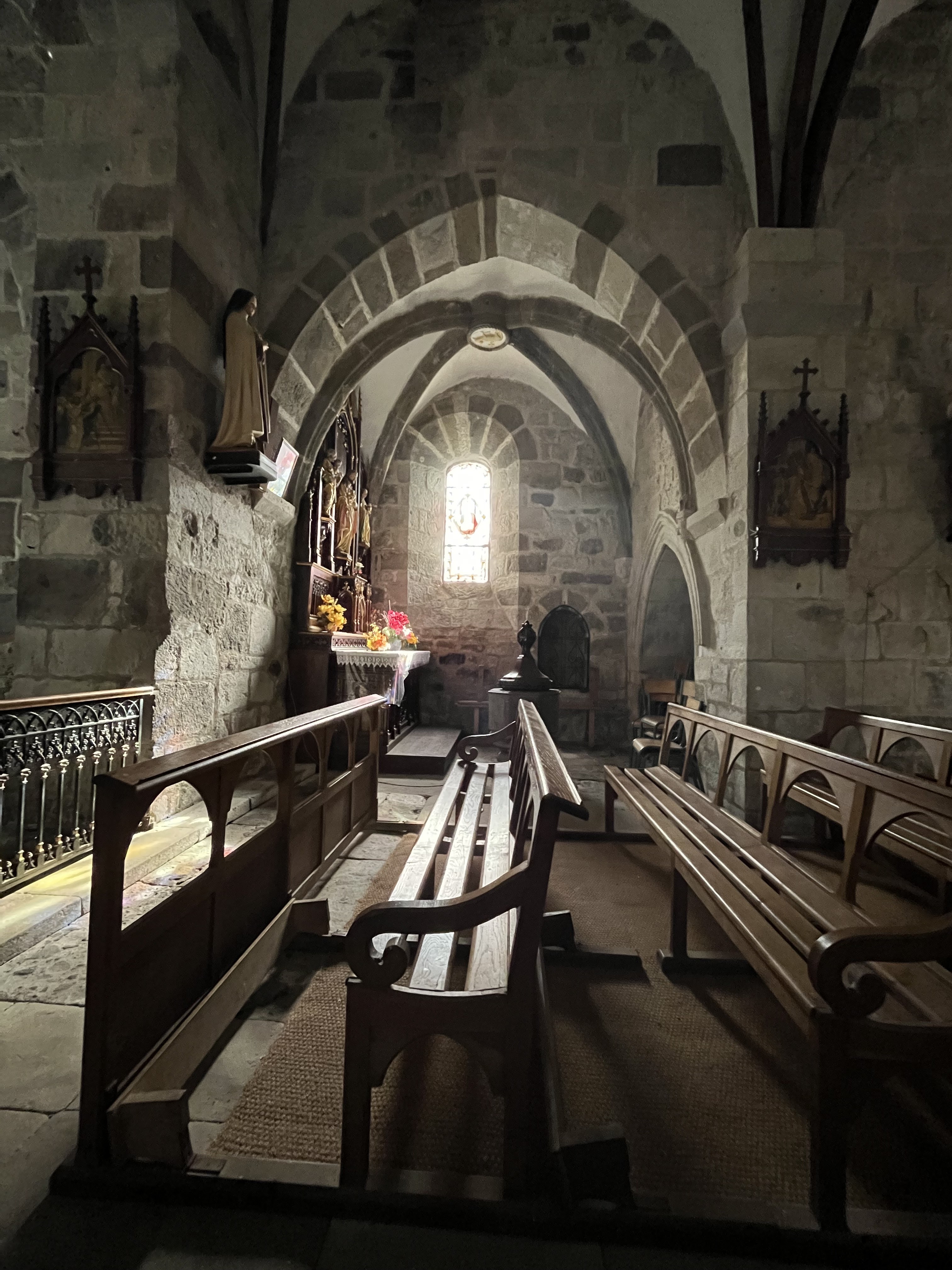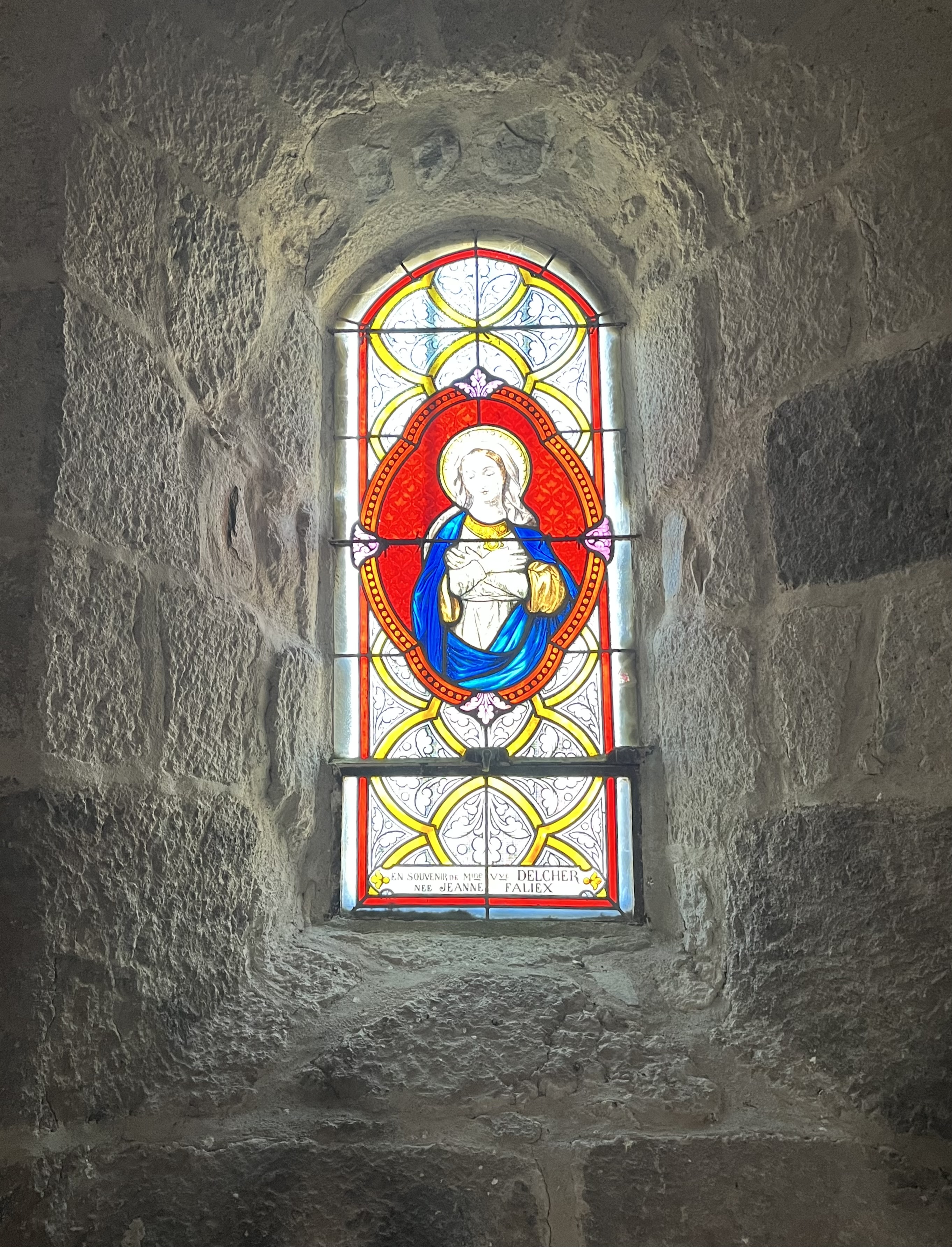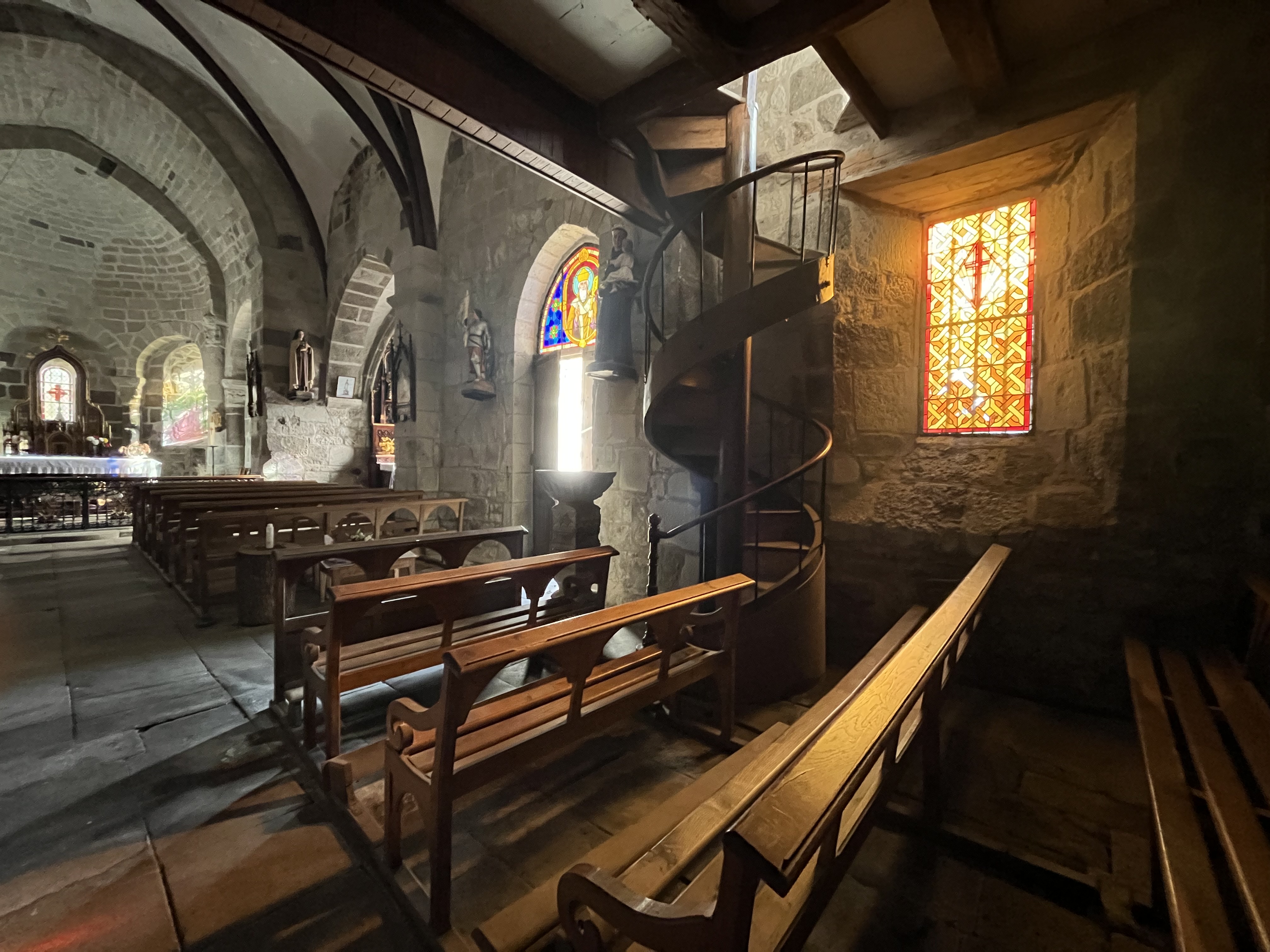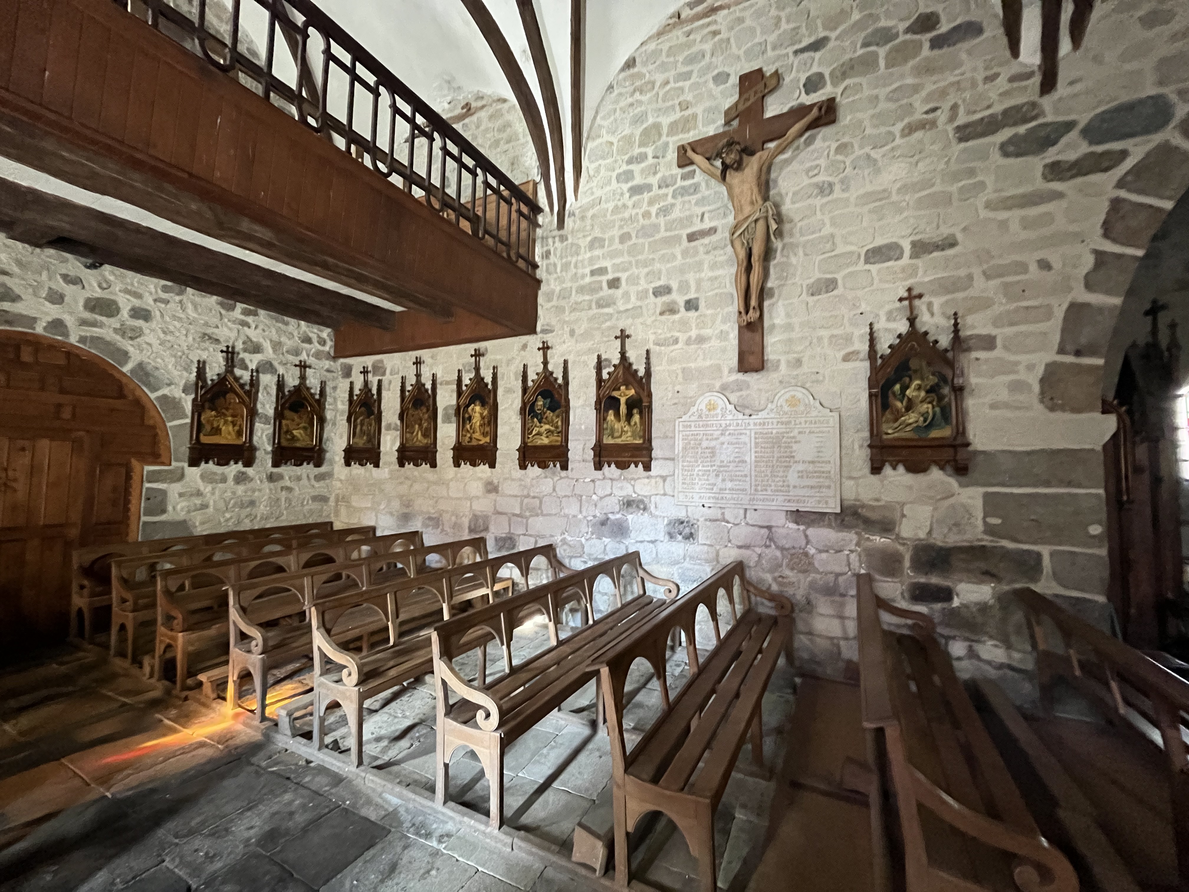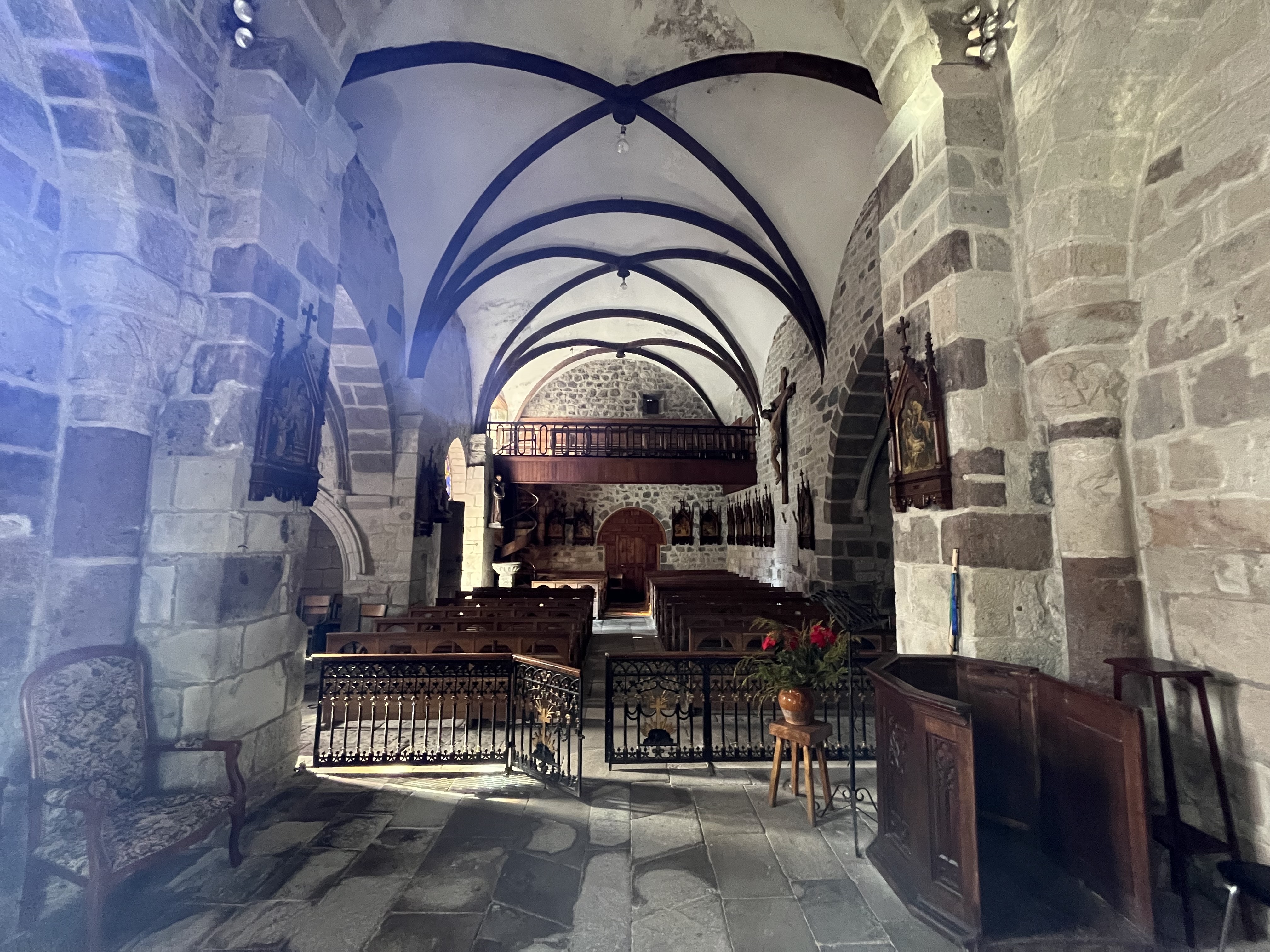 Une belle église romane à clocher à peigne qui domine la vallée, perchée sur un rocher à flanc de montagne. Joli Chevet en pierre à trois fenêtres ornées de vitraux qui l’illuminent, magnifique reflet de couleur sur les pierres. Beau chemin de croix. Ne pas hésiter de monter sur la tribune pour avoir une vue plongeante sur le cœur.