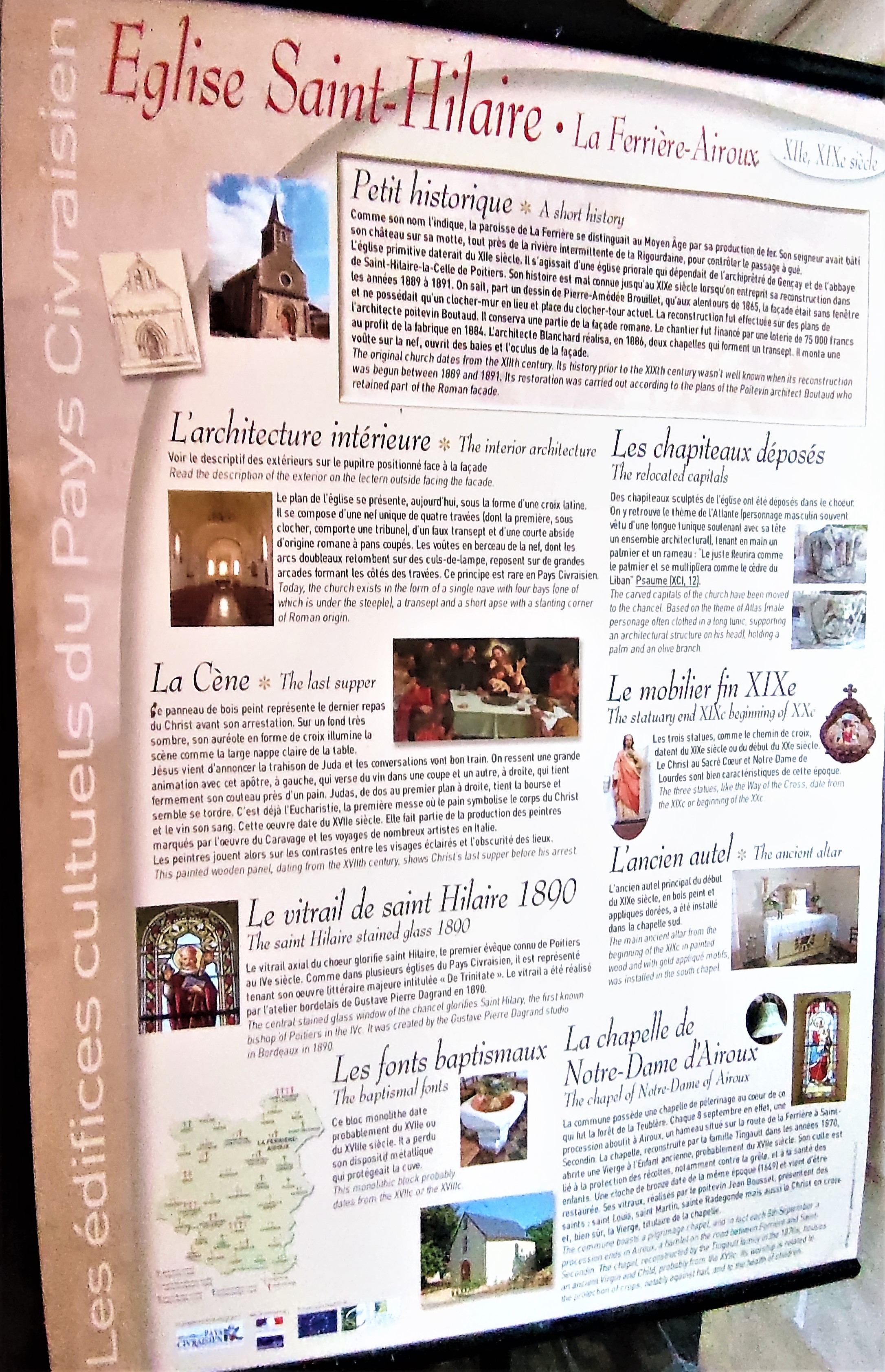 Voici toutes les informations sur le Église catholique Église Saint-Hilaire qui ce trouve au Le Bourg, 86160 La Ferrière-Airoux (86). Sur cette fiche vous trouverez les photos, l'adresse, les horaires d'ouverture, le numero de téléphone et les avis clients.Vous pouvez églement rédiger un avis si vous le souhaitez en bas de page.