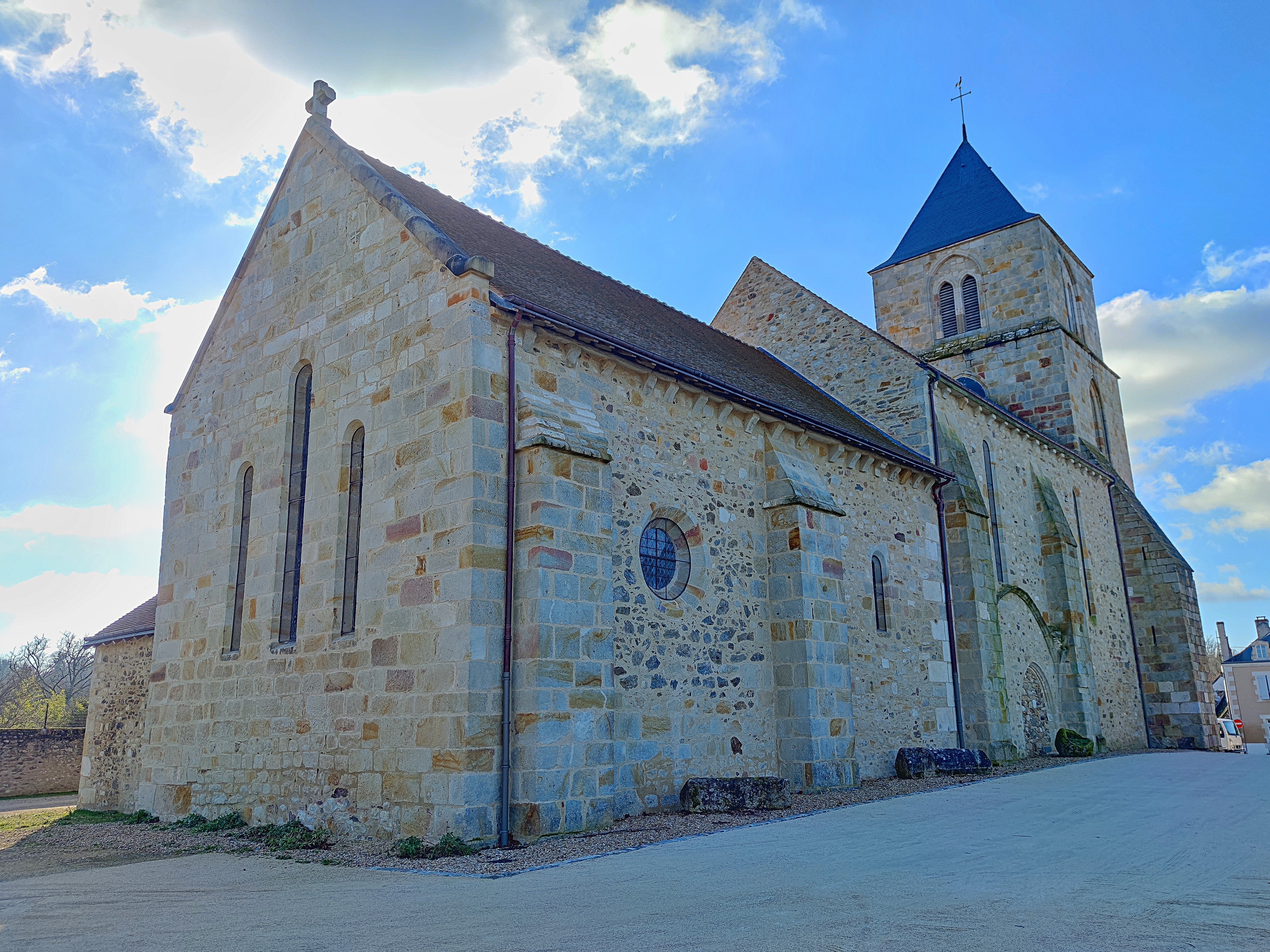 J'avais vu les extérieurs en août 2019, l'église était fermée pour cause d'une campagne de restauration. J'ai pu entrer pour visiter cette église et admirer les résultats des travaux en janvier 2024. C'est un beau trajet à travers les siècles qui est proposé par cette découverte ; dans cette église du 11è et 12è, modifiée au 15è, on redécouvre des décors du 12è,13è et 15è siècles. Plusieurs vidéos sur YouTube peuvent aider à la compréhension du travail de restauration réalisé dans le respect des décors restants ; il ne s'agissait pas de reconstituer un décor mais de permettre une meilleure lecture des traces peintes authentiques.
