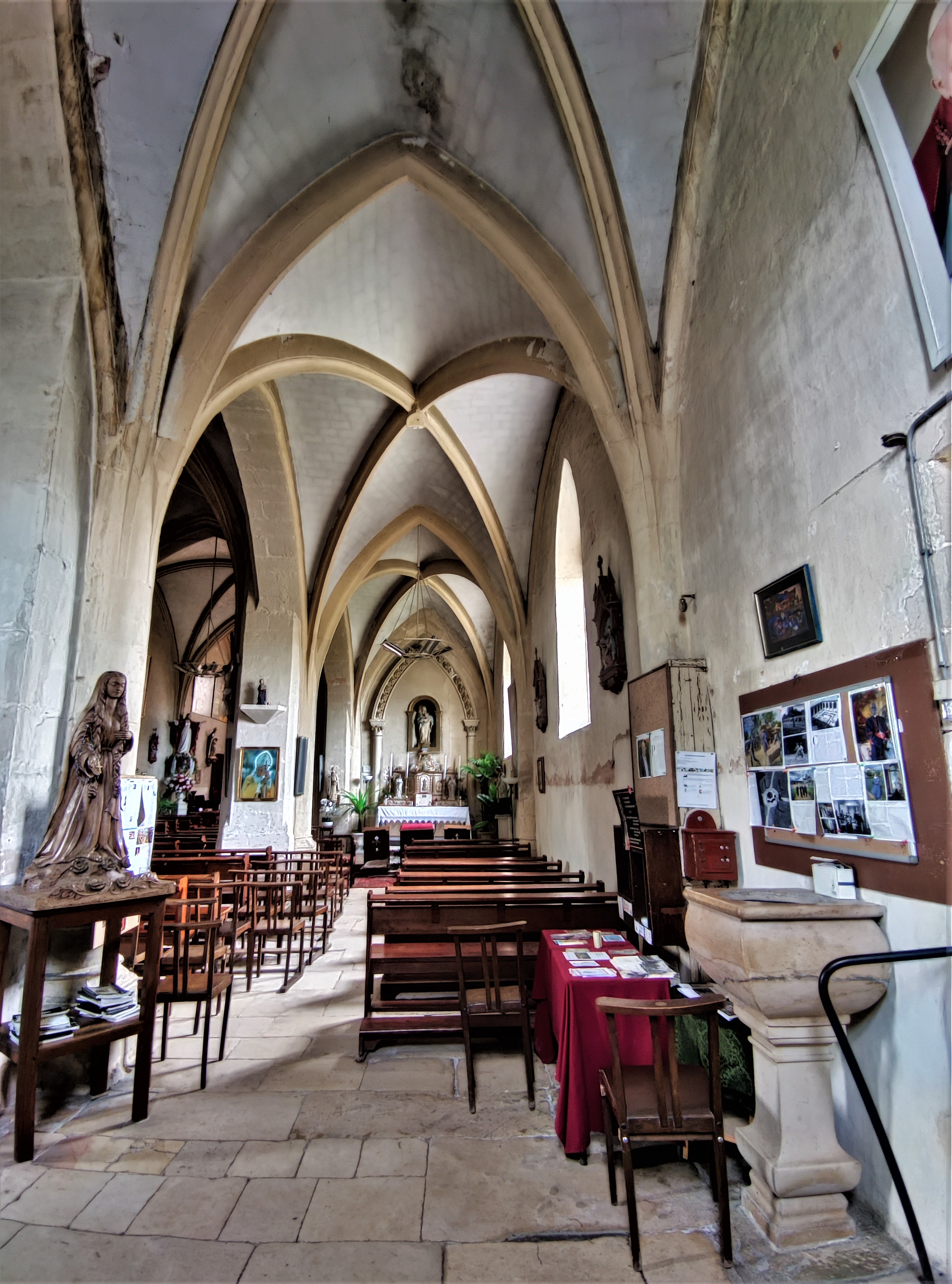 Beaucoup de belles choses sont à découvrir dans cette église parfaite pour toute démarche d'intériorité. Un village accueillant et dynamique, un centre bourg charmant avec quelques commerces, une belle église du 15ème aux origines romanes, mise en valeur sur cette grande place enherbée et arborée. Pour la visiter, il faut contacter l'abbé Nolleau, personnage énergique et chaleureux, le rencontrer est enrichissant. On entre dans l'église Saint-Hilaire au Sud ou à l'Ouest. Le clocher roman surplombe la première travée de la nef, couverte d'une originale coupole à nervures et pendentifs. Un collatéral est placé au Sud, ouvert de baies gothiques, sources principales de lumière. Les deux vaisseaux de la nef ont été voûtés en briques au 19ème. Les deux travées du chœur, qui prolongent les trois travées de la nef, ont conservé les voûtes en pierres de l'église primitive. Ces travées sont séparées par deux marches et une clôture en bois. Cette église rassemble toutes les expressions artistiques des périodes de sa construction : architecture, peintures, sculptures, vitraux, mobiliers.