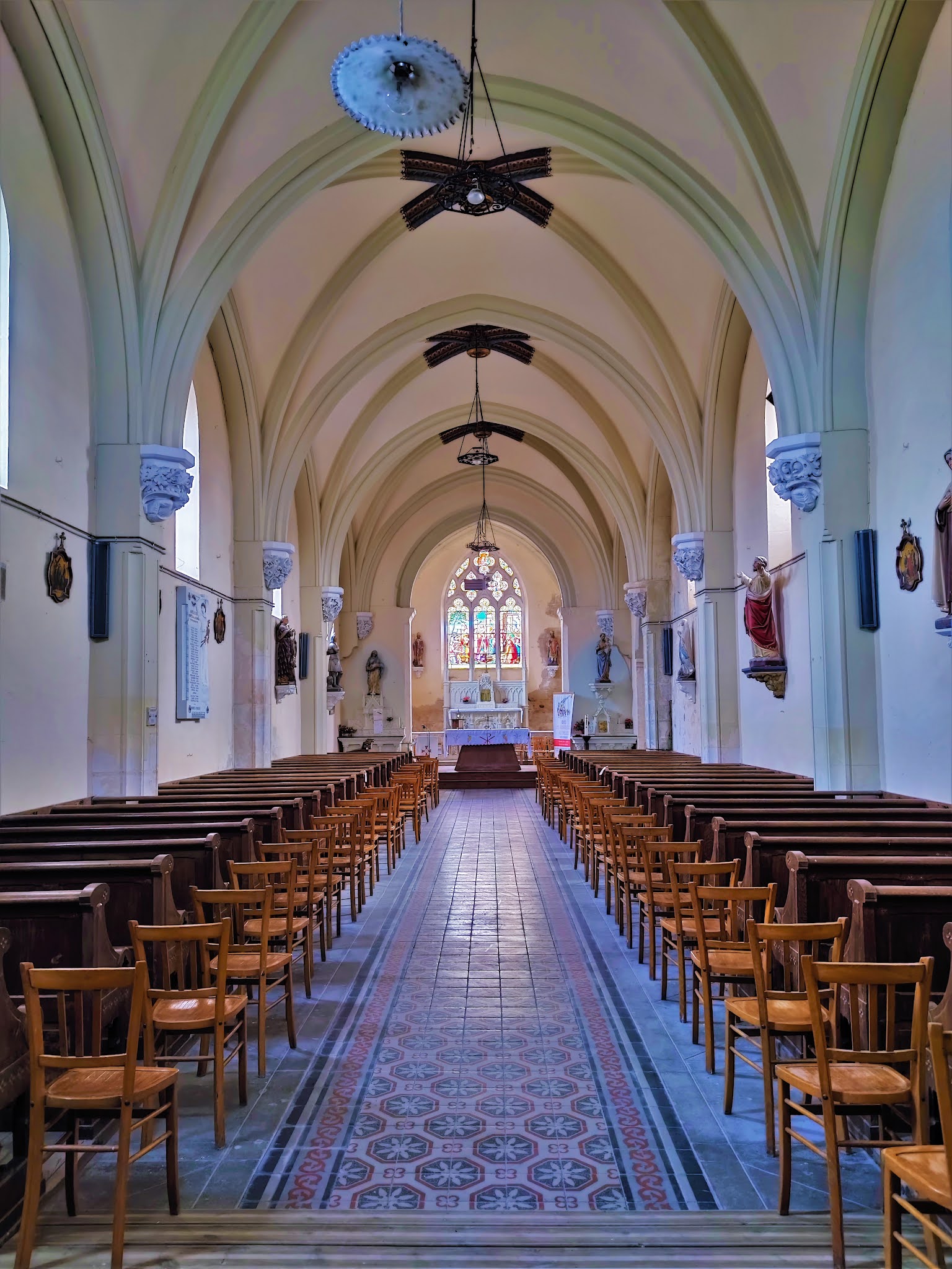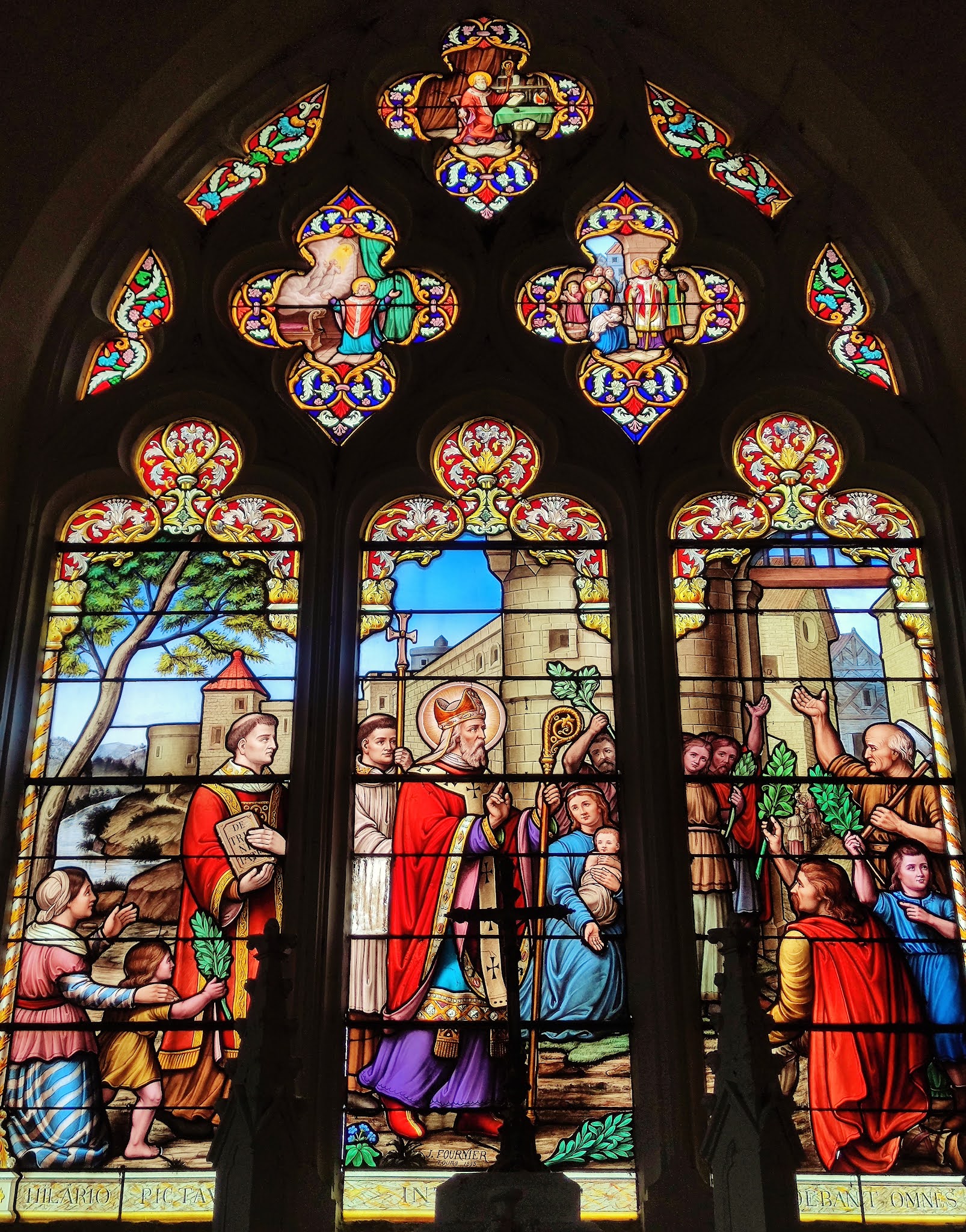 L'église Saint-Hilaire, reconstruite pour l'essentiel au 19ème siècle, mérite une visite, ne serait-ce que pour le vitrail du chœur.