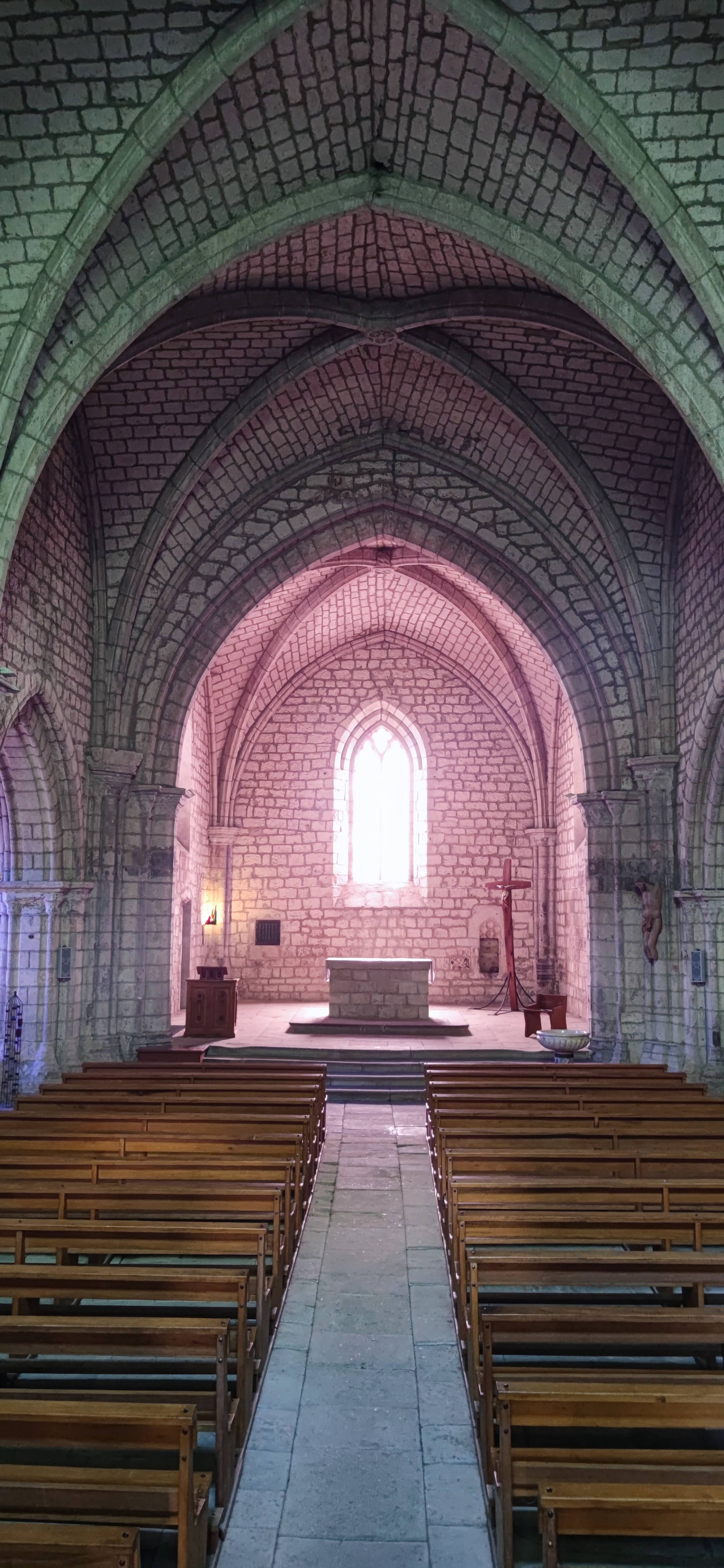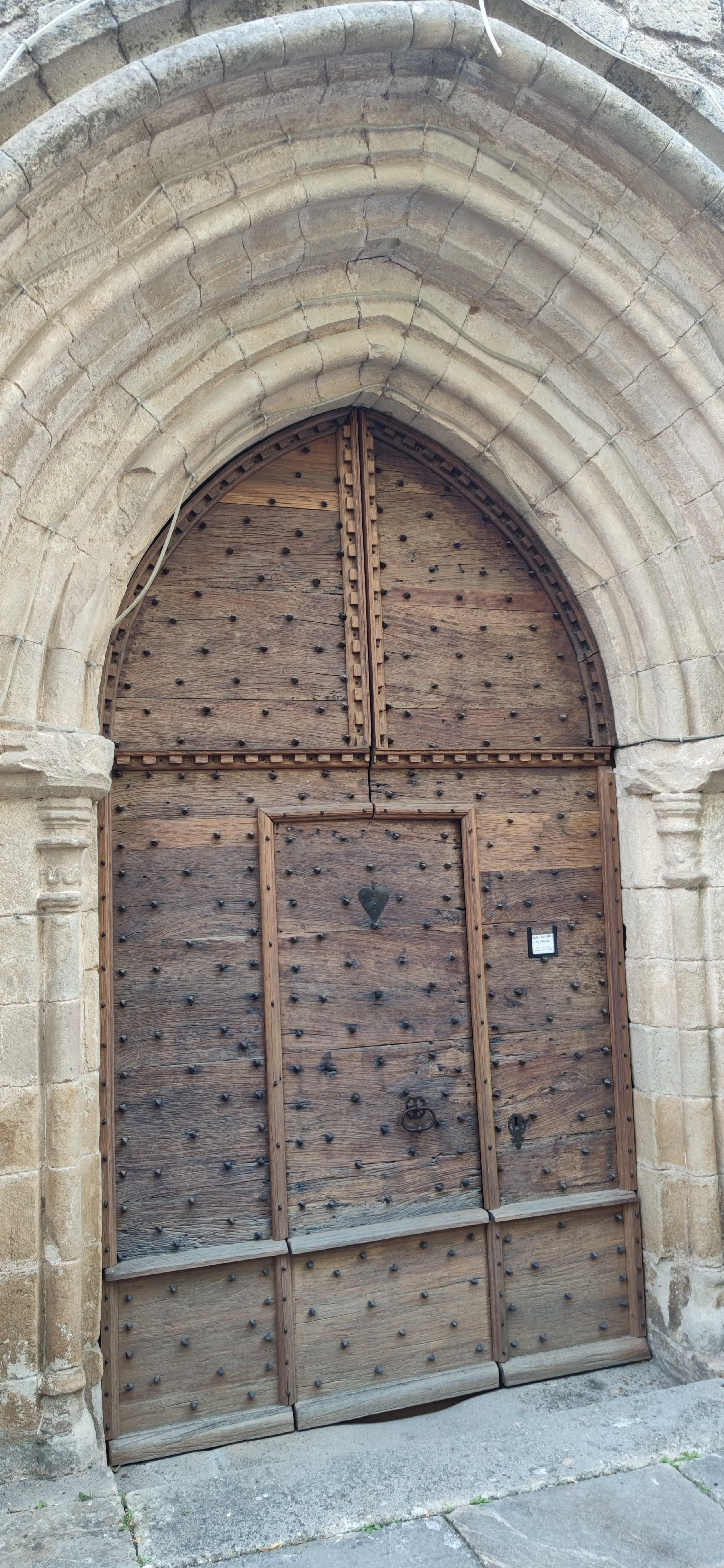 Église originale construite environ en 1396 sur le reste d'une église romane. Gothique et fortifiée, surmonté d'un mâchicoulis. Belle porte avec une multitude de clous forgés à tête carré. A côté l'ancien presbytère désaffectée transformé en bibliothèque municipale.
