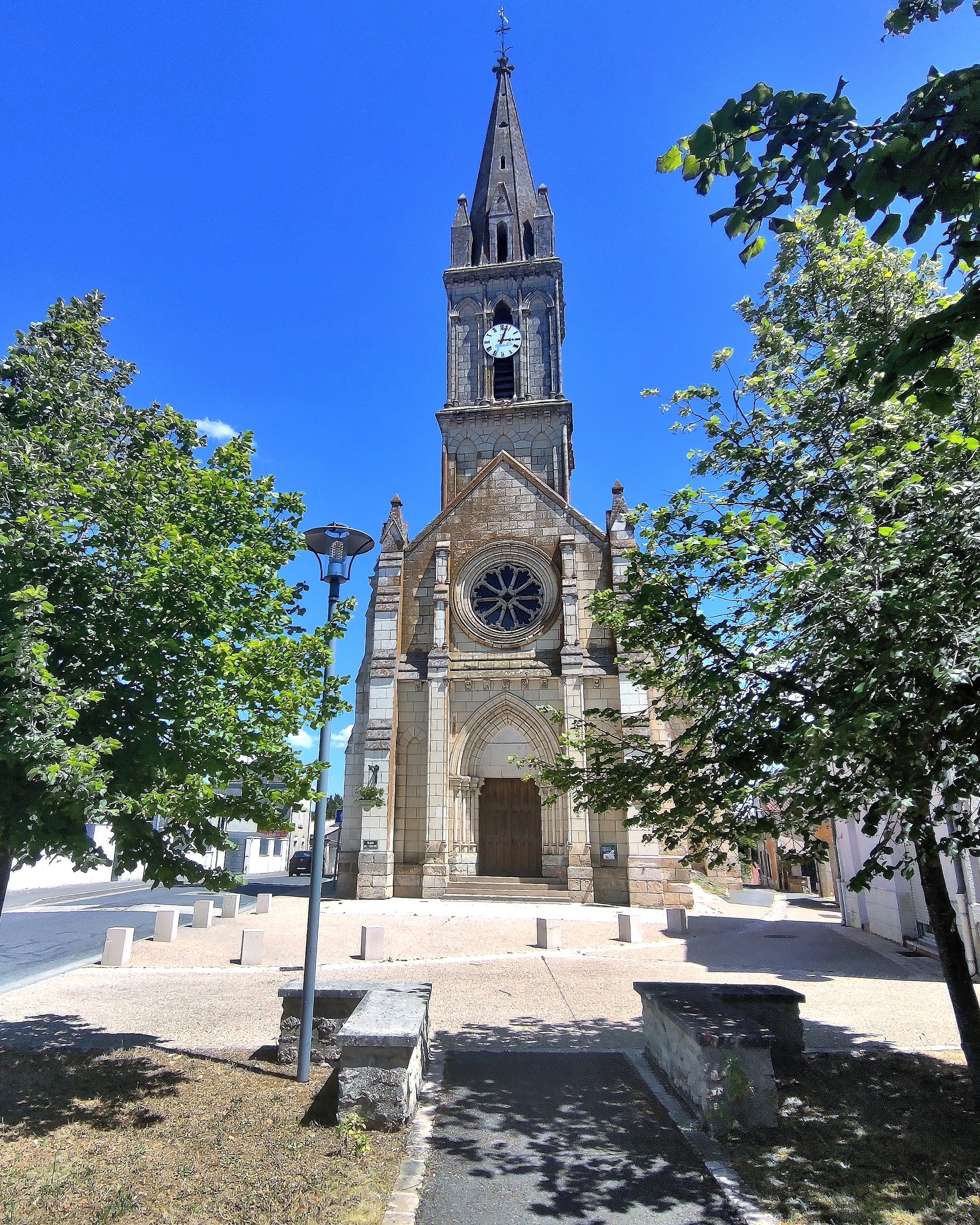 Pas-de-Jeu (traduction de Passage de Jupiter), annonce un danger, celui de la proximité de la Dive et des zones marécageuses difficiles à traverser. L'histoire religieuse de cette région fut marquée depuis 2000 ans par de très nombreuses constructions dont un temple consacré au Dieu des Dieux. L’église néogothique Saint-Hilaire fut construite fin 19è en remplacement d'une église trop petite et au bord de la ruine. Après deux visites sans pouvoir entrer dans l'édifice, ma troisième visite fut la bonne, j'ai pu pénétrer dans cette église qui a aussi belle allure à l'intérieur qu'à l'extérieur. Les dimensions raisonnables donnent à cette église un aspect chaleureux. Bien entretenue et bien tenue, elle accueille aujourd'hui une messe par mois, mais aucun spectacle musical ou autre n'y est organisé ; celà pourrait être l'occasion de remplir ce monument de personnes chrétiennes ou non chrétiennes mais encouragées par ces événements à une plus grande fréquentation des lieux.