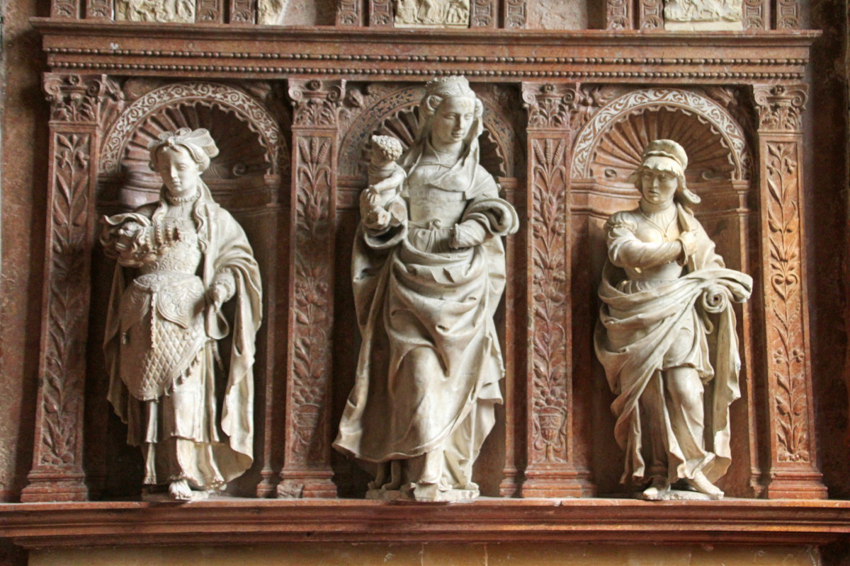 Belle édifice ... Eglise du 12e s., elle a conservé le portail roman et les murs du chœur, éclairé par deux grandes baies flamboyante et la chapelle du Sacré-Cœur. Ne pas manquer la chapelle d'Andelot, (vers 1560). Les marbres noirs et rouges et pierre de Sampans (Jura) lui confèrent beaucoup de majesté. La chaire à prêcher (16e s.), en marbre noir, est une réplique de celle de Dole et d'Auxonne. Dans la Grande Chapelle (chapelle de la Vierge), à remarquer une Vierge à l'enfant du 15e s. en albâtre et une sainte Catherine du 16e s. en pierre, toute deux de l'école bourguignonne.