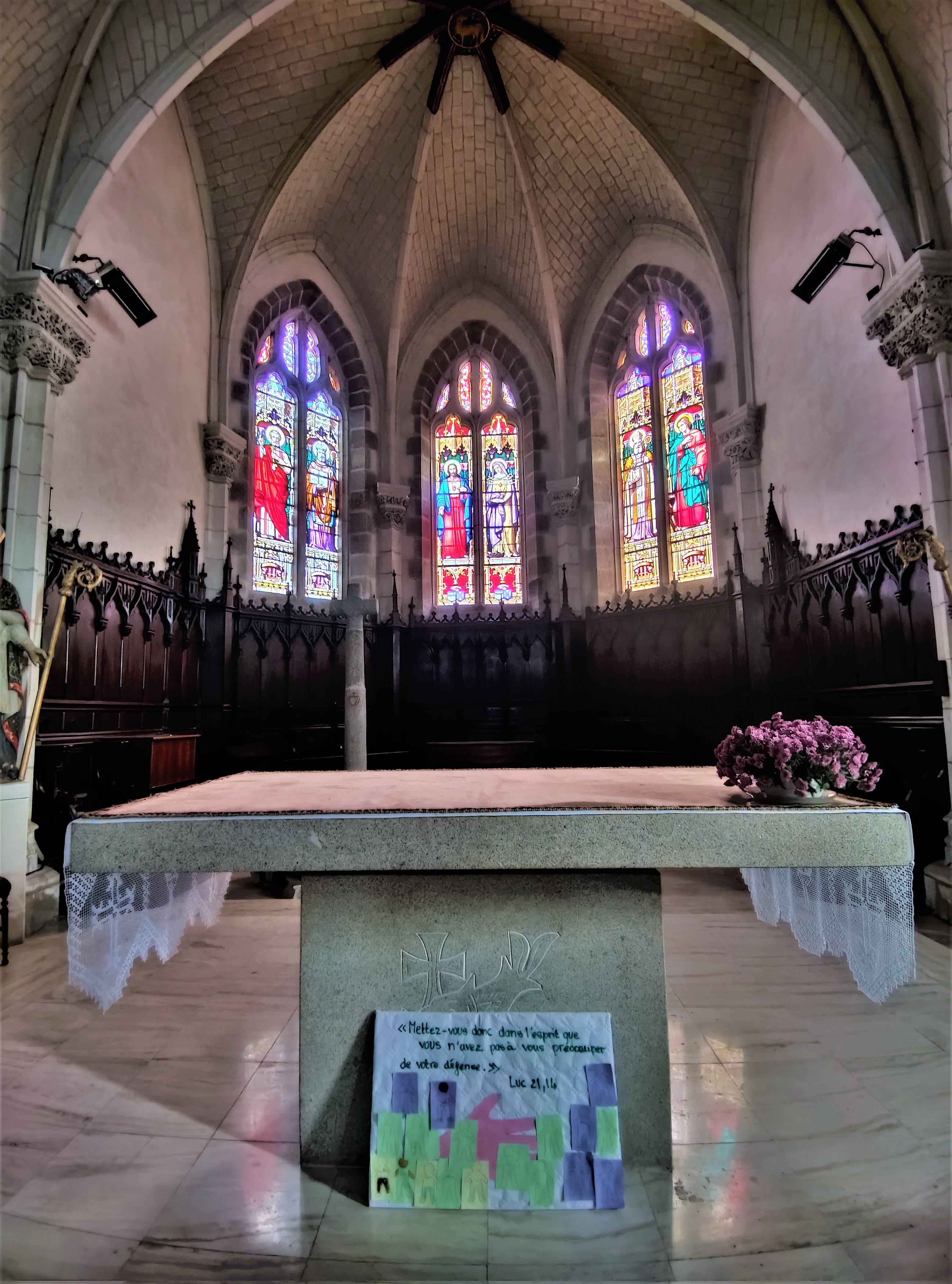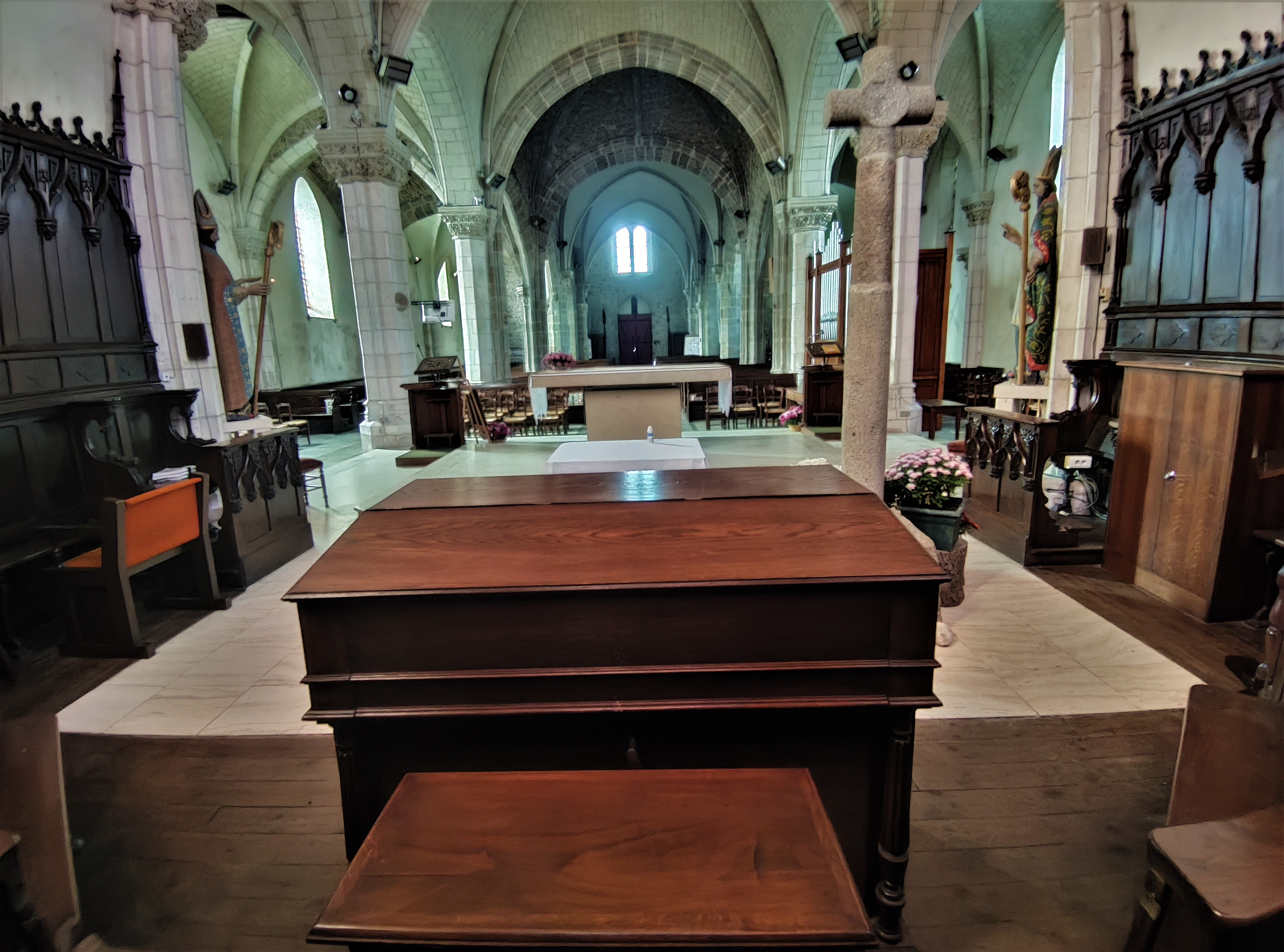 Contrairement à beaucoup d'églises, la voûte n'est pas très élevée et donne une impression plus chaleureuse. Je pense que des trvx de réfection ont eu lieu récemment, j'aime bien cet endroit.
