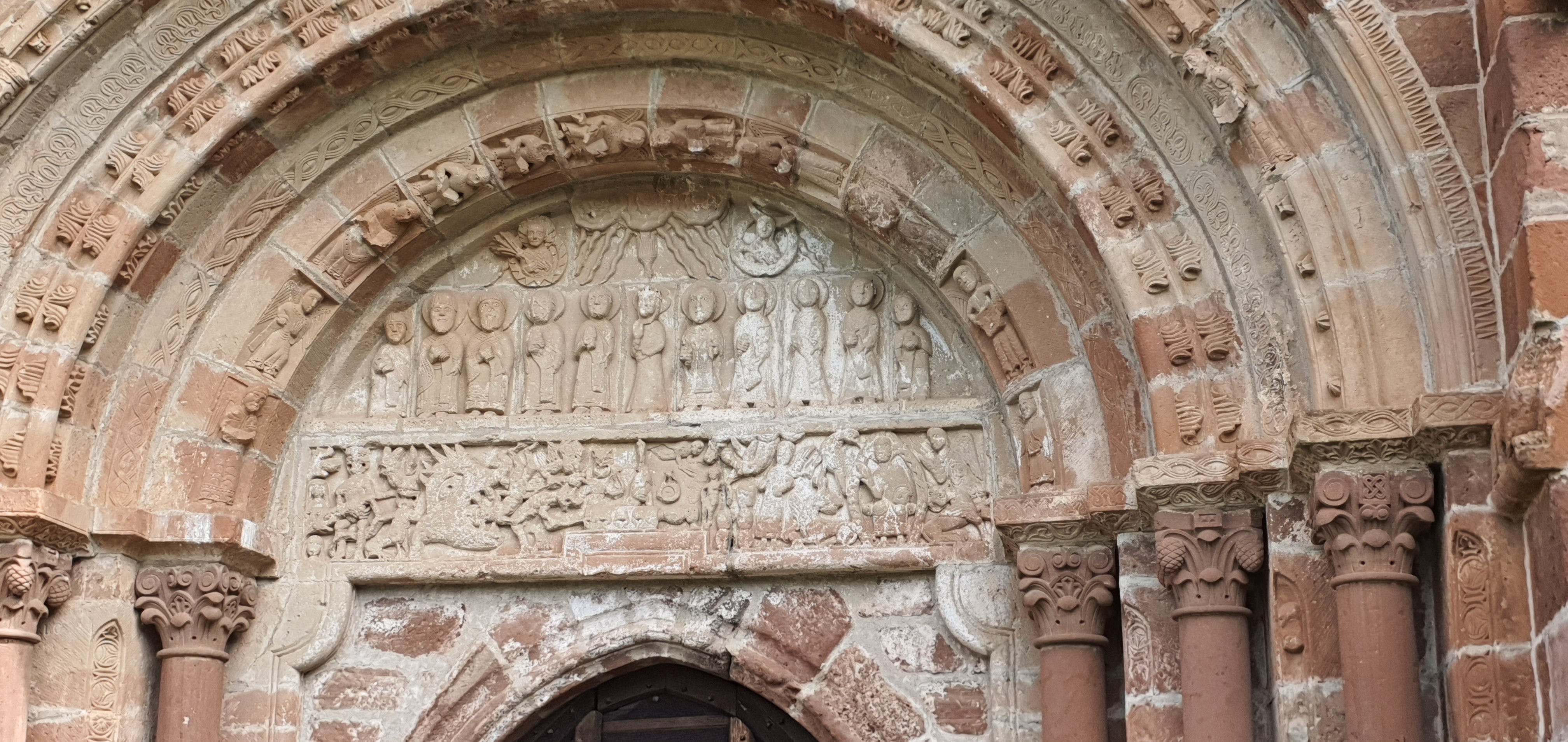 Le tympan ressemble fortement à celui de Conques, en moins détaillé.