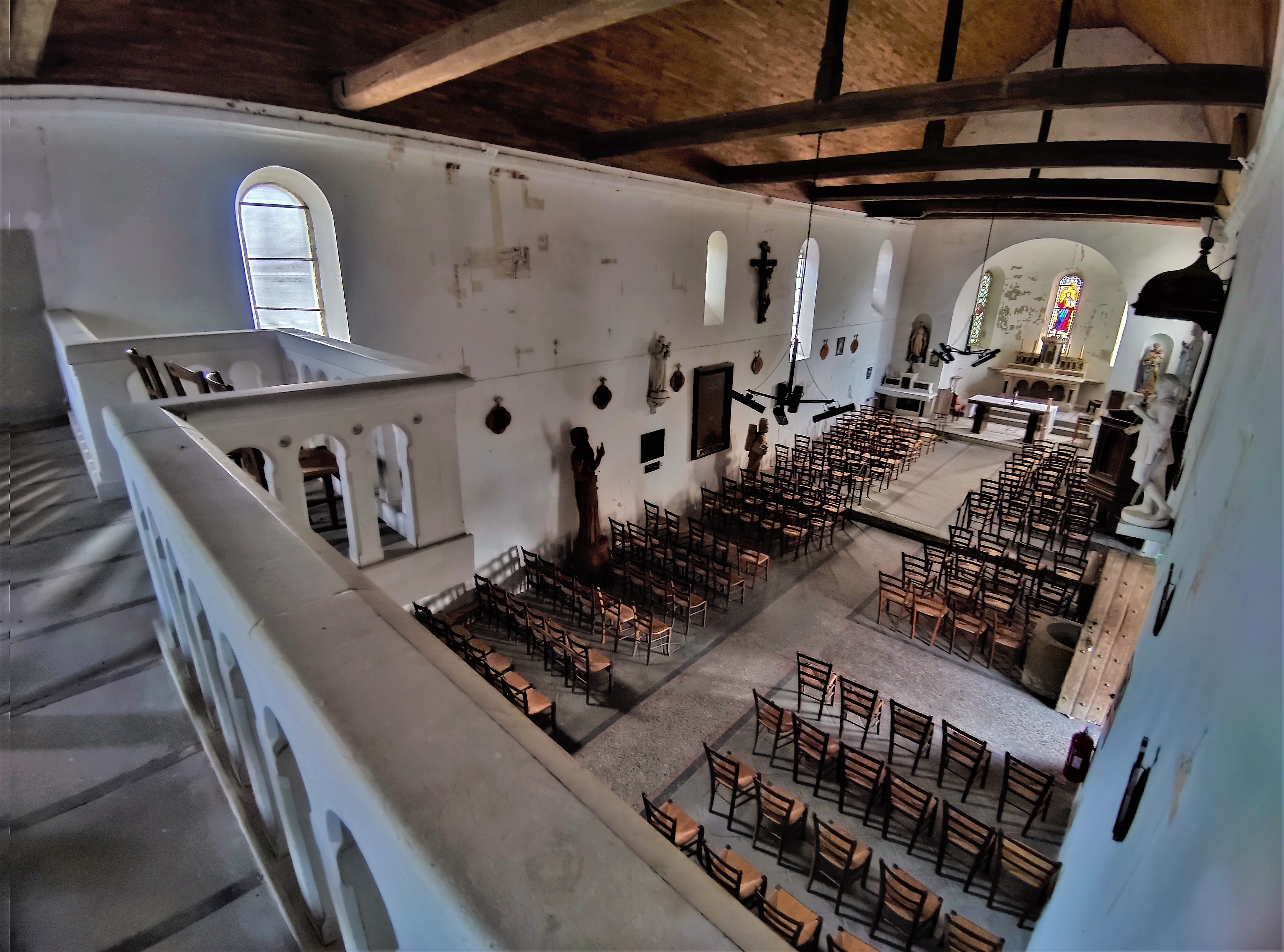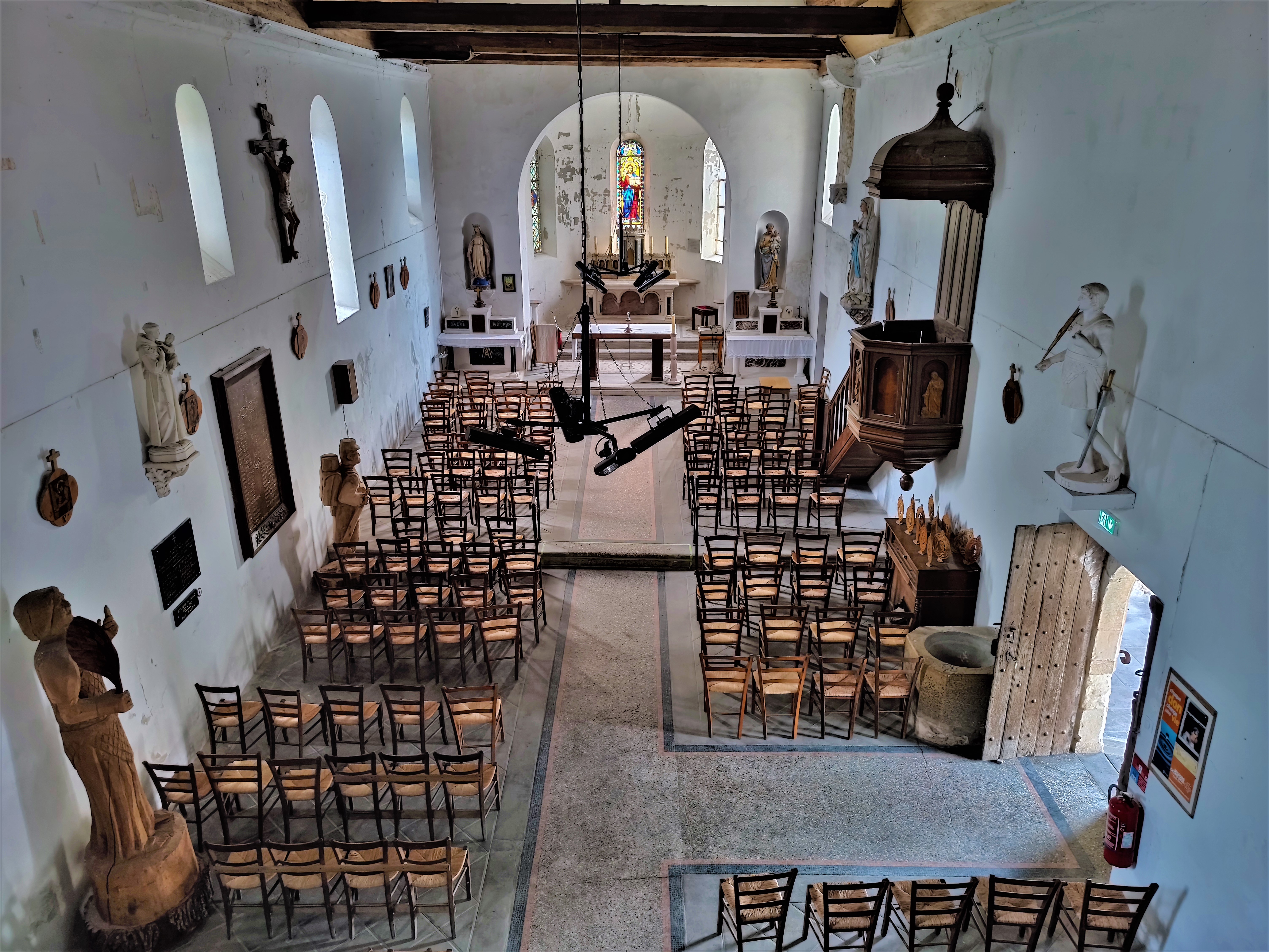 Église aux origines millénaires, il faut prendre contact avec la mairie pour la visiter. Église désorientée, elle fut construite sur un axe qui est presque Nord-Sud, ce qui doit être rare pour un édifice du 11ème. Située Ouest-Sud-Ouest, une accueillante galerie (ou caquetoire ou balet ou espace de conversations) protège l'entrée secondaire. Construite au 11ème et 12ème, modifiée au 15ème et 16ème, elle a reçu des vitraux et une tribune au 19ème. La nef est couverte d'un plafond de lattis et charpente apparente. Elle s'ouvre sur le chœur par une sorte d'arc-mur-diaphragme. Une statuaire dont quelques éléments contemporains est disposée dans la nef, les vitraux du chœur sont signés Lux Fournier. Des traces de peintures médiévales sont apparentes dans le chœur. Témoin de l'histoire de la cité, cette église mérite une visite.