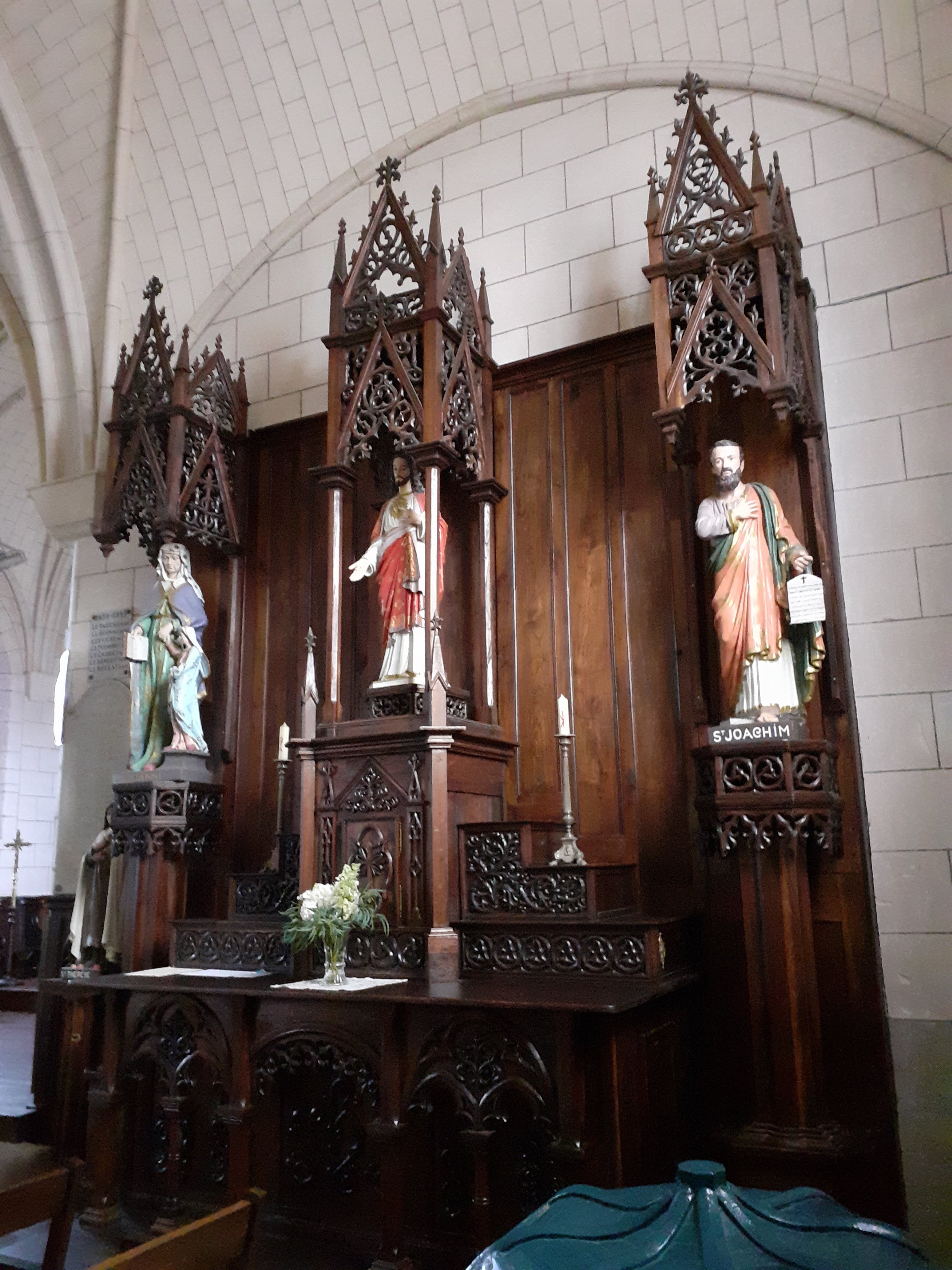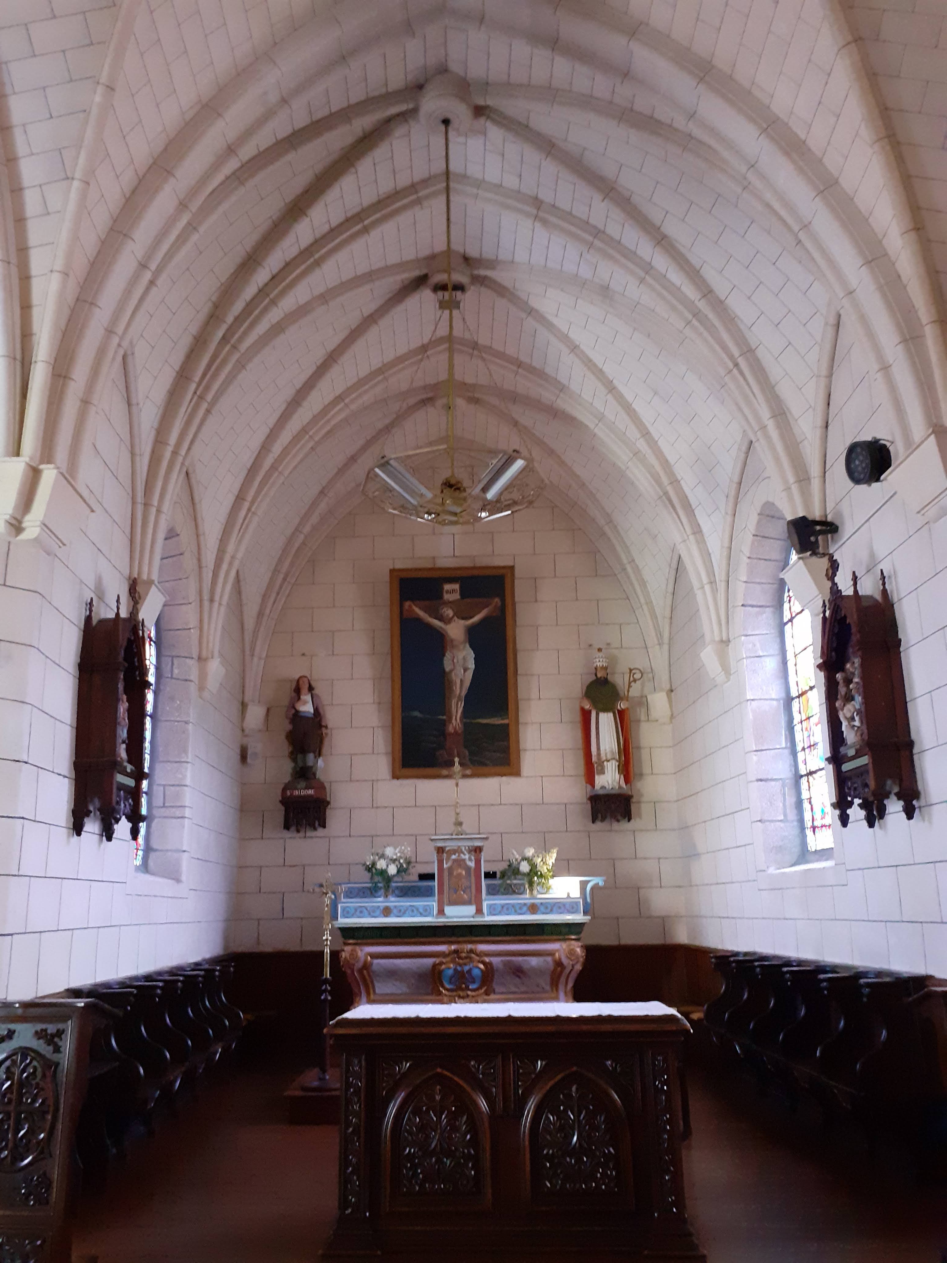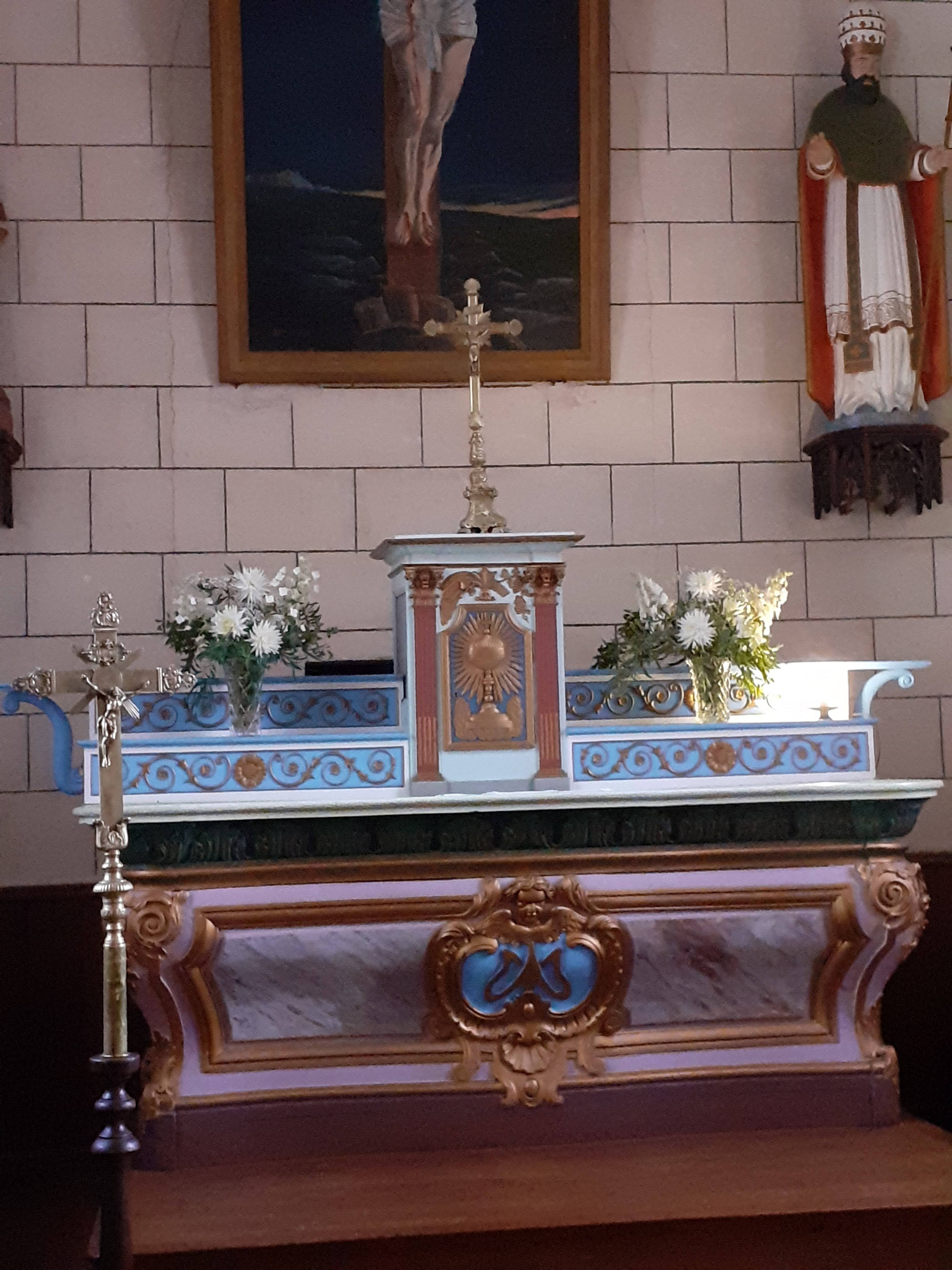 Saint Isidore, Saint patron des laboureurs. Église semble t'il assez récente au moins pour le clocher carré daté de la fin 19ème. Très beaux vitraux et magnifique tribune en bois sculpté.