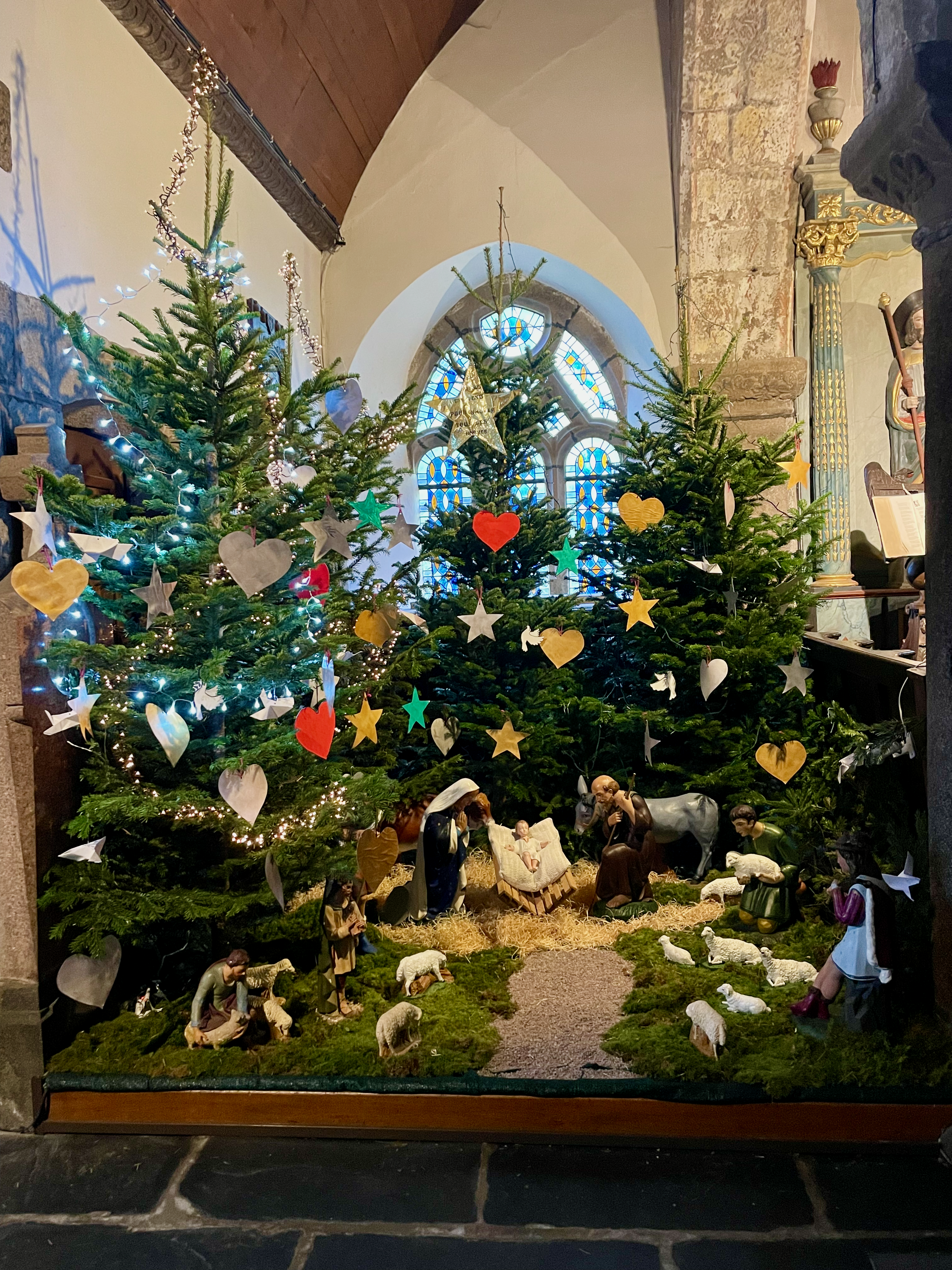 Charmante église en pierre du XVII siècle avec une belle crèche à noël