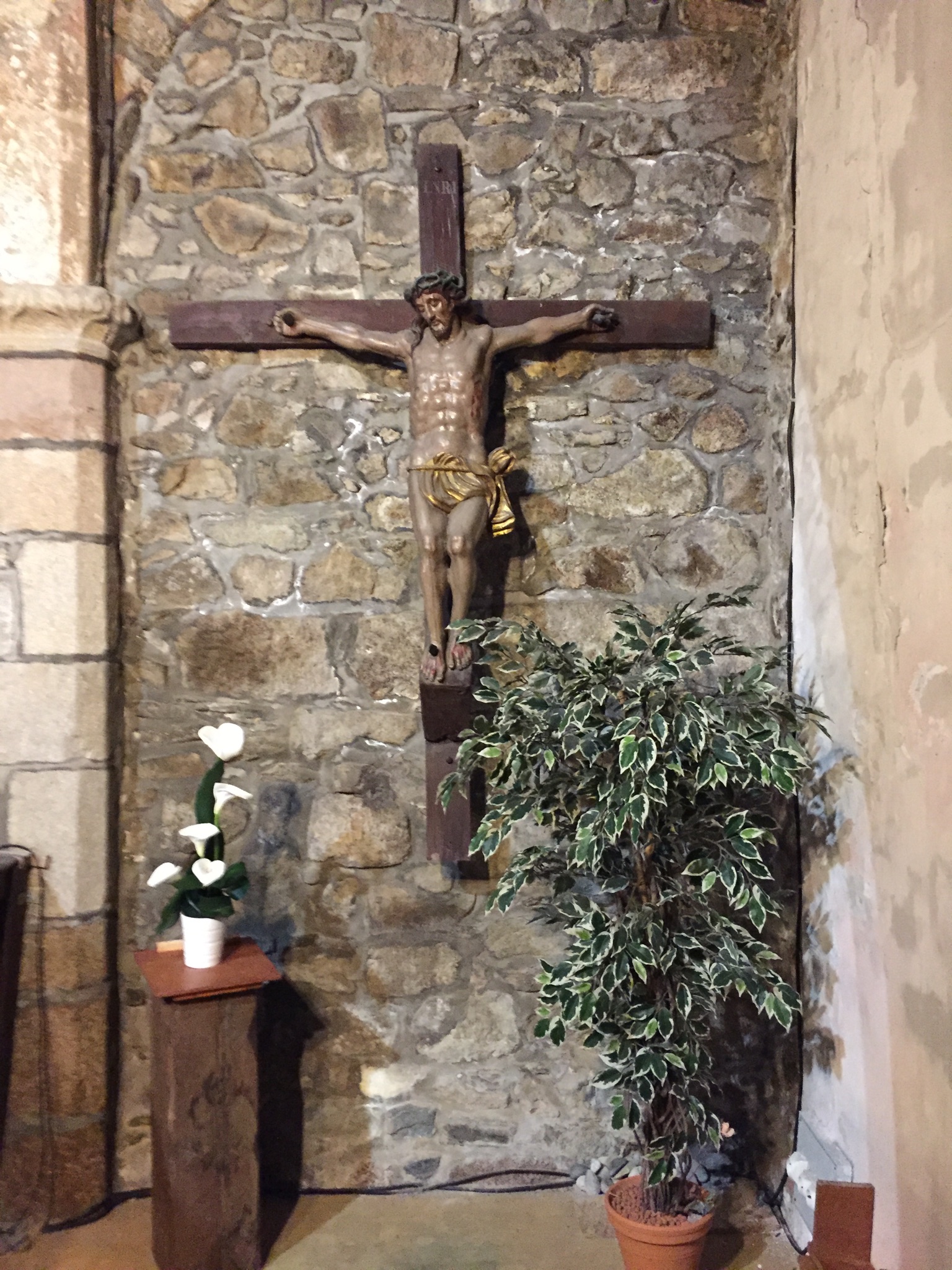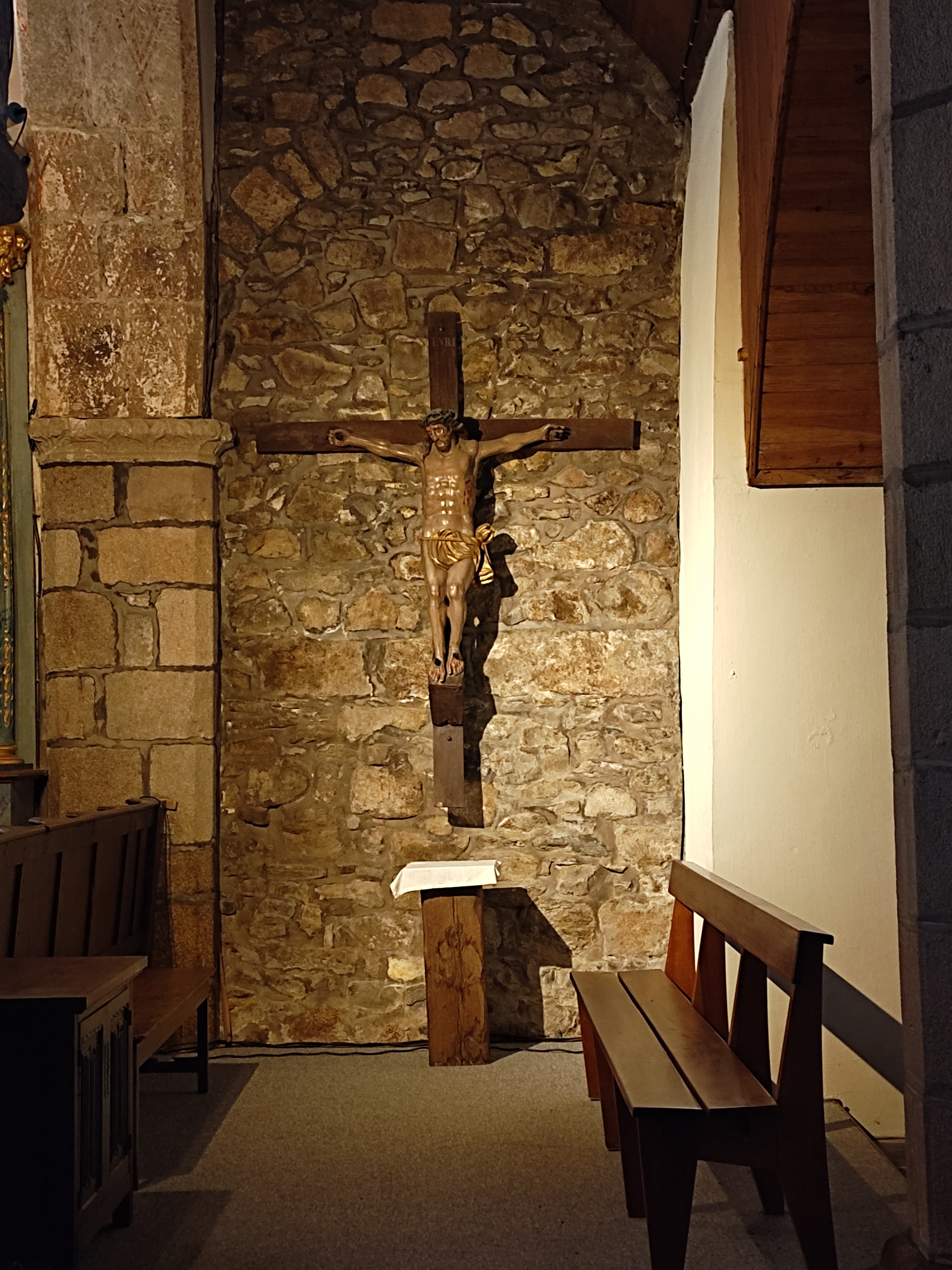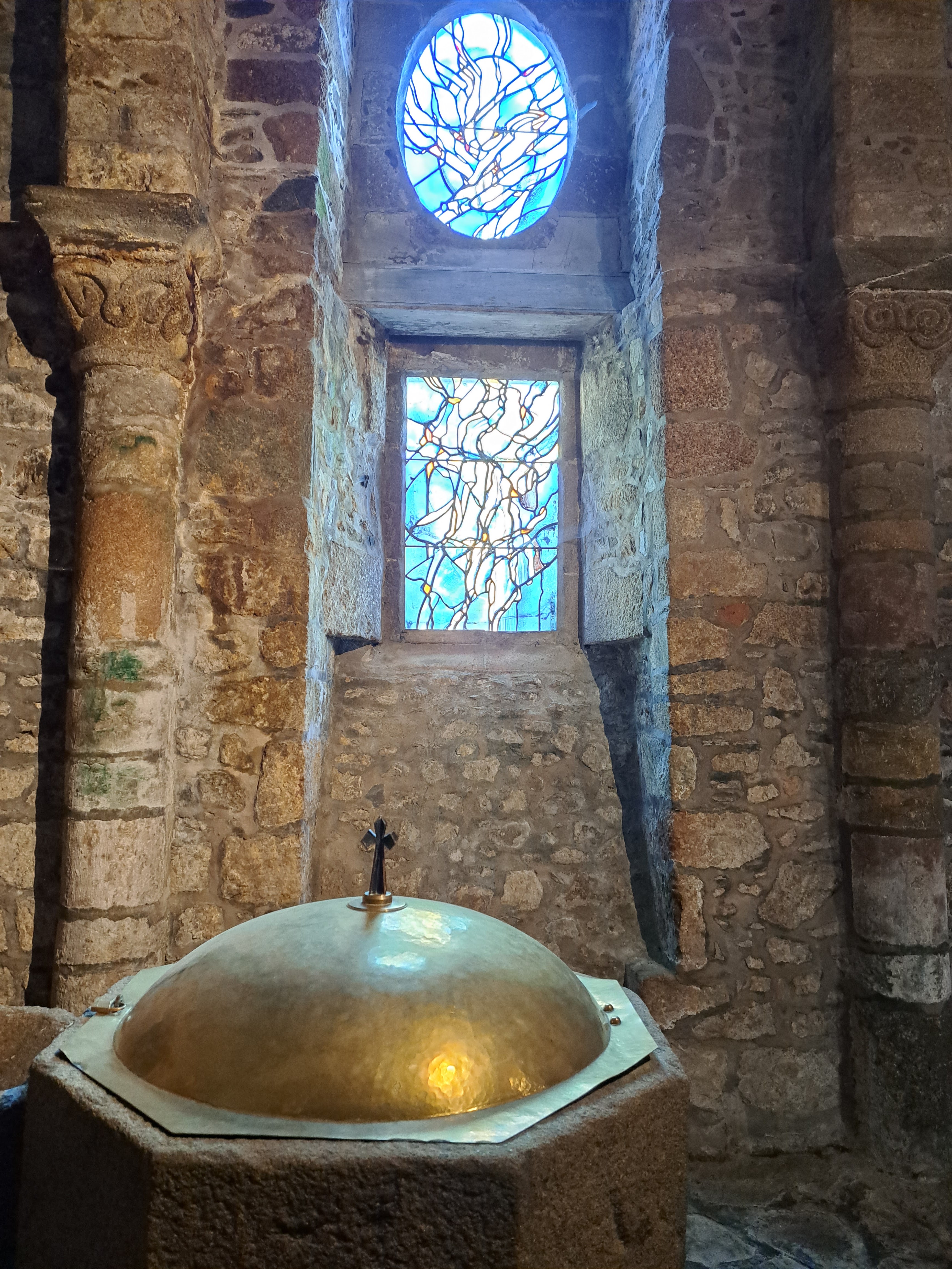 Très belle petite église de granit, style roman primitif. Très bel autel original. Lieu très solennel. Je recommande, comme la plupart des églises bétonnés.