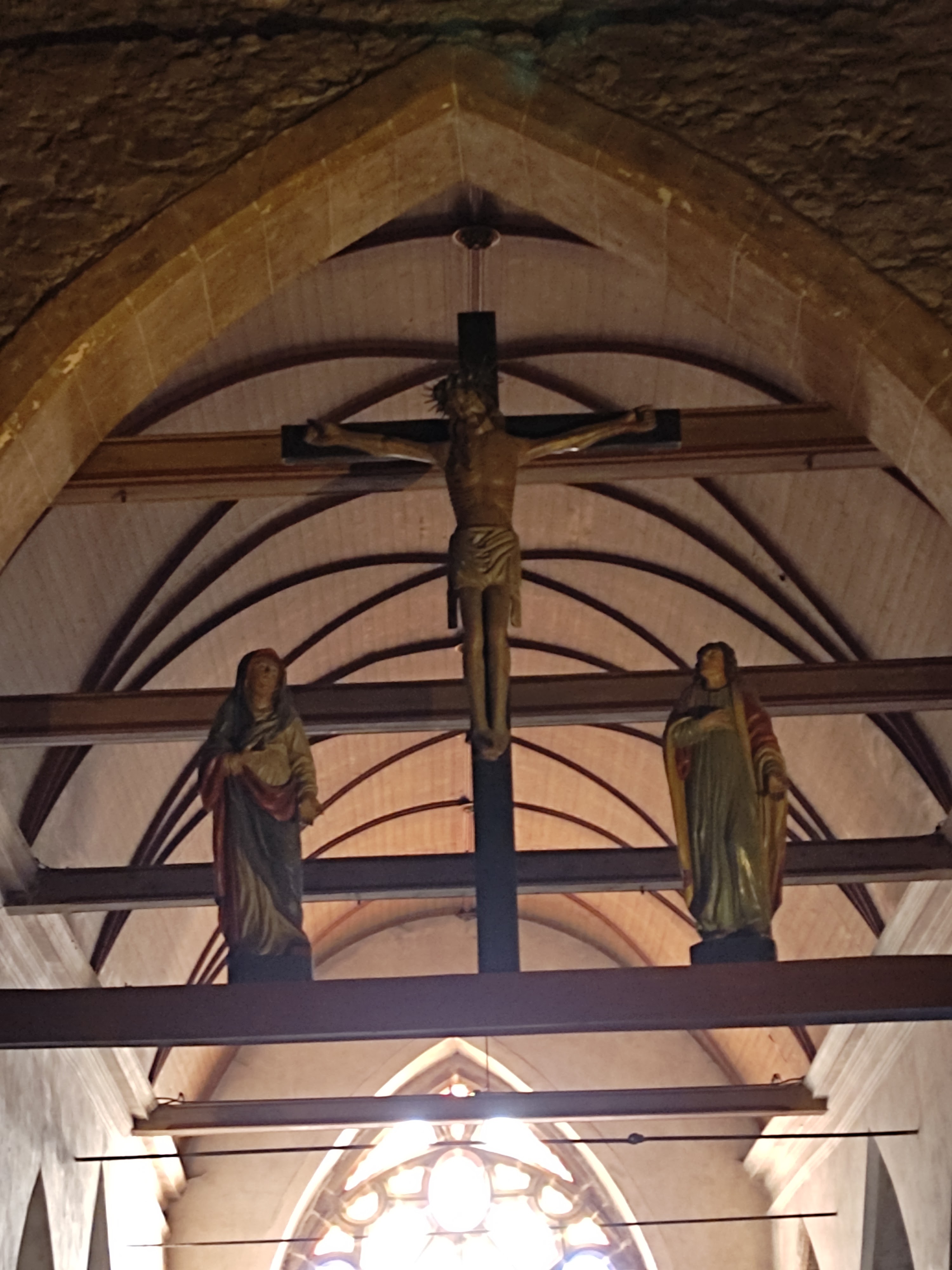 Jolie église à visiter avec un plafond en coque de bateau.