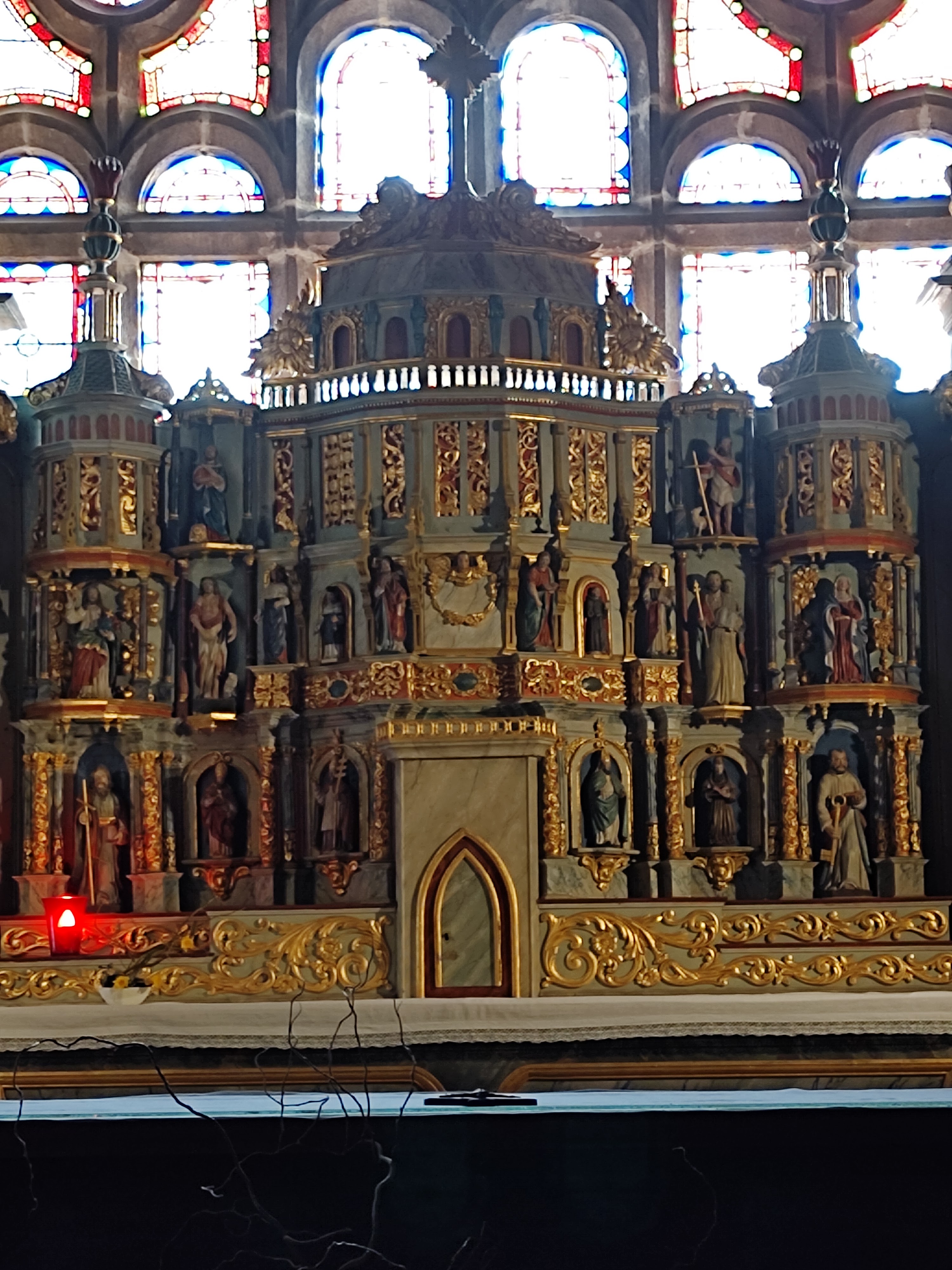 Belle église, les fenêtres qui brillent si joliment de couleurs dans le bâtiment, c'est juste étrange qu'on entre dans l'église par le côté droit et qu'on se retrouve ensuite toujours au milieu de la nef.