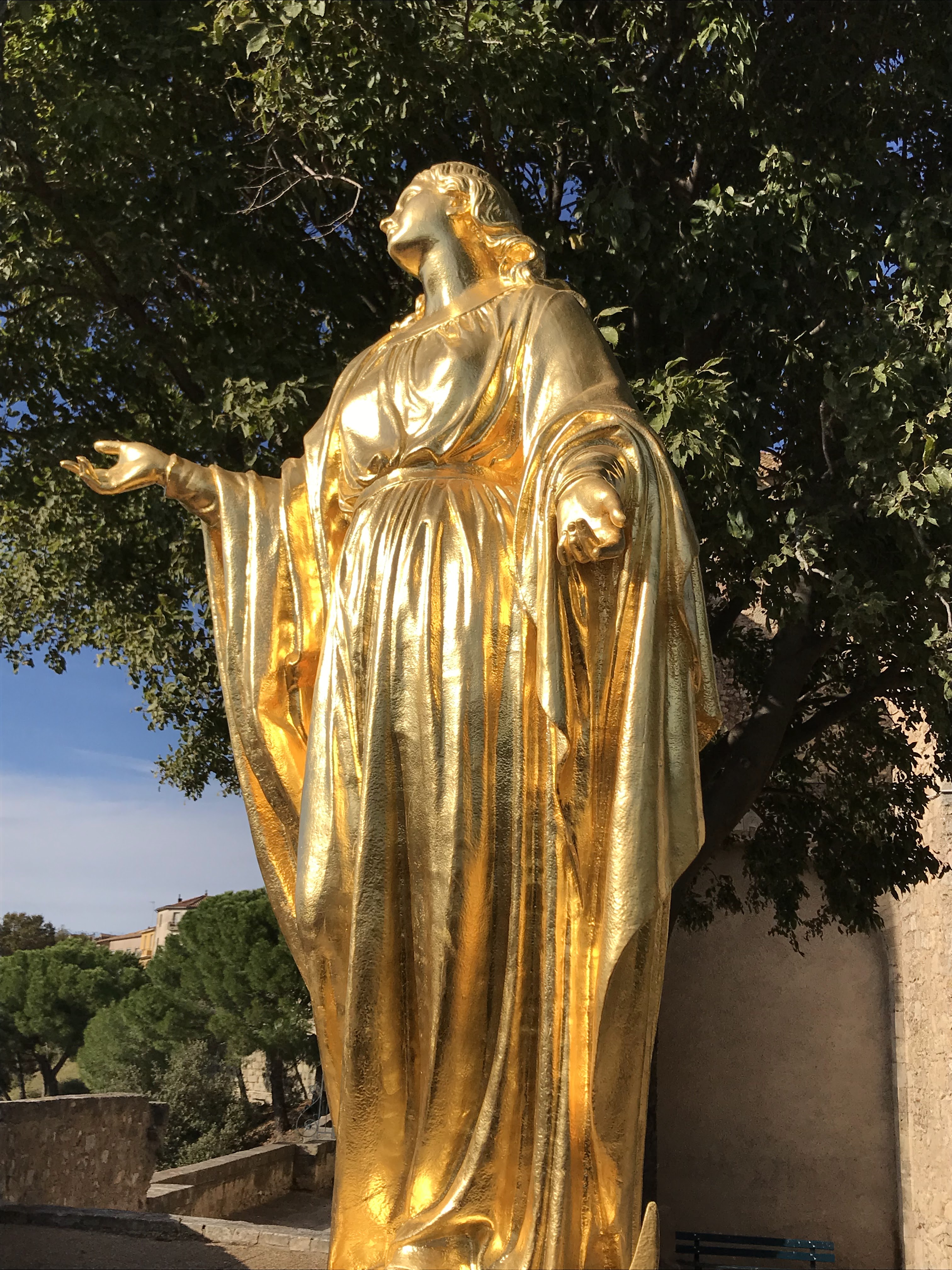 Si vous visitez l'église visitez aussi les jardins avec une magnifique statue dorée de la Vierge
