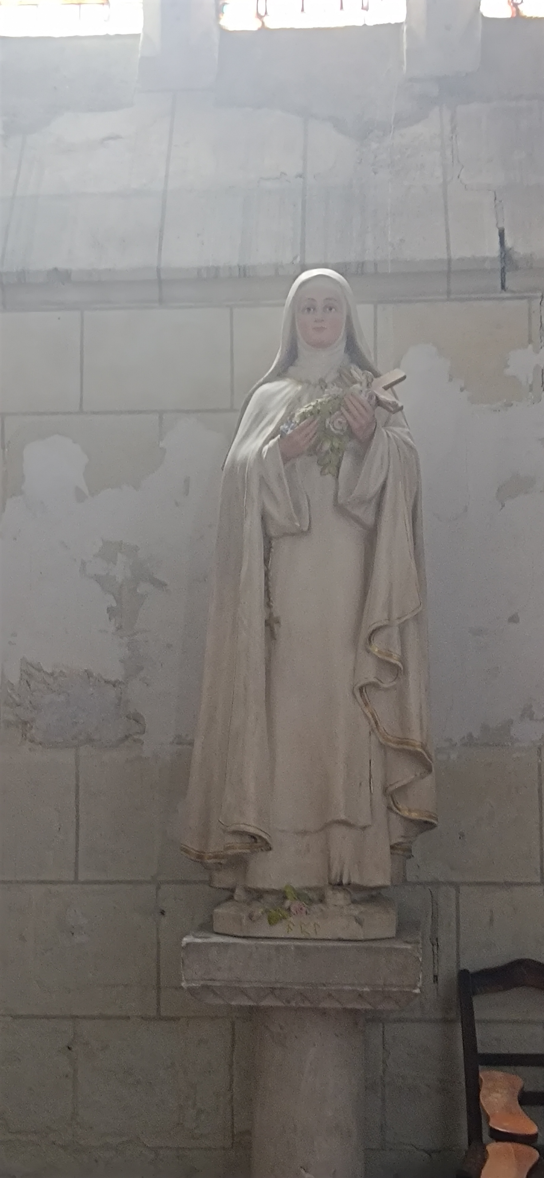Elle va être restaurée avec son carillon Bollée. Statue bois polychrome de St Jacques de Compostelle ds la travée droite.