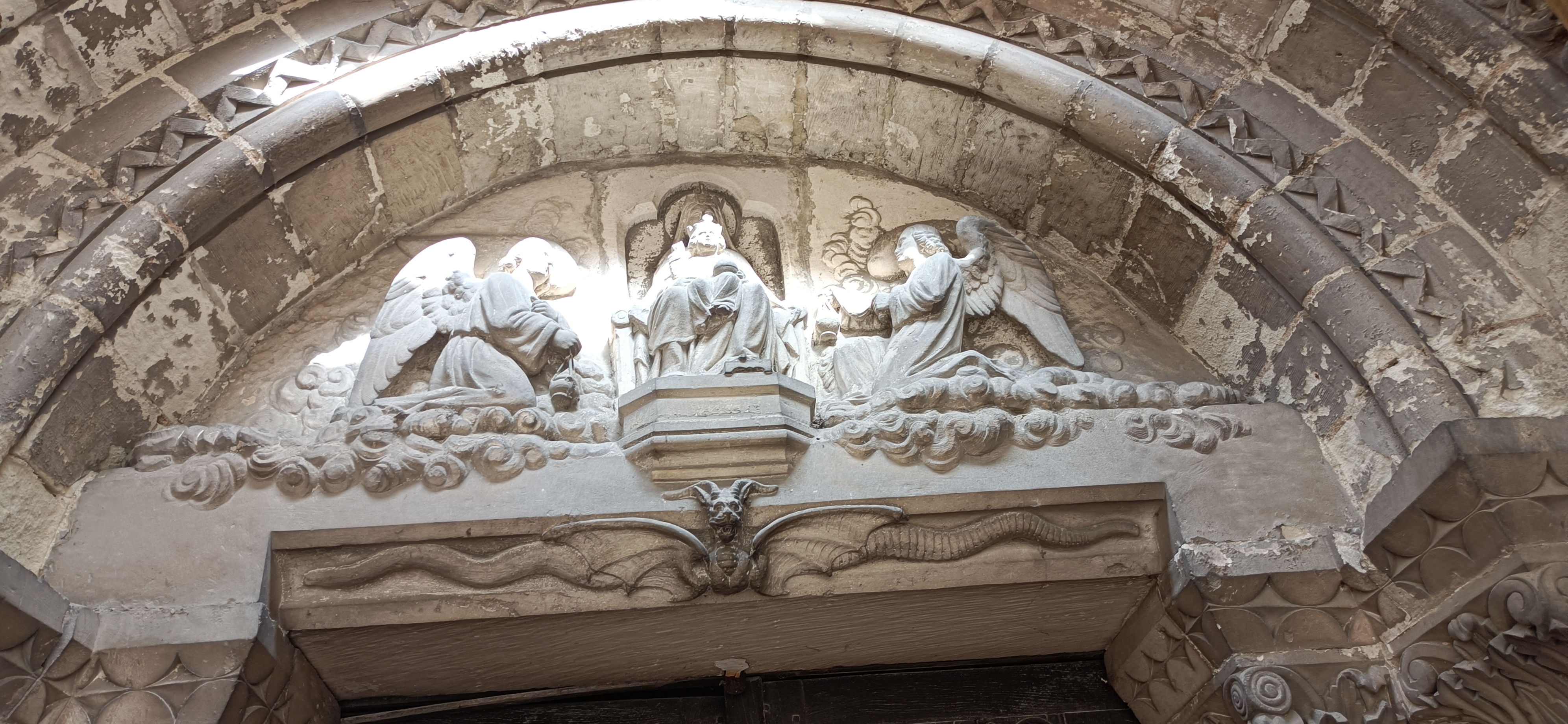 Façade de l'église du XII Siècles très impressionnante de part les détails et la finesse des motifs et sculptures.