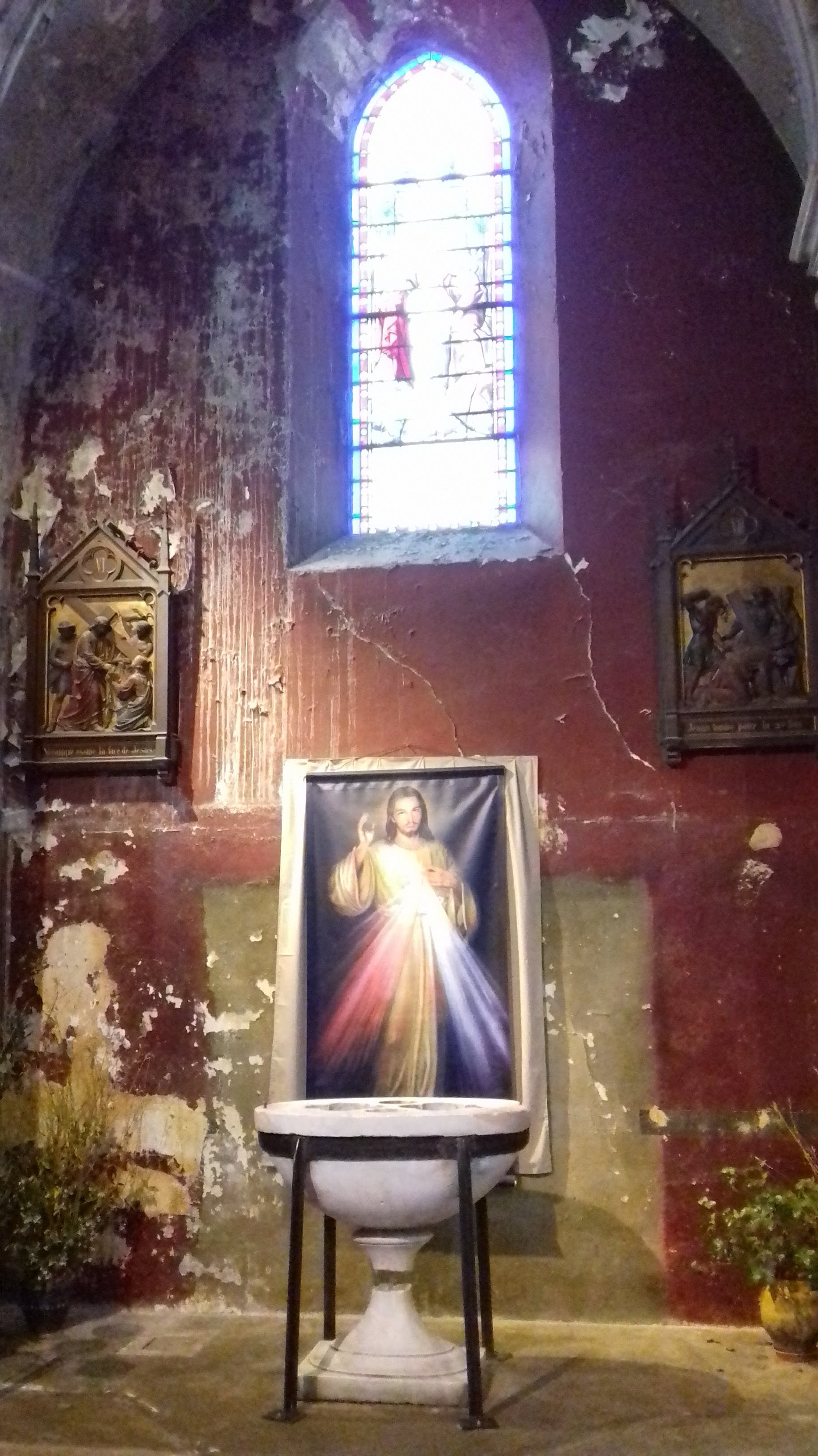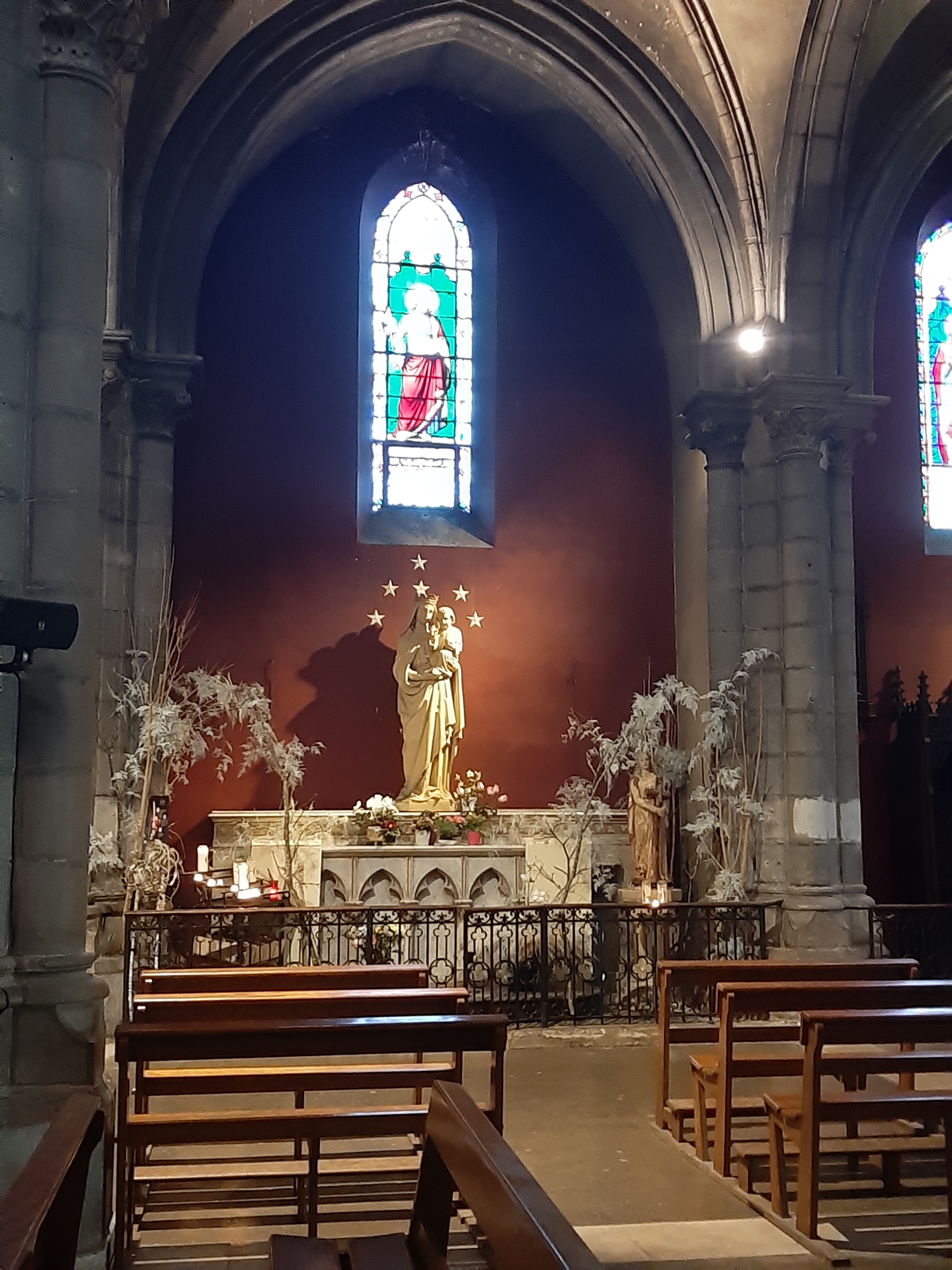 Église grande avec de magnifiques vitrail seul bémol c ' est le manque de place pour se garer car il n ' y a pas de parking