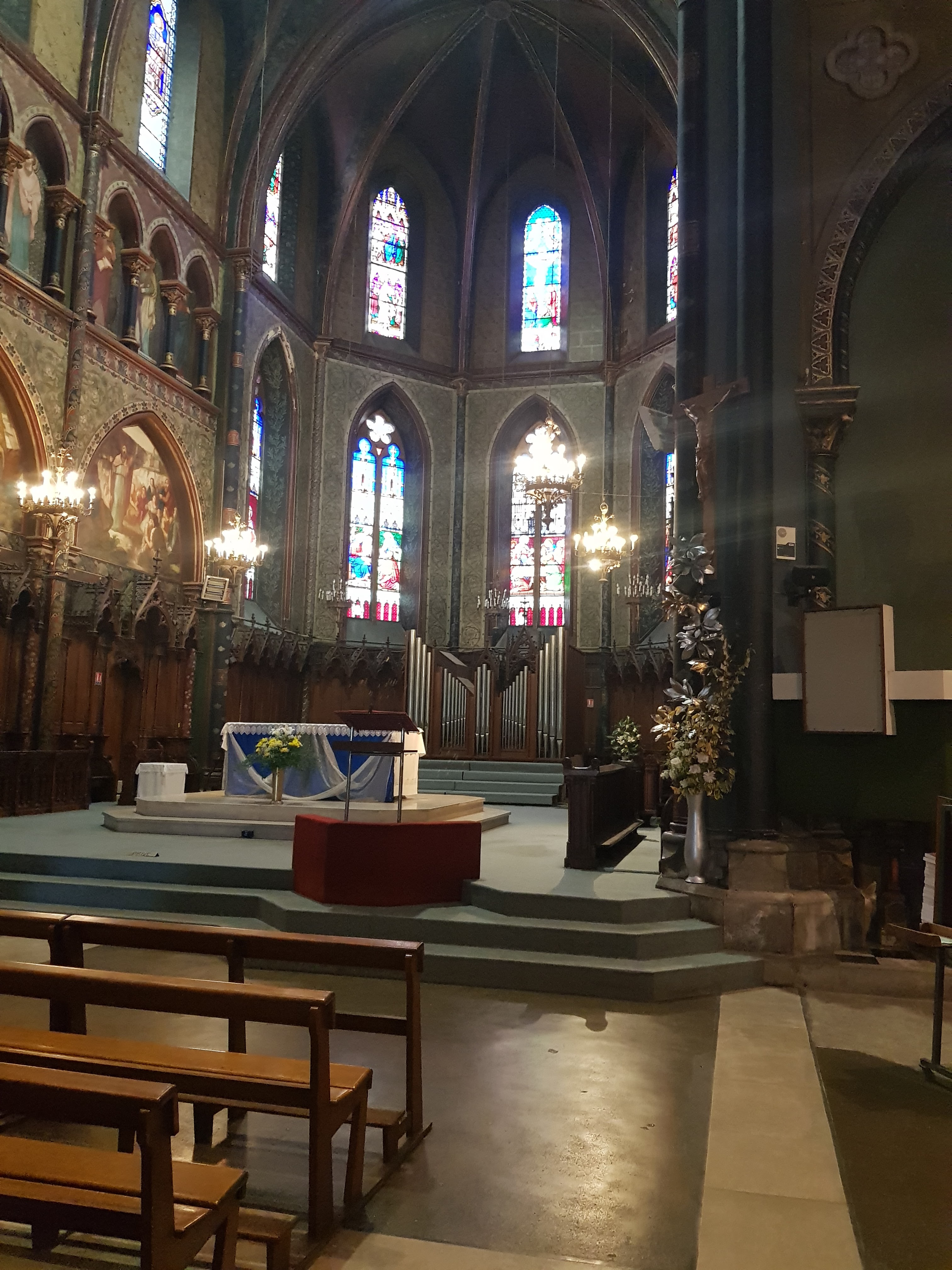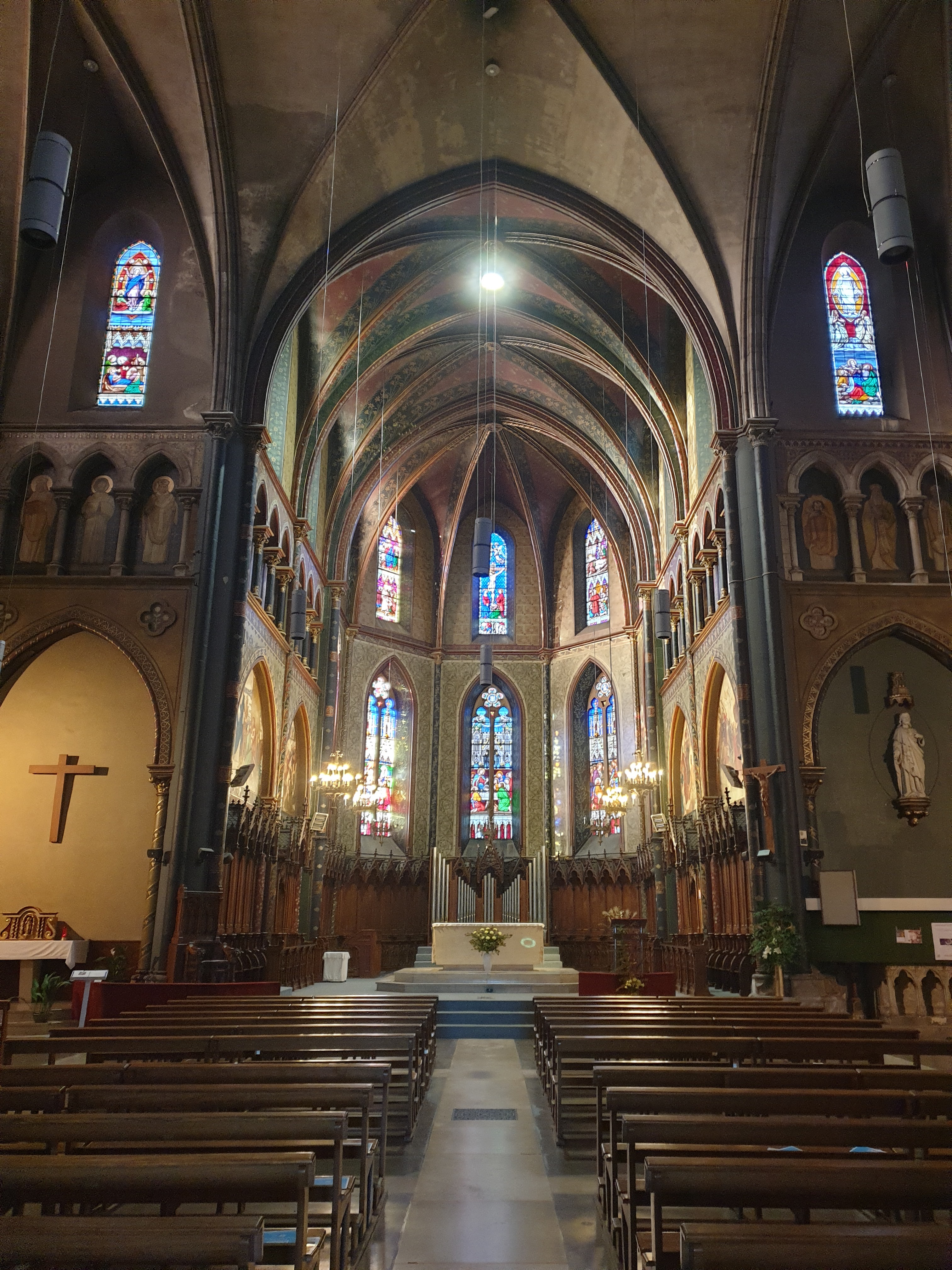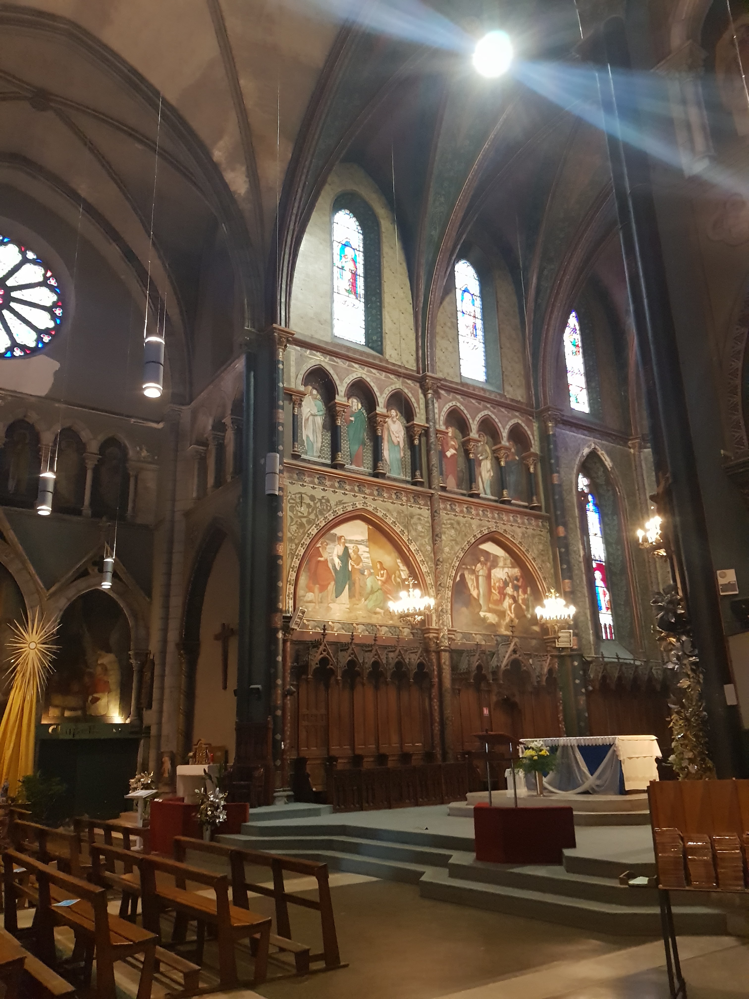 Superbe église, magnifiques vitraux et peintures, joli orgue . Très belle architecture.