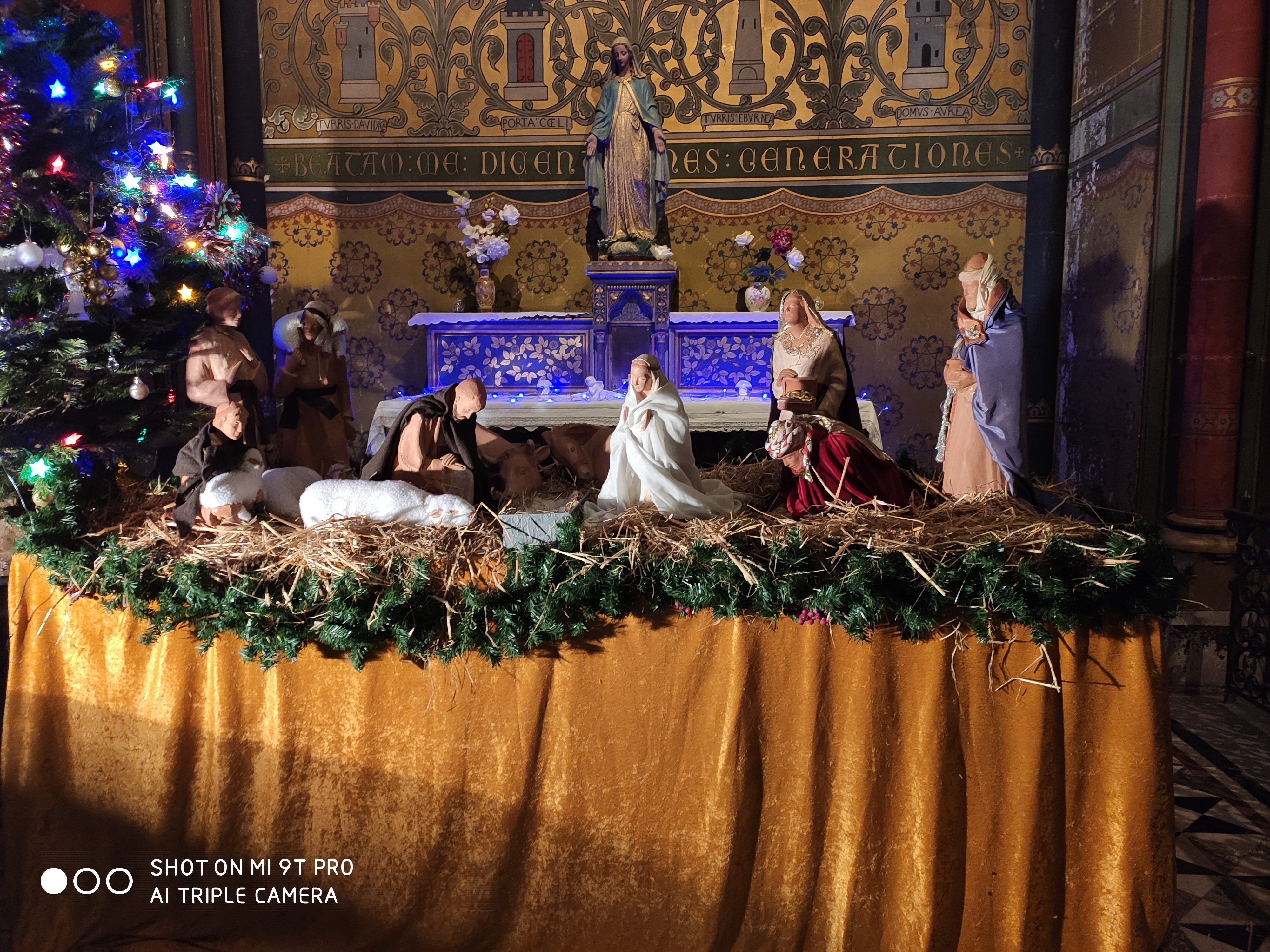 Une belle église et sa crèche de Noël. un lieu de recueillement...et une magnifique illumination historique en décembre .