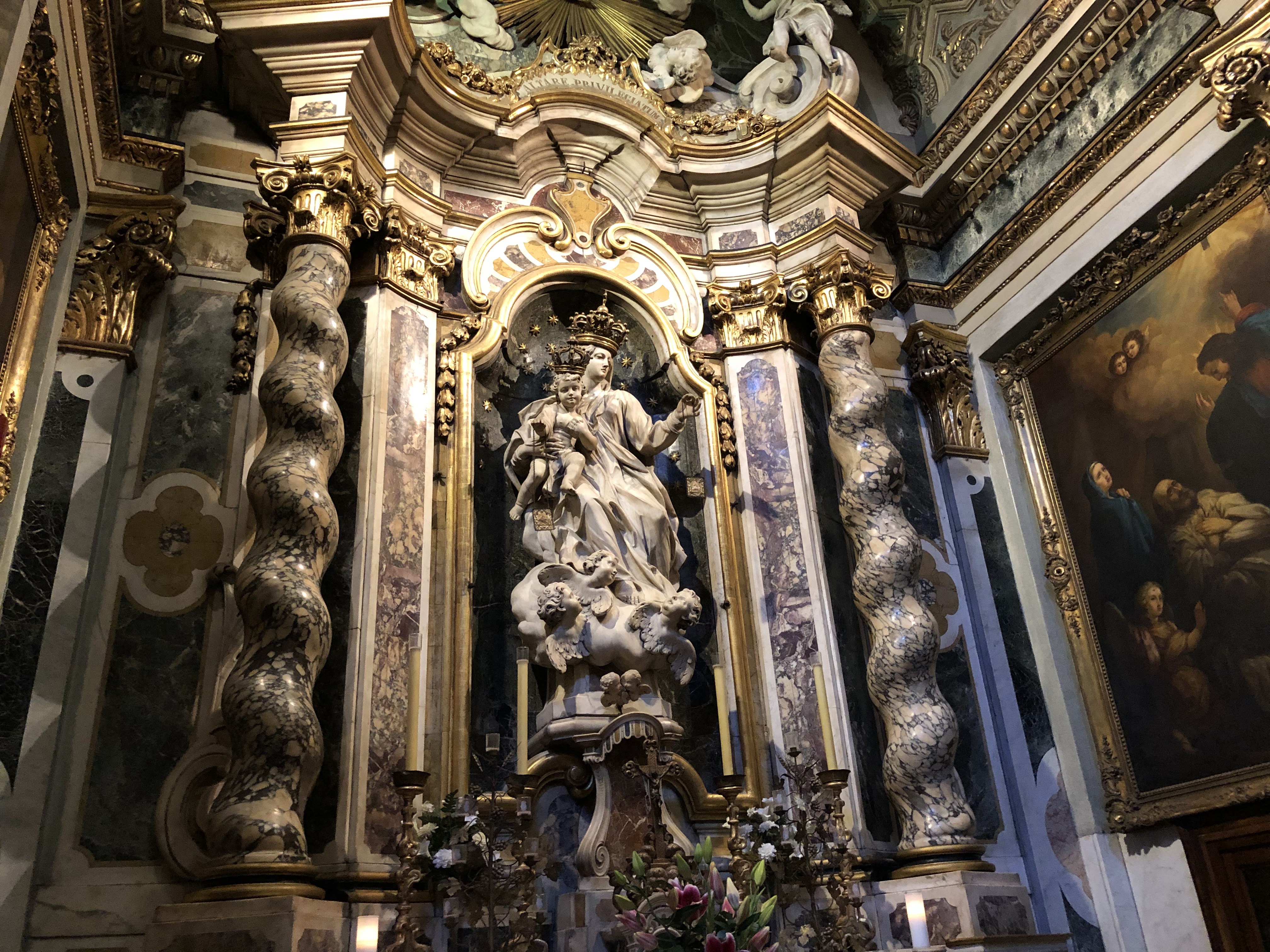 L'intérieur baroque avec plusieurs magnifiques autels latéraux est particulièrement impressionnant.