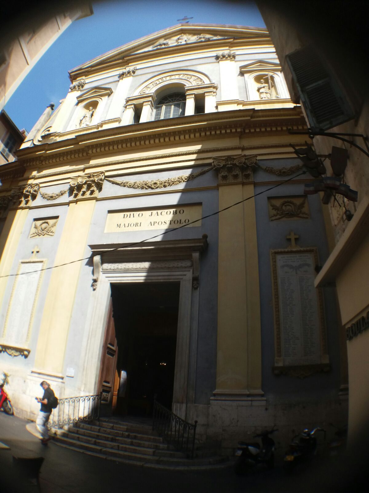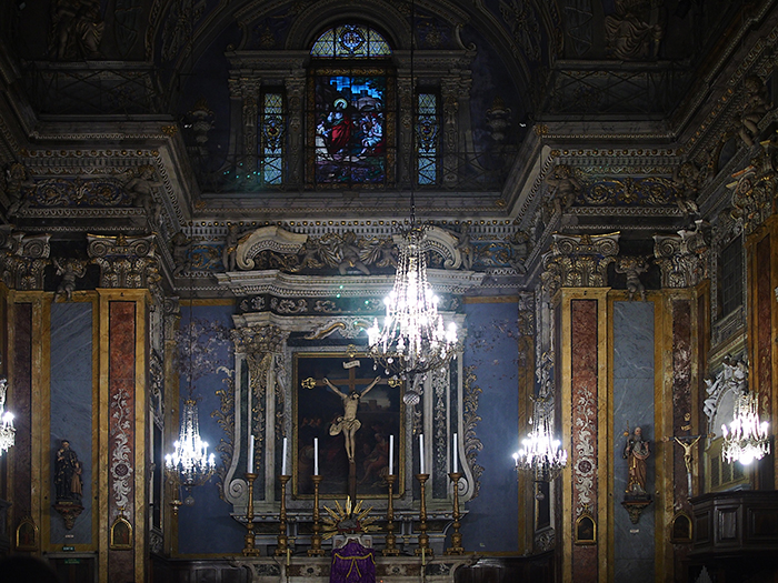 L’église San Giacomo est un autre joyau de la ville de Nice ! L'effet de le trouver en se promenant dans les ruelles du vieux Nice est magnifique. Puis l'intérieur... un spectacle. Visiter! DESCRIPTION La construction remonte au XVIIème siècle par l'architecte Jean Andrè Guibert. La façade présente des caractéristiques des styles néoclassique et baroque. L'intérieur présente une seule nef, de plan rectangulaire, de style baroque. Les principales caractéristiques de l'église sont : - le maître-autel avec l'œuvre Le Crucifix - l'arc de triomphe (la partie qui relie la nef au presbytère) où, dans l'arc, on peut voir une myriade de petits anges - la voûte du plafond avec des décorations de H. Trachel de Nice - orgue de Vergessi Bossi - fonts baptismaux : bénitier du XVIe siècle. Entrée libre.
