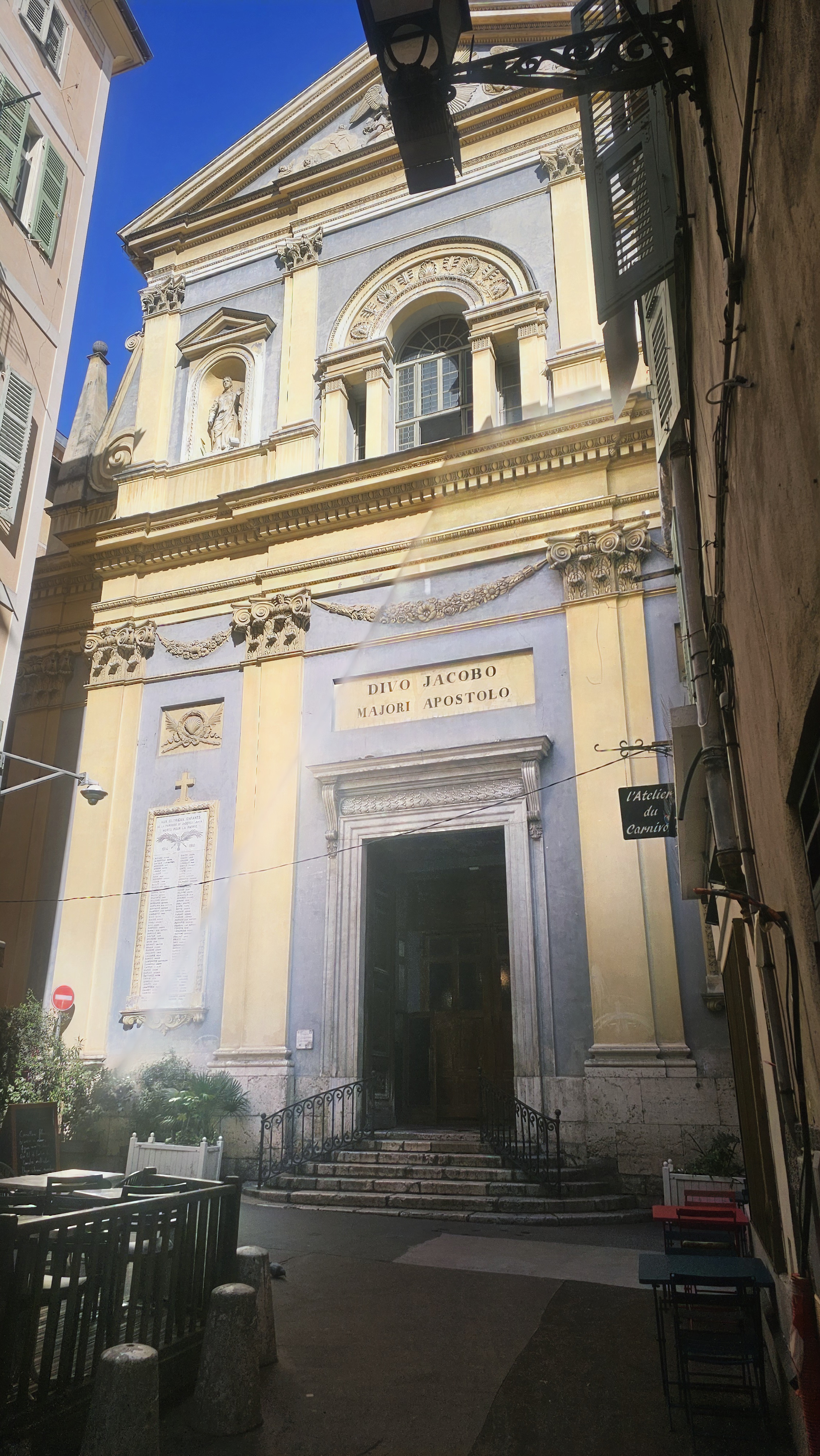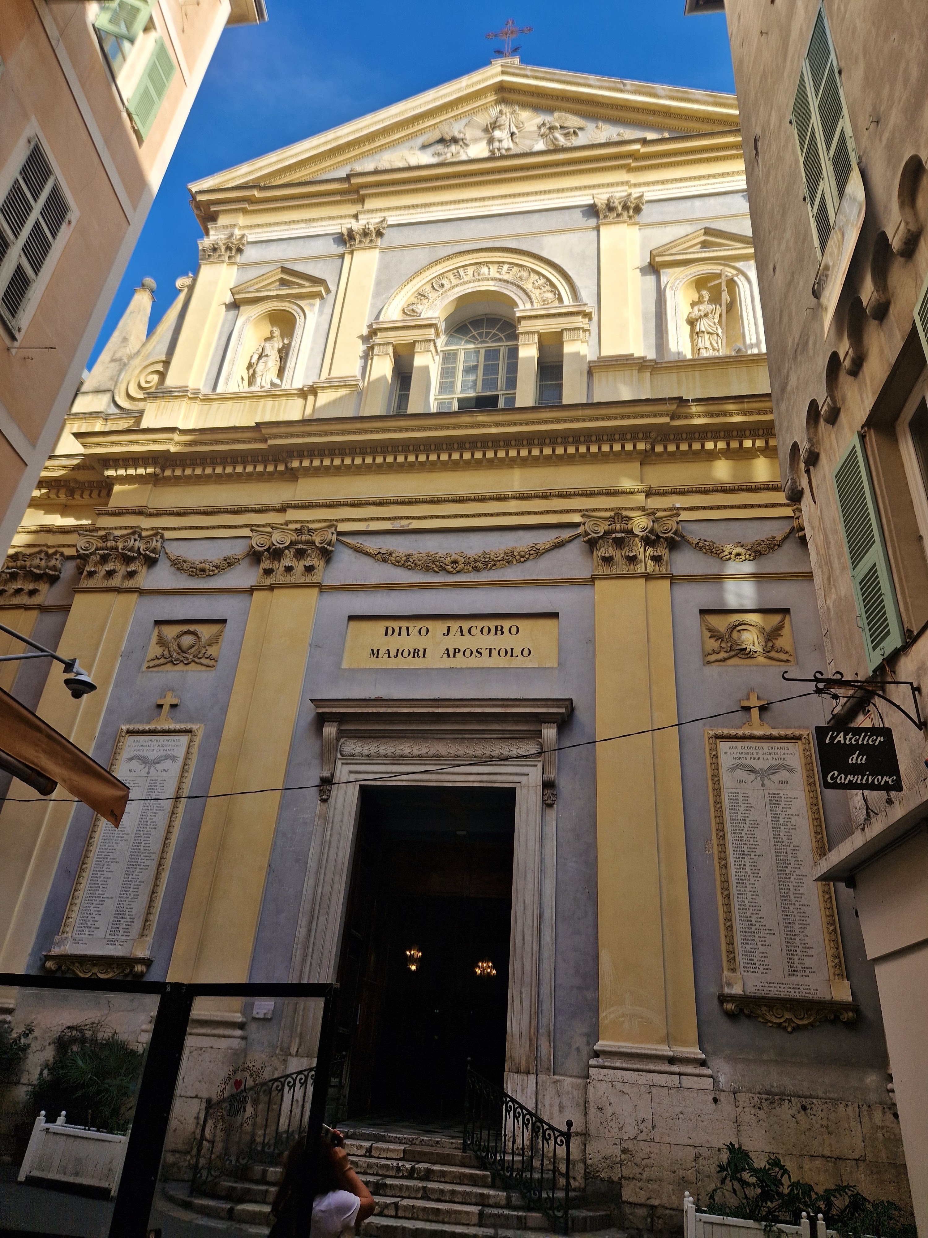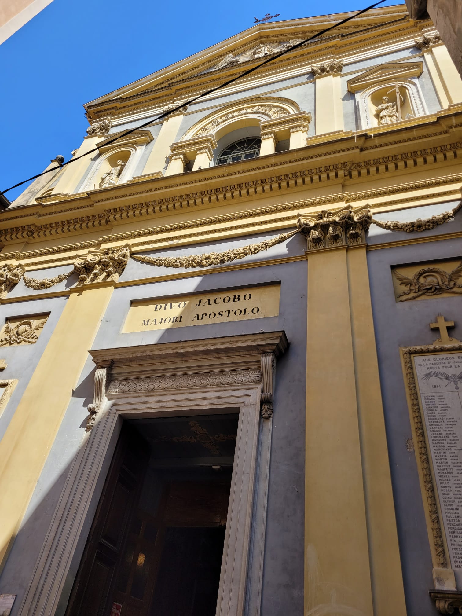 L'église de St Jacques le Majeur, appelée communément le Gesu, se situe rue Droite dans le vieux Nice. Cette église est dédiée à St Jacques le Majeur, autrement dit, à l'apôtre Jacques, frère de Jean.