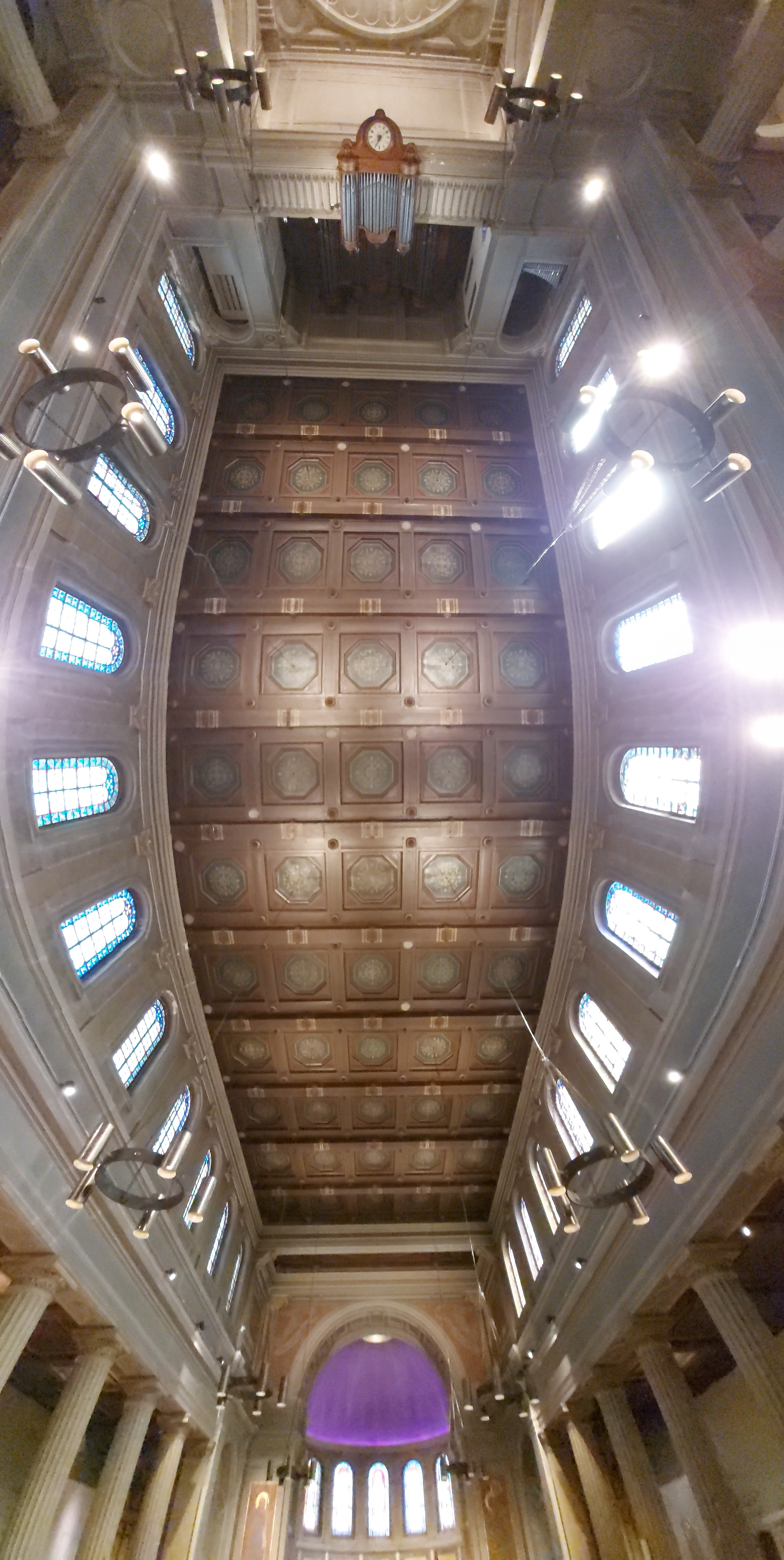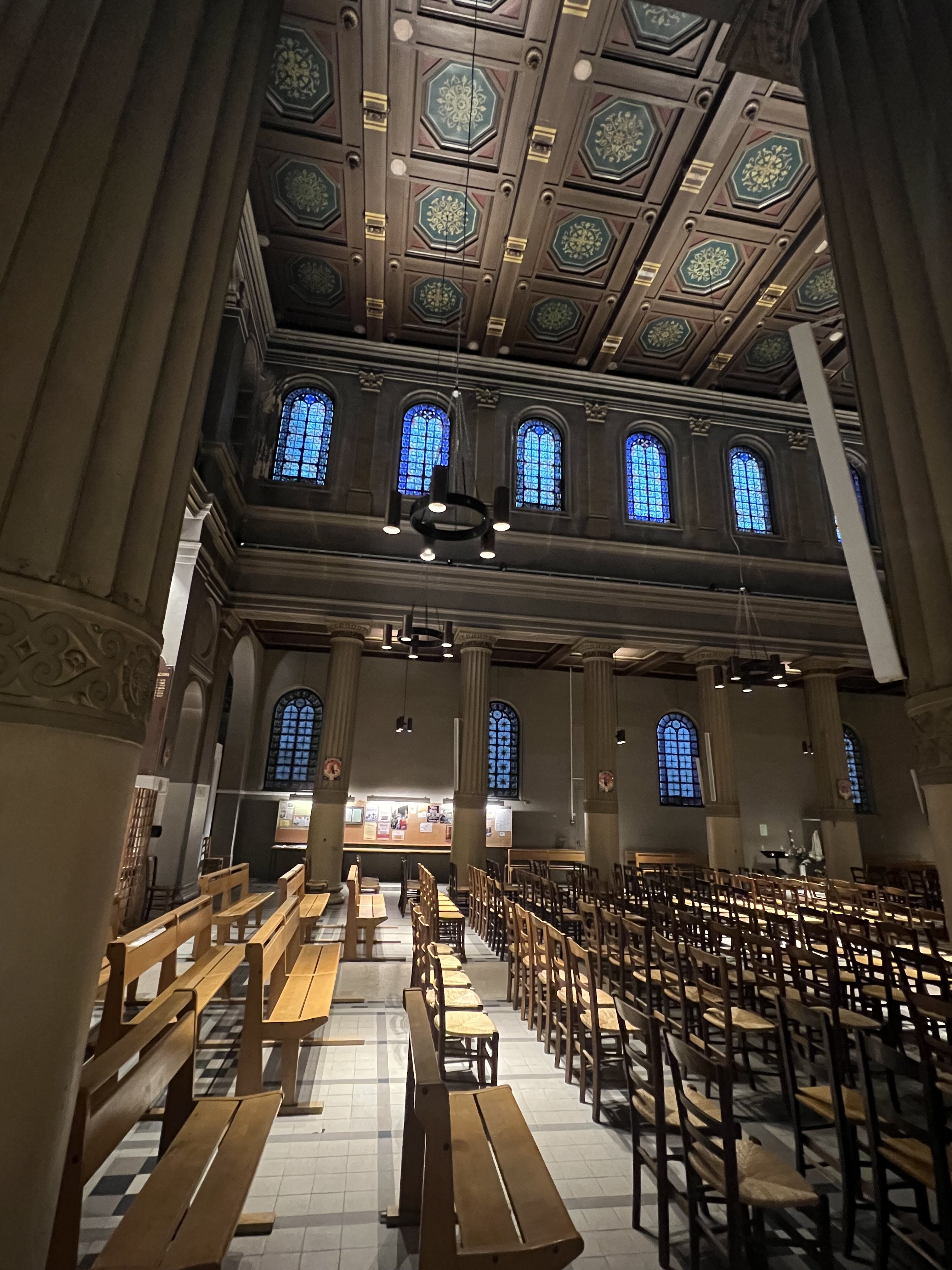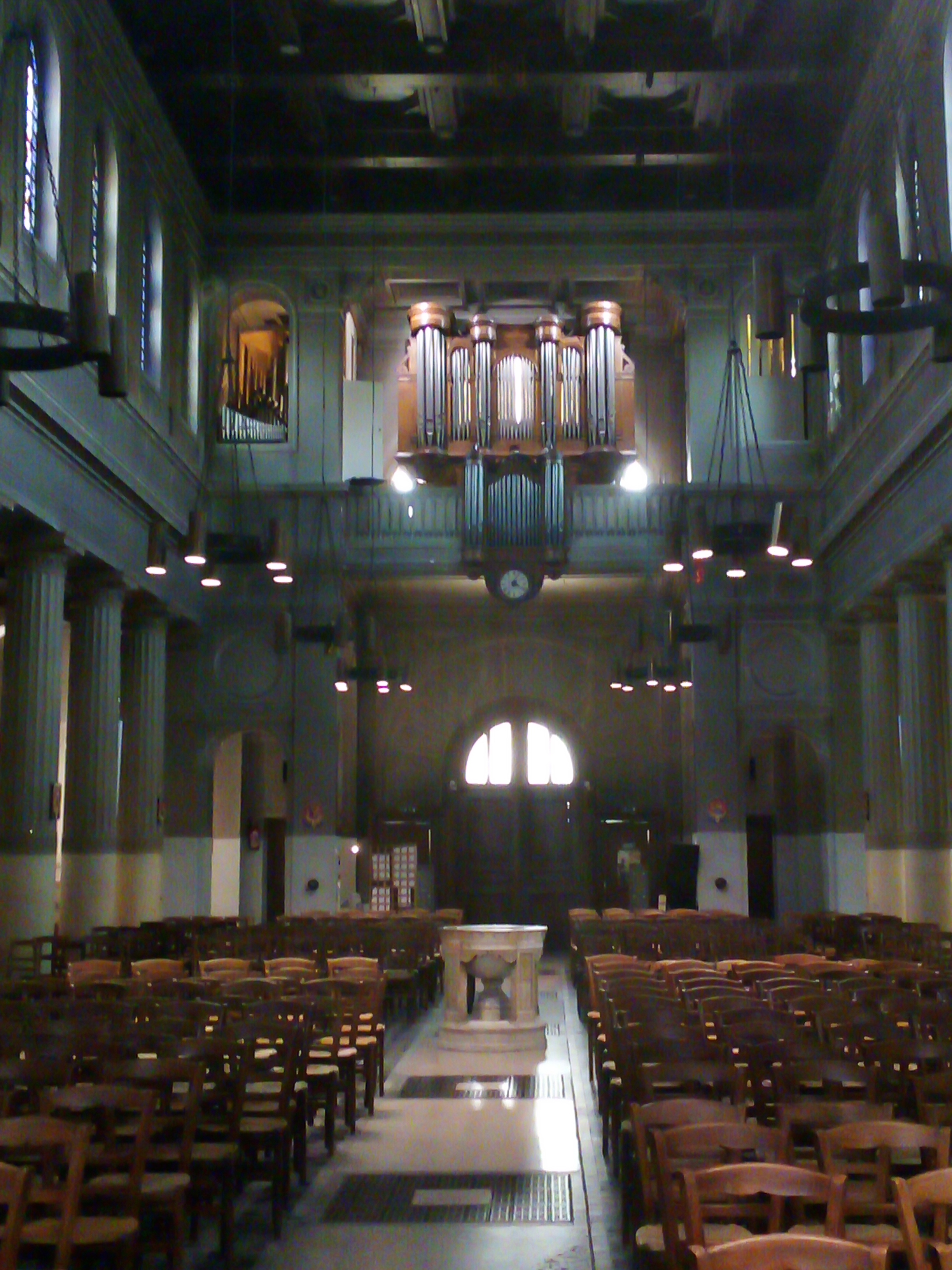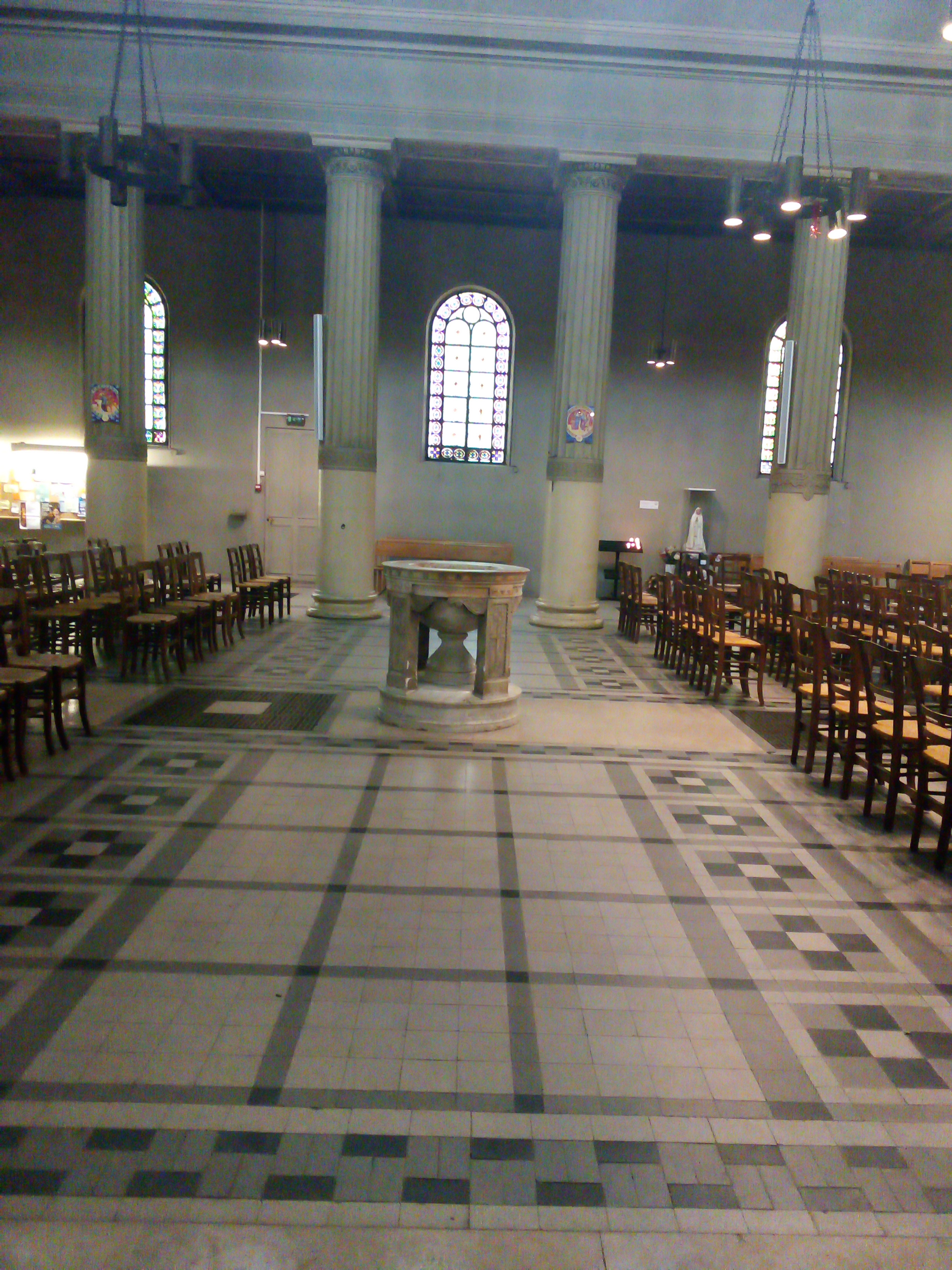 De superbes vitraux illuminent cette belle église au plafond peint. Sobriété du mobilier, recueillement possible. Horaires des messes affichés.