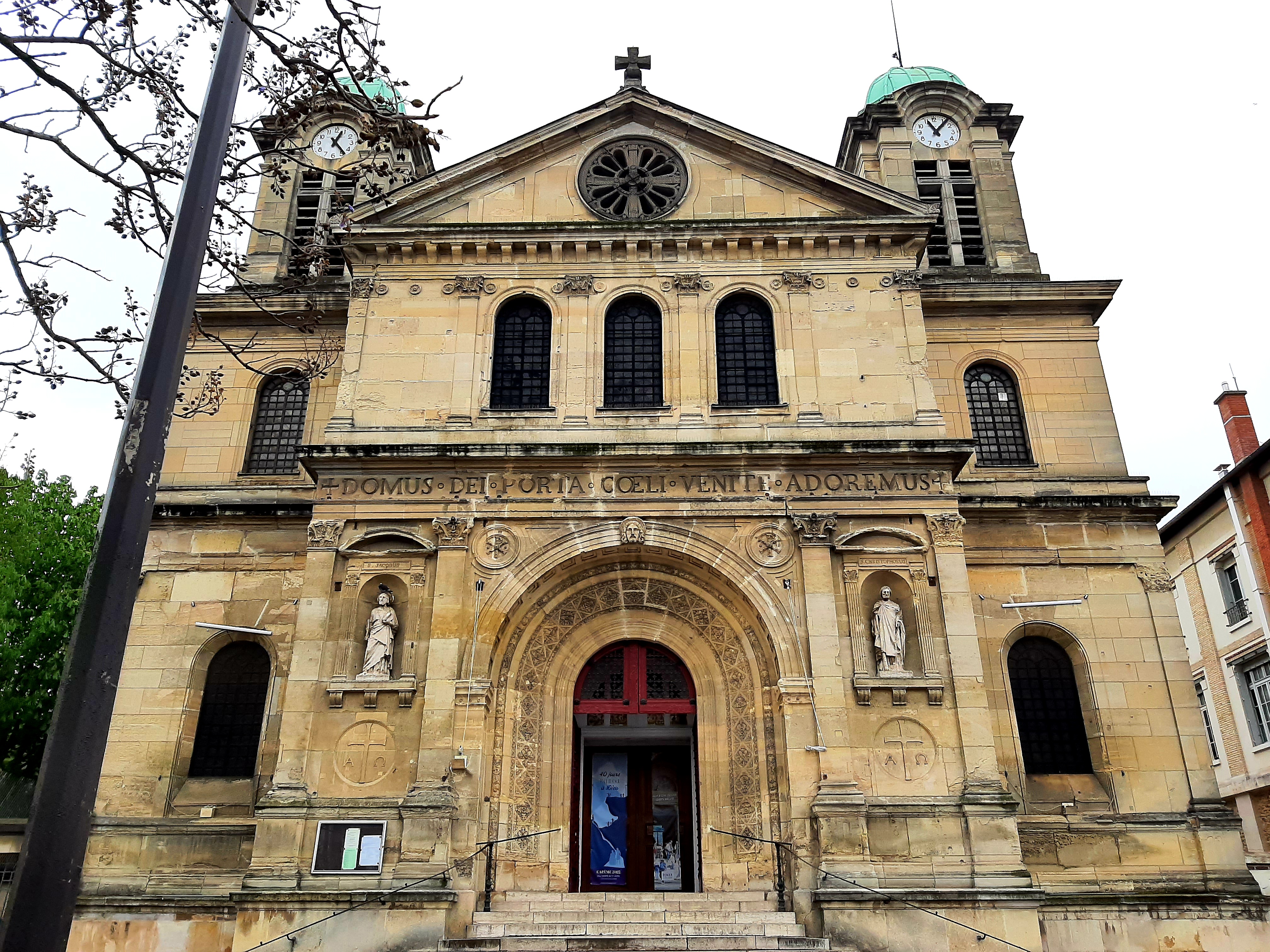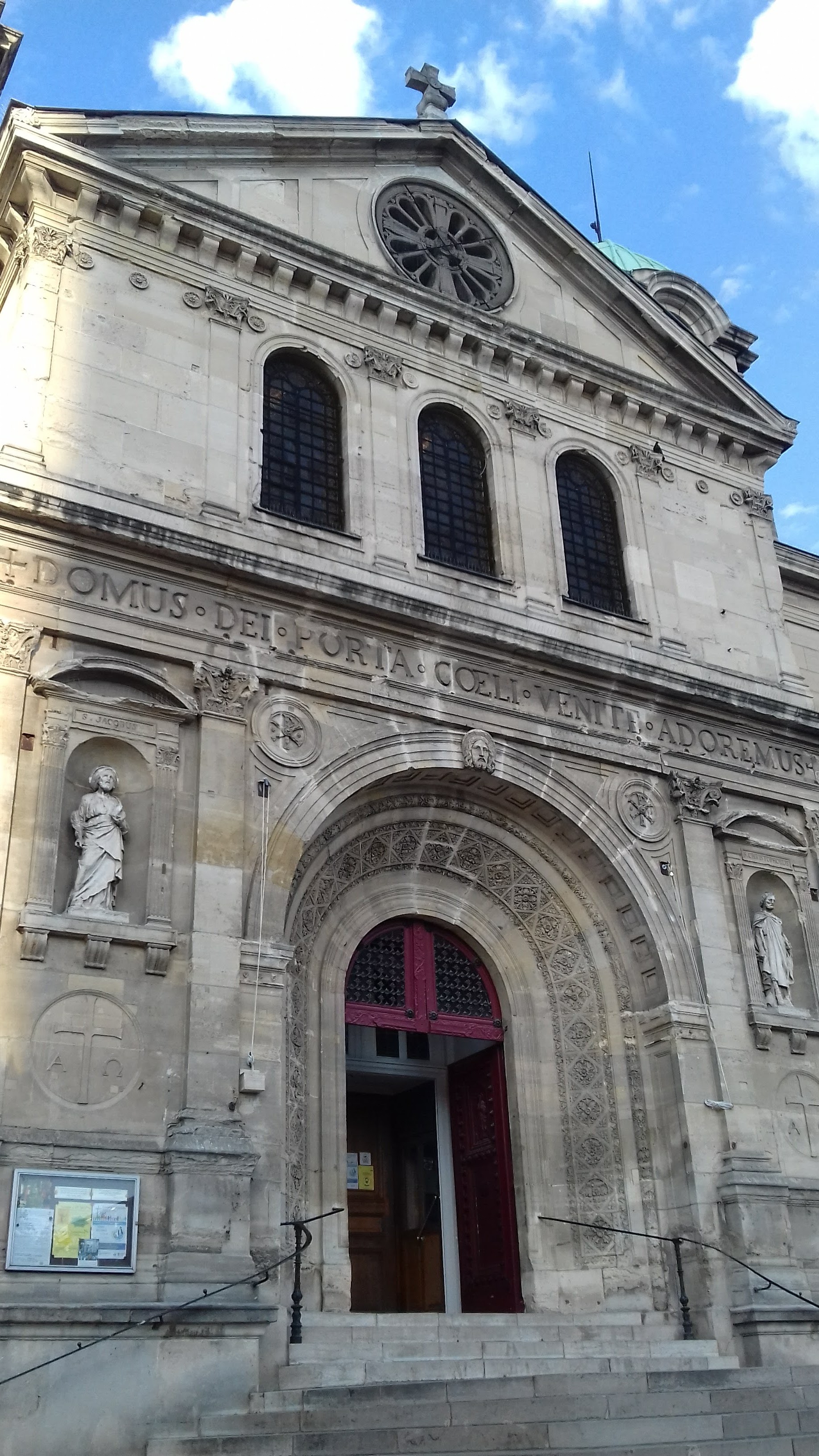 Une très belle église catholique du milieu du XIX ème siècle, située entre le joli square Serge Reggiani, la caserne de Bitche et la place de Joinville, bordant le canal de l'Ourcq près du pont-levant de la rue de Crimée. De style neo-byzantin avec ses coupoles et ses voûtes en plein cintre, elle est grande et lumineuse grâce à ses magnifiques vitraux. Ceux de l'abside sont de toute beauté, avec le Christ ressuscité et deux anges thuriféraires sur fond rouge, saint Paul et saint Pierre sur fond bleu et les deux saints Patrons de l'église, saint Jacques et saint Christophe sur fond vert. L'on retrouve les deux saints Patrons en sculpture de part et d'autre de l'entrée et en fresques de chaque côté du chœur. L’église possède l’une des copies de la célèbre statue de saint Pierre en bronze, qui orne la Basilique Saint Pierre de Rome, du sculpteur italien Arnolfo di Cambio. En plus du plaisir des yeux, n'oublions pas bien sûr ceux du cœur et de l'âme puisque nous sommes dans une église. La communauté paroissiale semble très accueillante et dynamique et le site web proposé est complet et interactif.