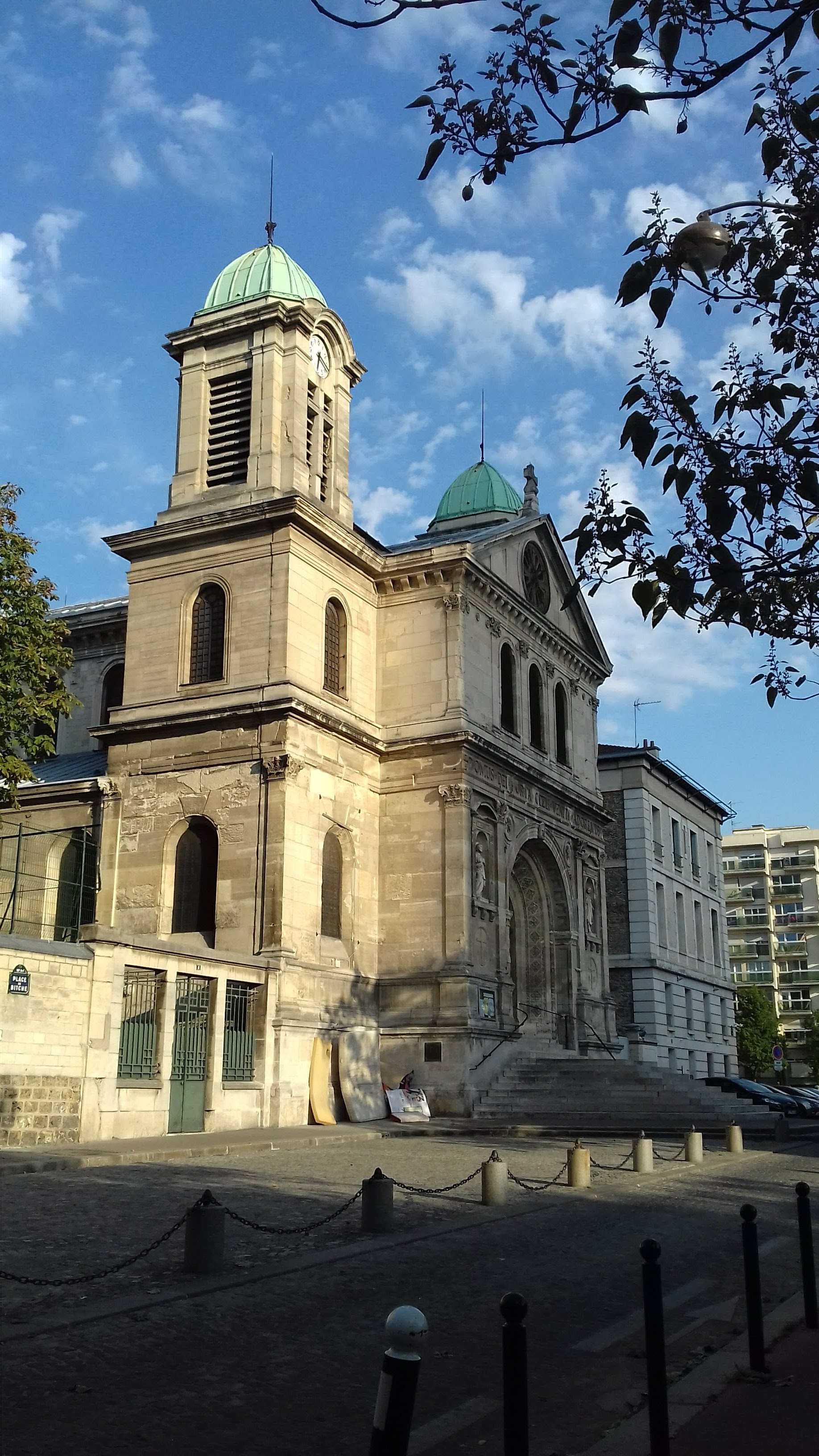 Très belle église face au square Serge Regiani 19ème. L'endroit est calme propre, une voie de circulation pour les convois mortuaires. Aujourd'hui sur le kiosque du square Serge Regiani une quinzaine de musiciens jouaient de la musique. J'ai trouvé cela extraordinaire face à cette église les spectateurs assis et debouts qui profitent de l' instant magique et solennelle.