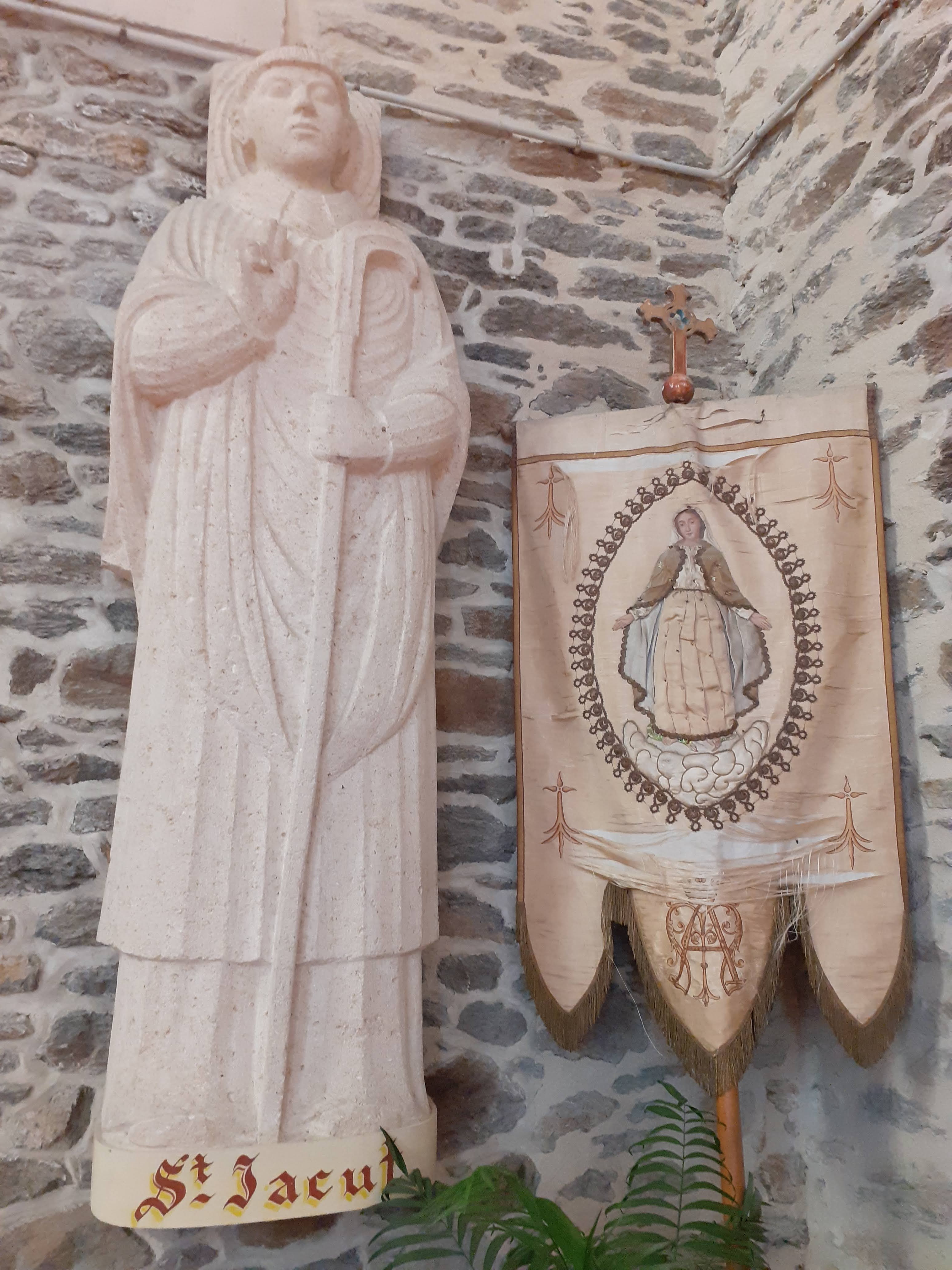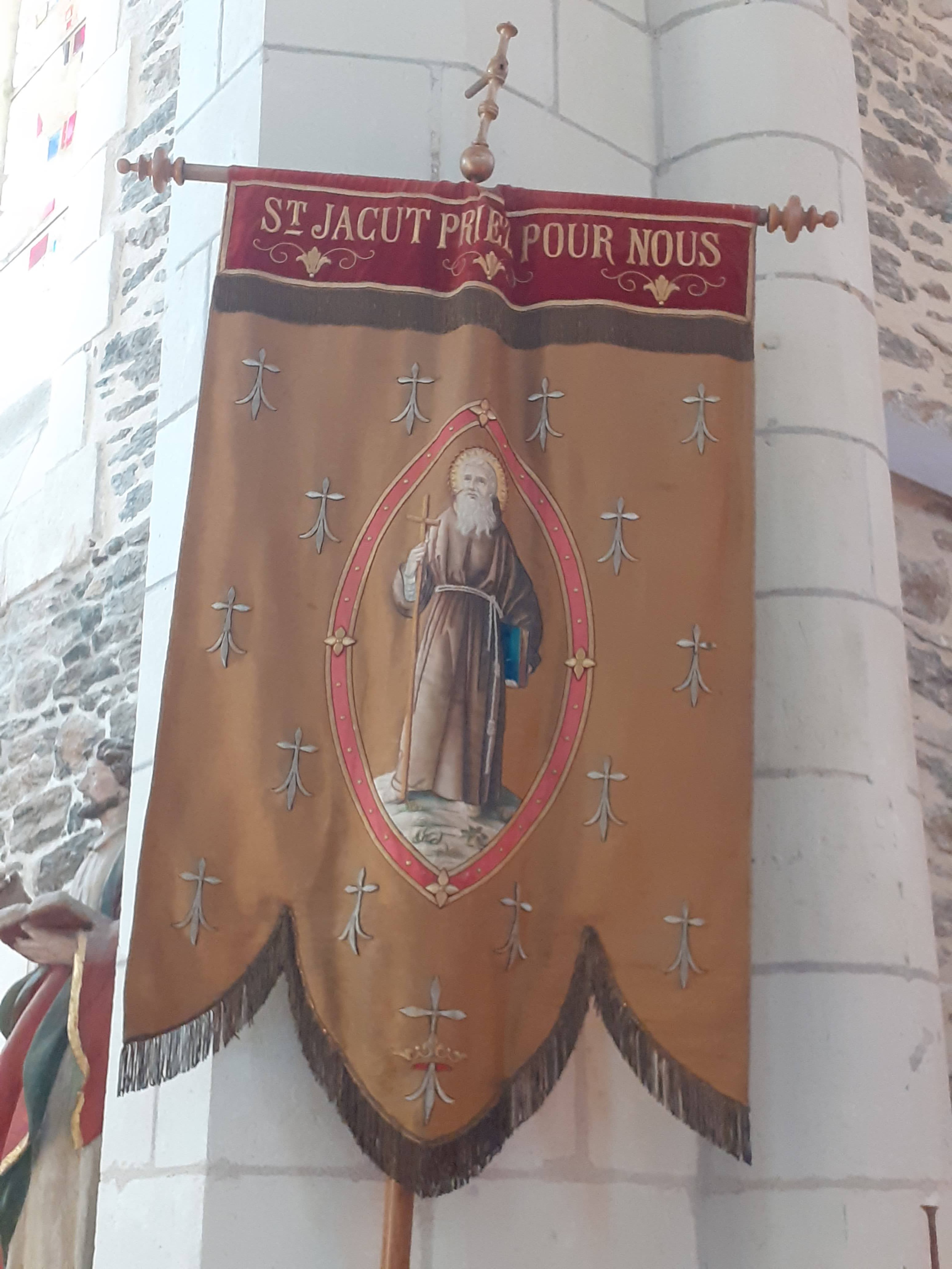 Saint-Jacut était moine au VI ème siècle et frère de Saint-Guenole. Pour cette église, datée de la fin XIX ème (1881) de style gothique, le clocher lui, date de 1904. Beaux vitraux, intérieur frais et gai, mur de pierres jointoyees, quelques jolies statuettes.