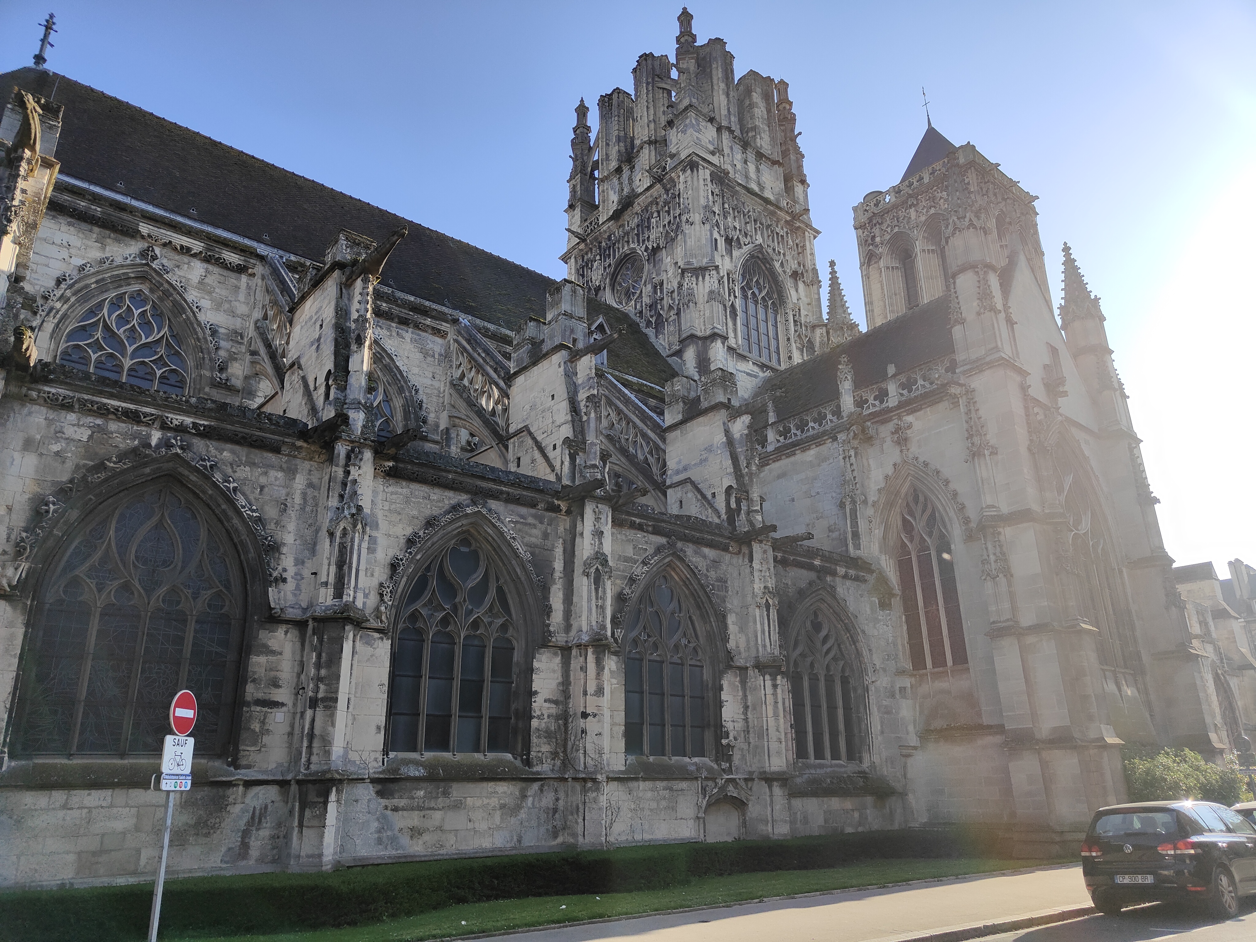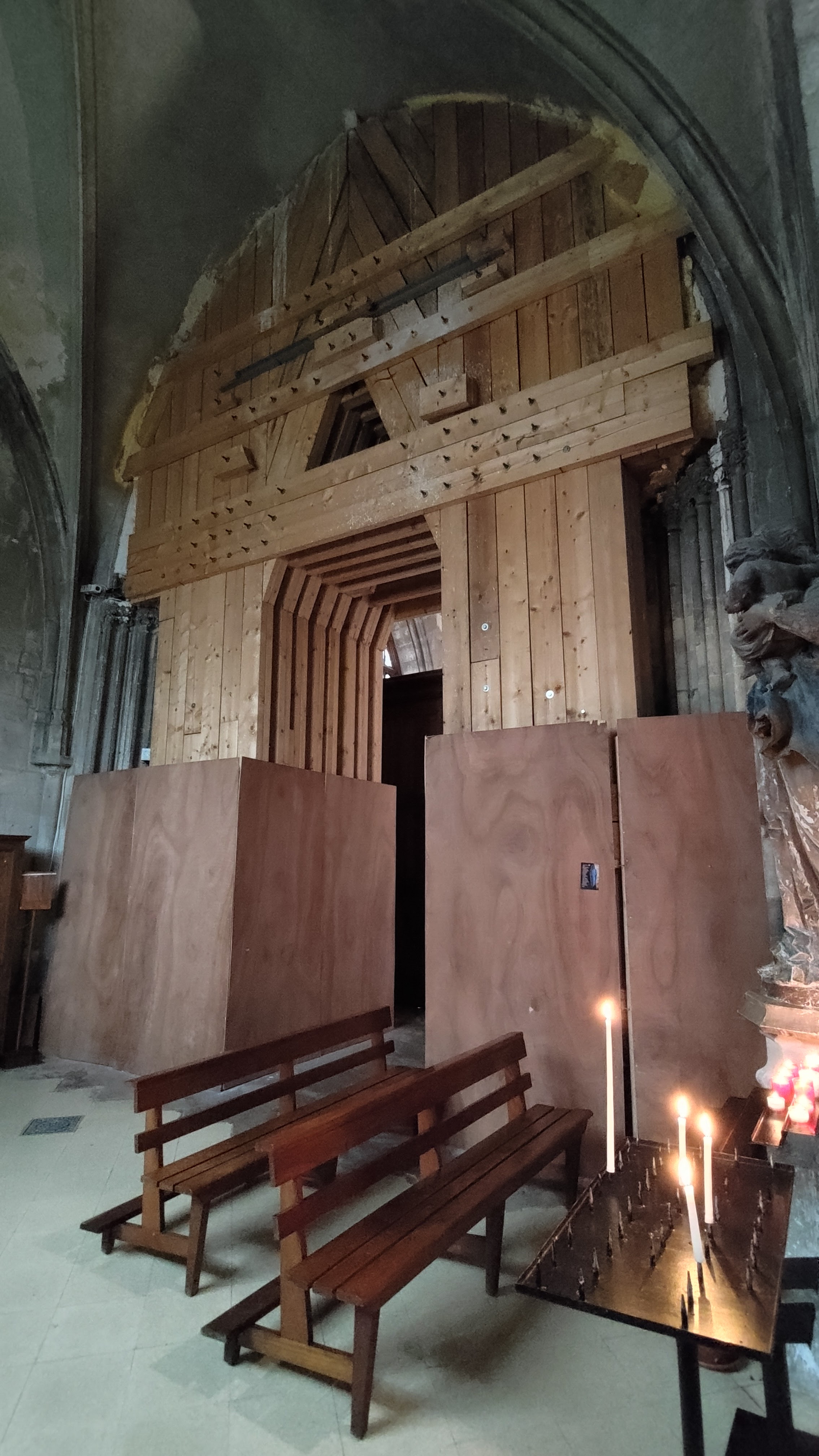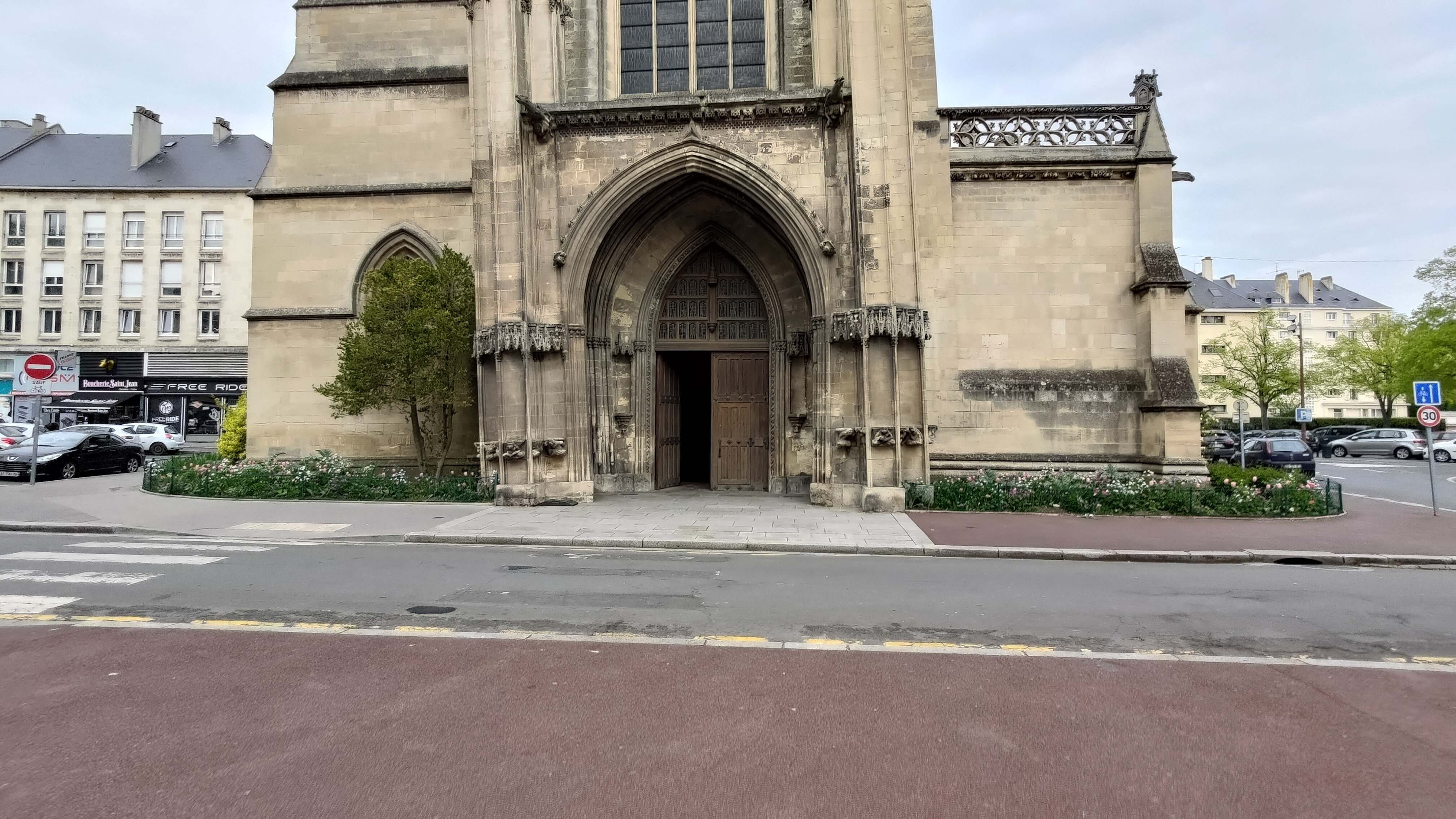 Bel édifice gothique qui a miraculeusement survécu aux bombardements alliés, riches en dégâts collatéraux. Il est certain que le portail royal apparaît sinistré. De plus, un ravalement représenterait un minimum indispensable. Mais où passe l'argent public?