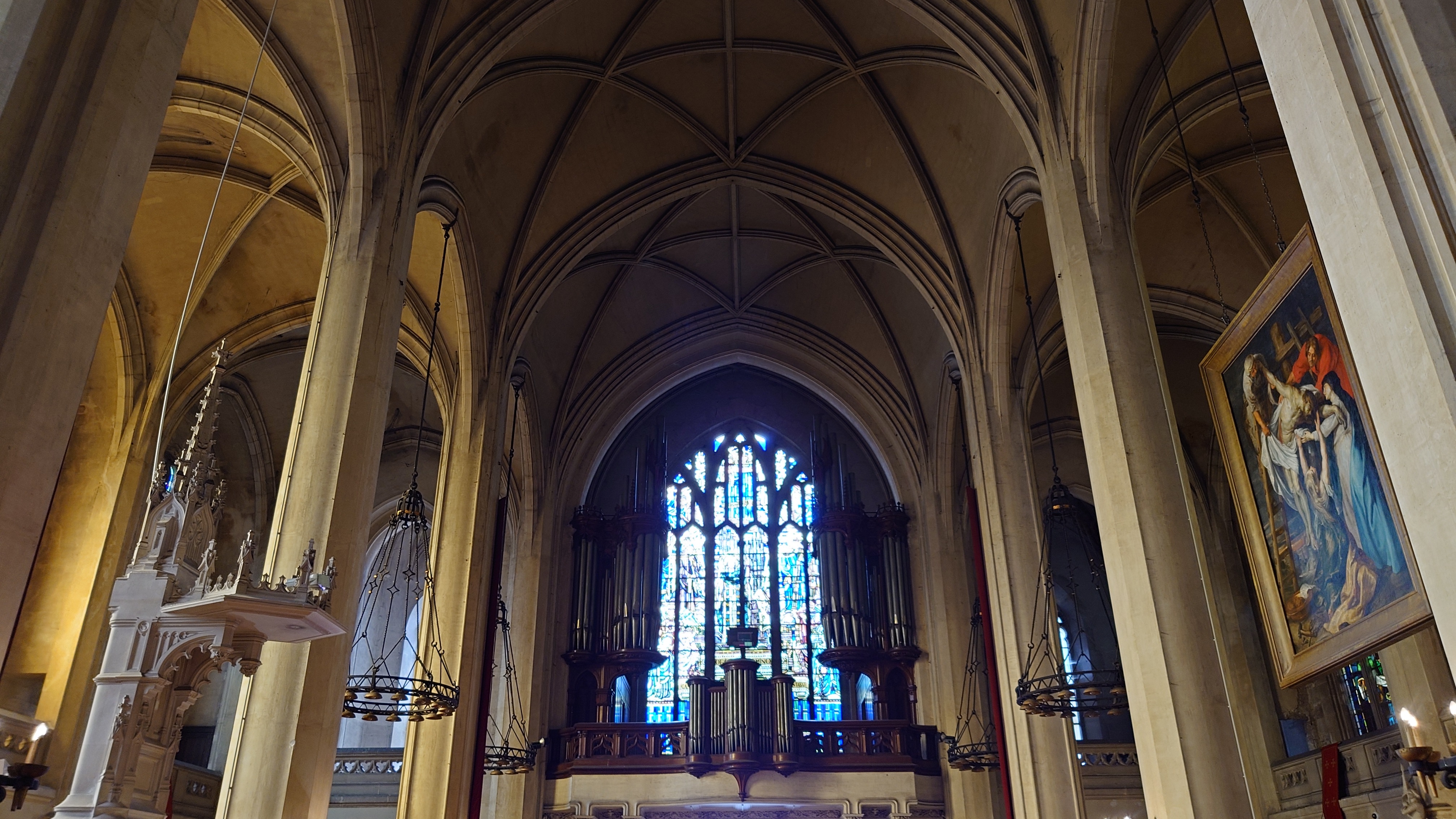 Belle église à l'architecture intérieure originale. Un superbe tableau de Rubens bien mis en valeur.