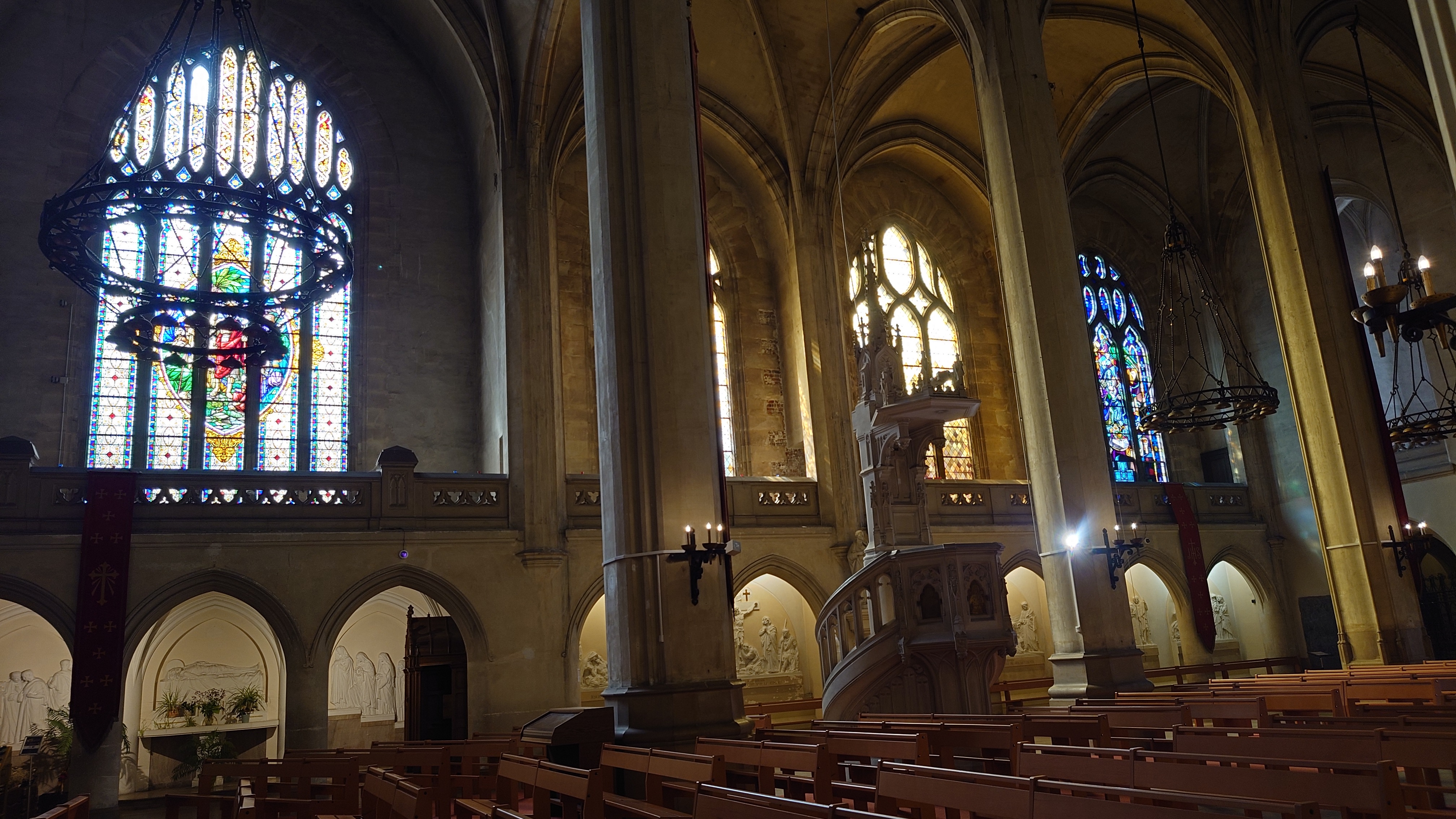 Eglise située en plein millieu d'Arras près du beffroi et de la grande place , sous ses airs sombres de l'extérieur se cache une grande église tout en couleur a l'intérieur. Bien ornée avec des vitraux en son sein , l'accueil de l'édifice se veut chaleureux , tout en silence et avec le charme que l'on peut retrouver dans cette belle ville d'Arras