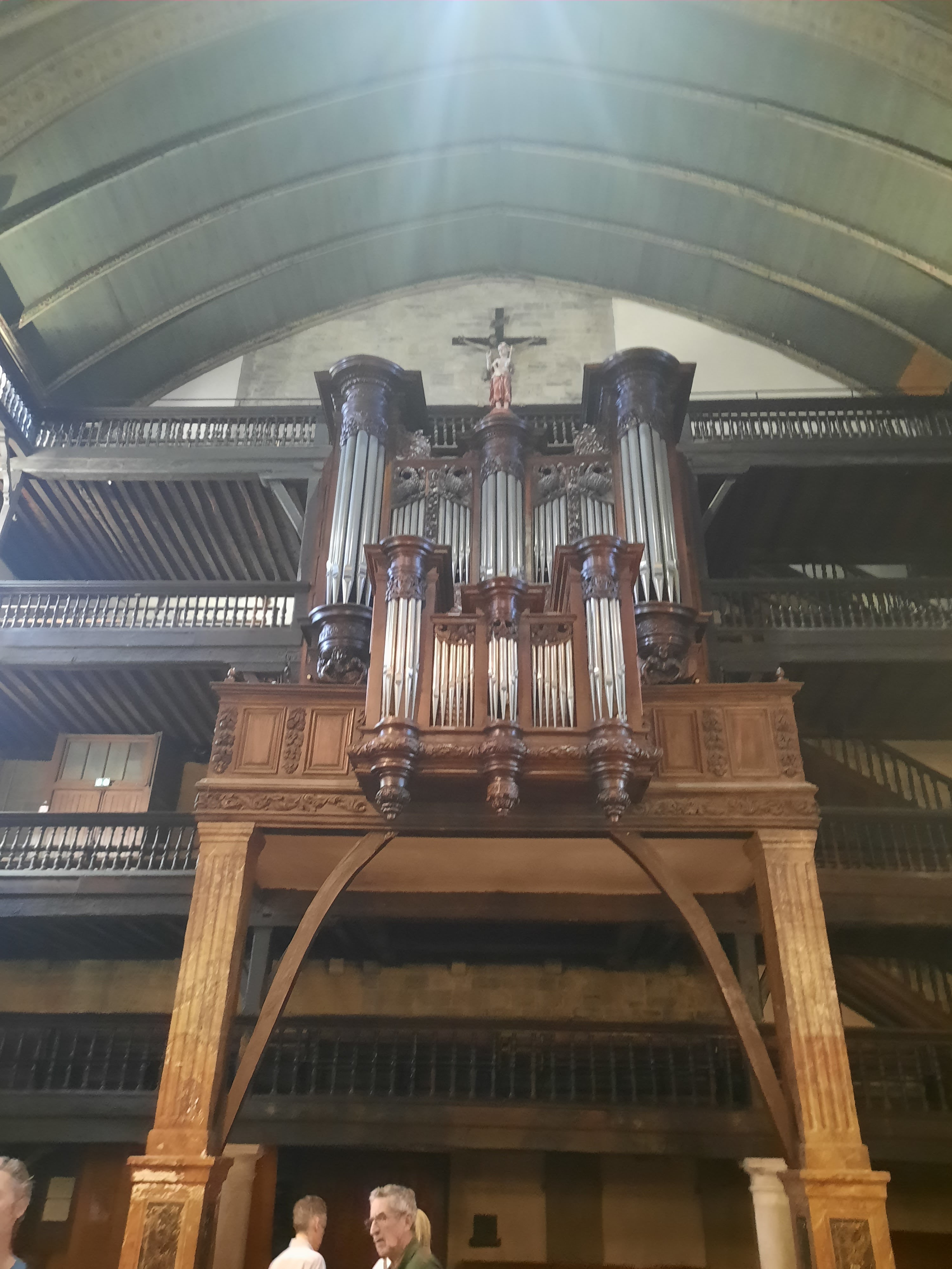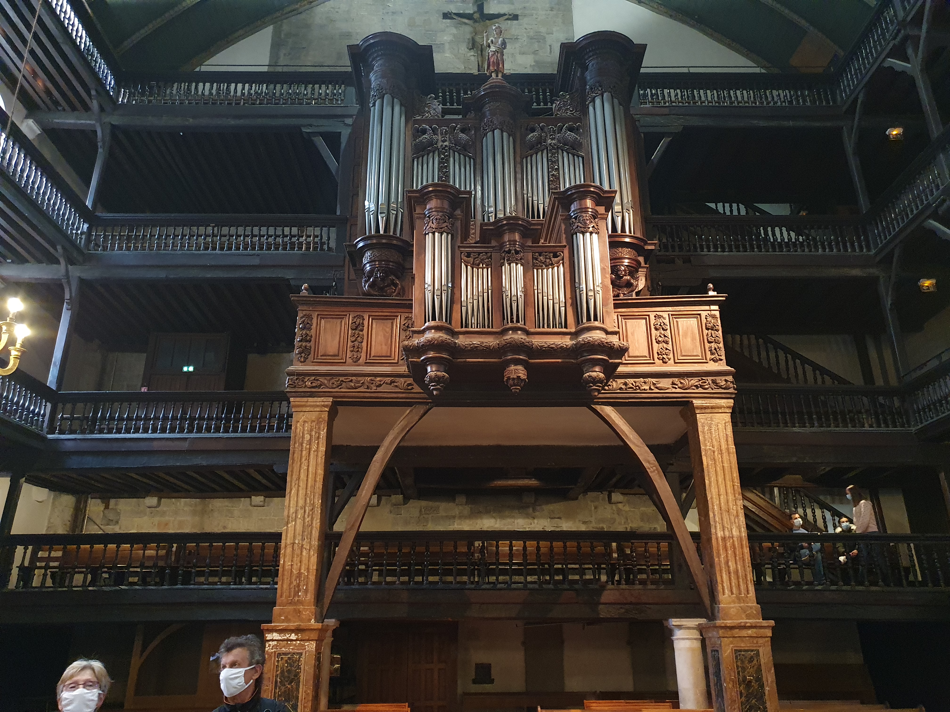 Visite de l'orgue en réfection. Ce fut passionnant. Cette visite était assurée par l'épouse de notre organiste, Jésus Martin, elle même est professeur d'orgue et historienne de cet instrument, et par le facteur d'orgue chargé de la remise en état de l'orgue. Un moment très privilégié avec deux personnes passionnées qui ont su se mettre à la portée de néophyte.