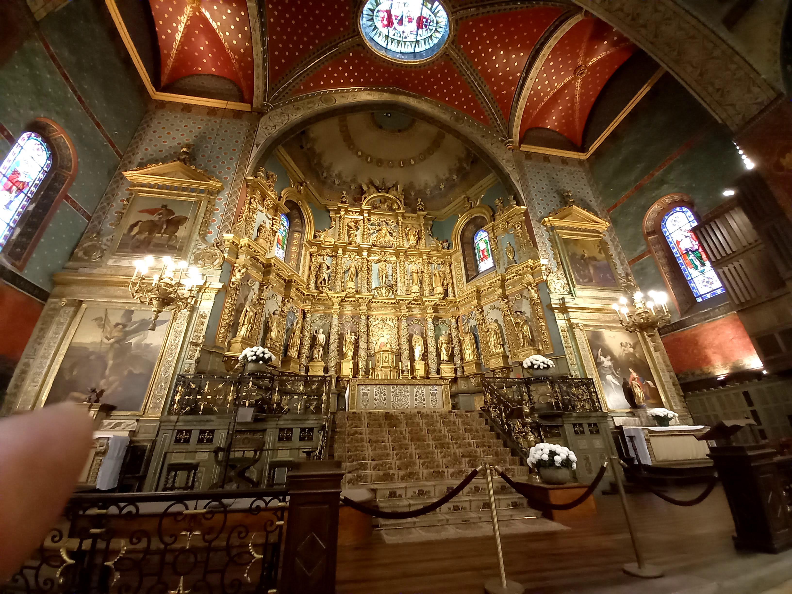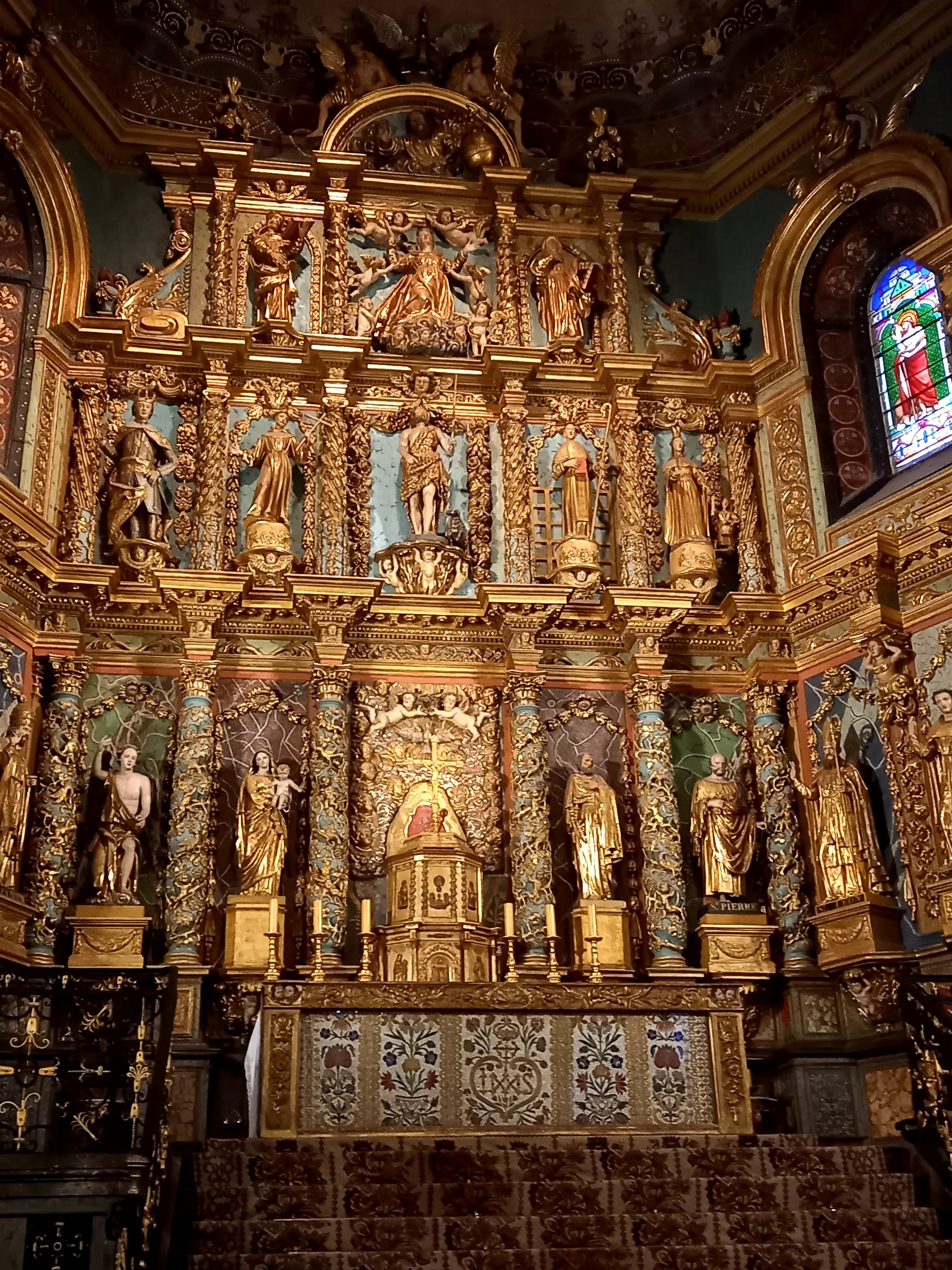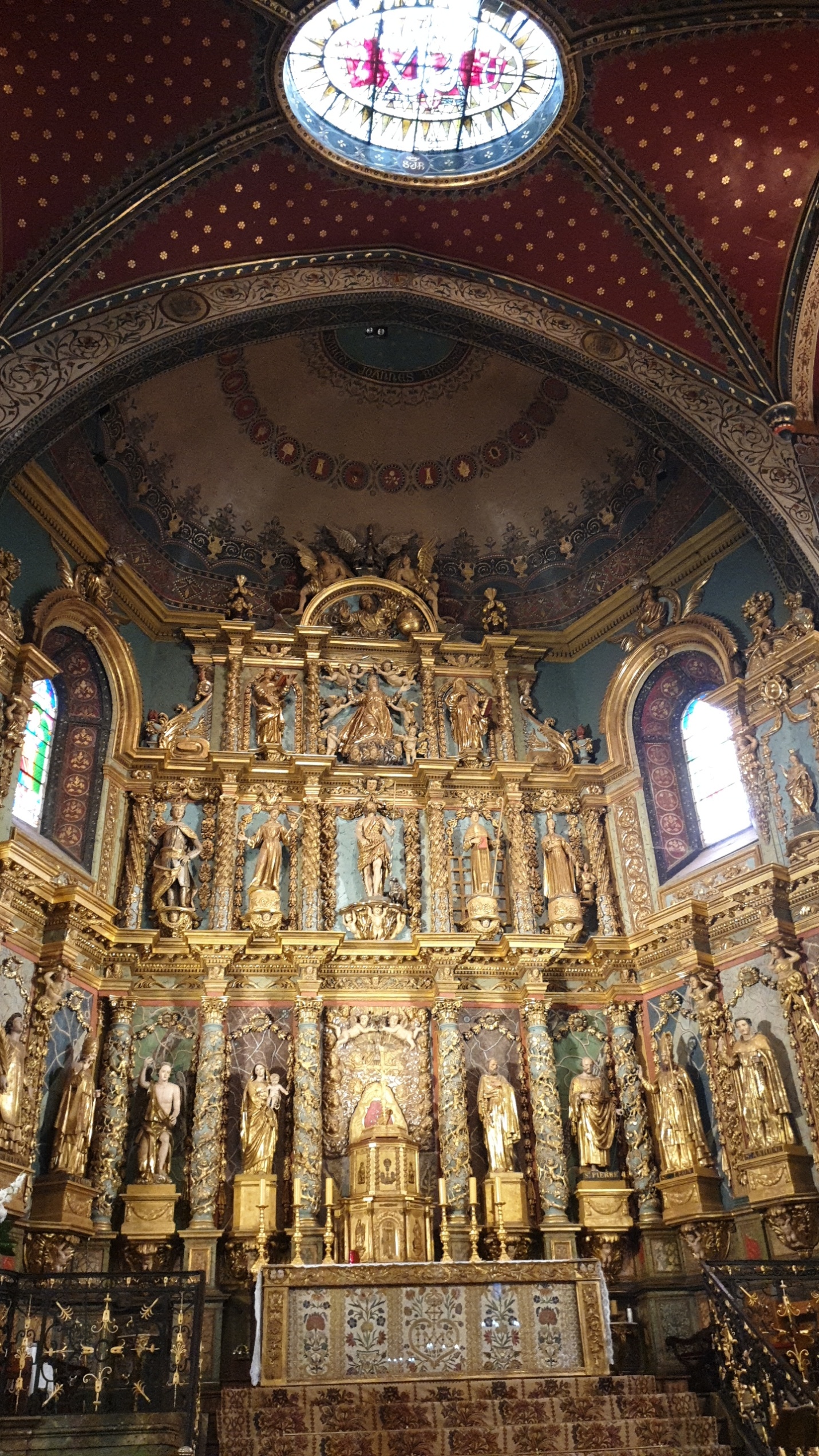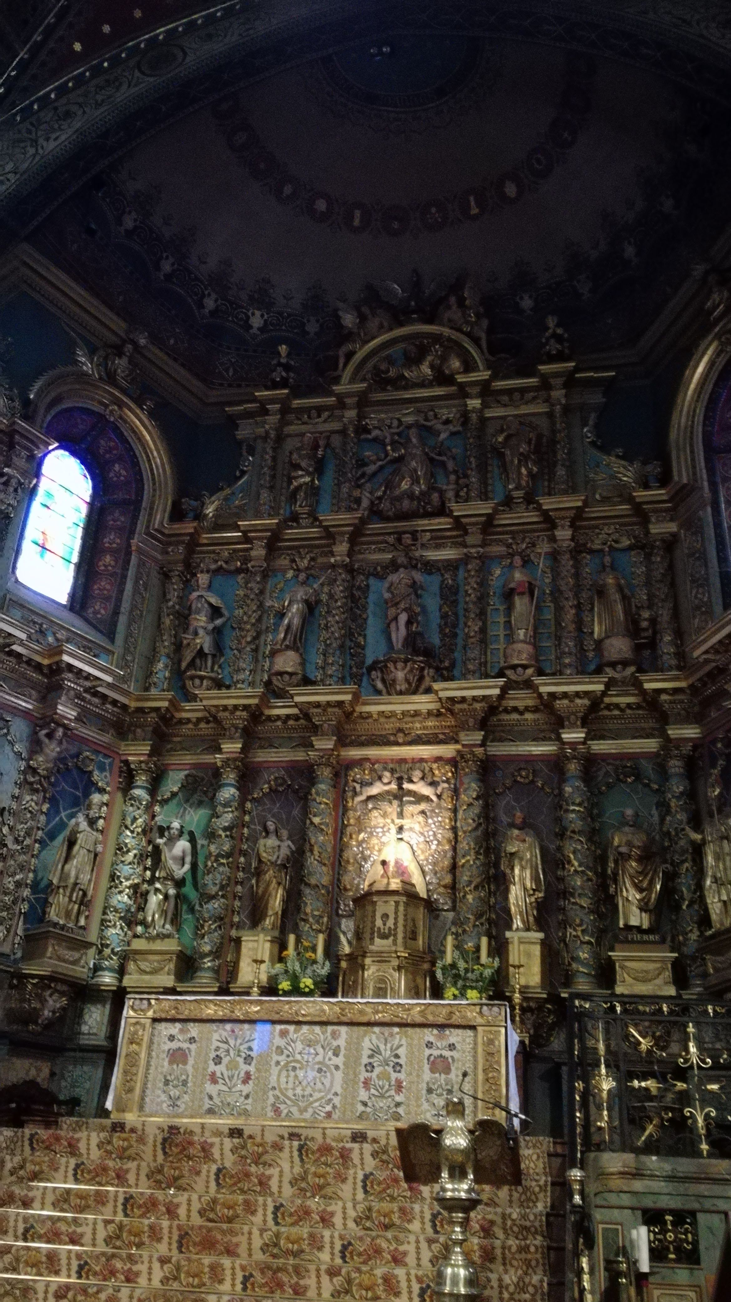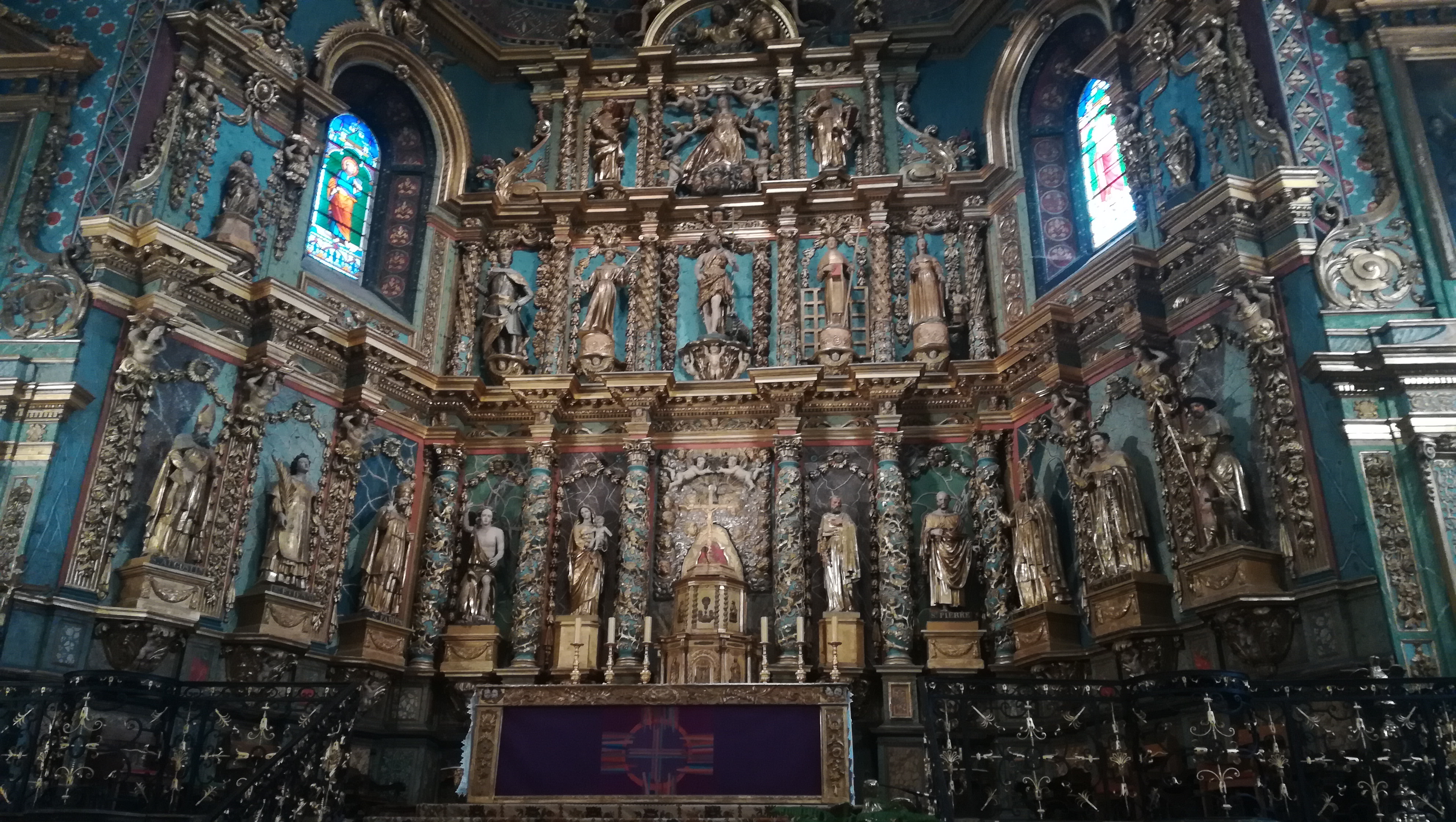 Étonnée et impressionnée par sa richesse: retable en bois doré magnifique avec ses 18 statues, son autel et ses marches, même l'orgue... Je réalise enfin que c'est dans cette église que Louis XIV s'est marié 😅...