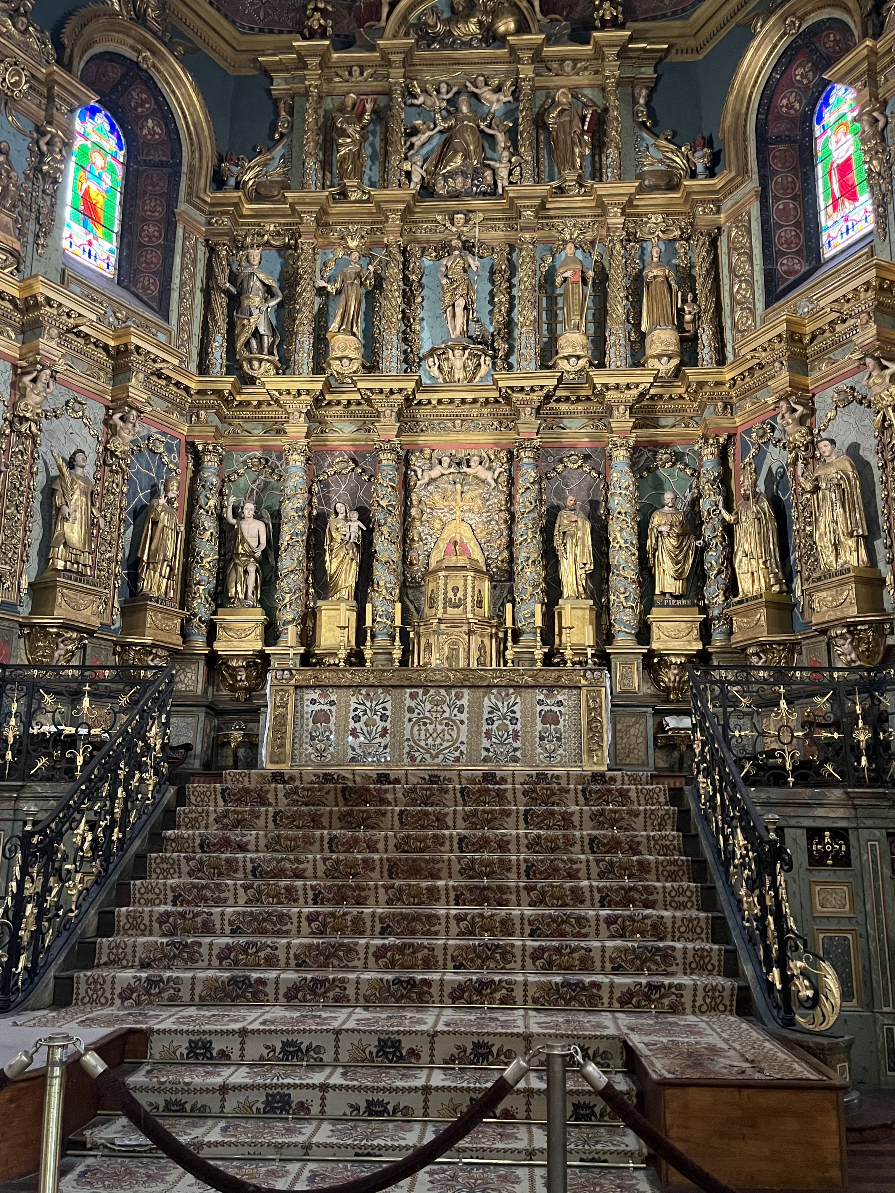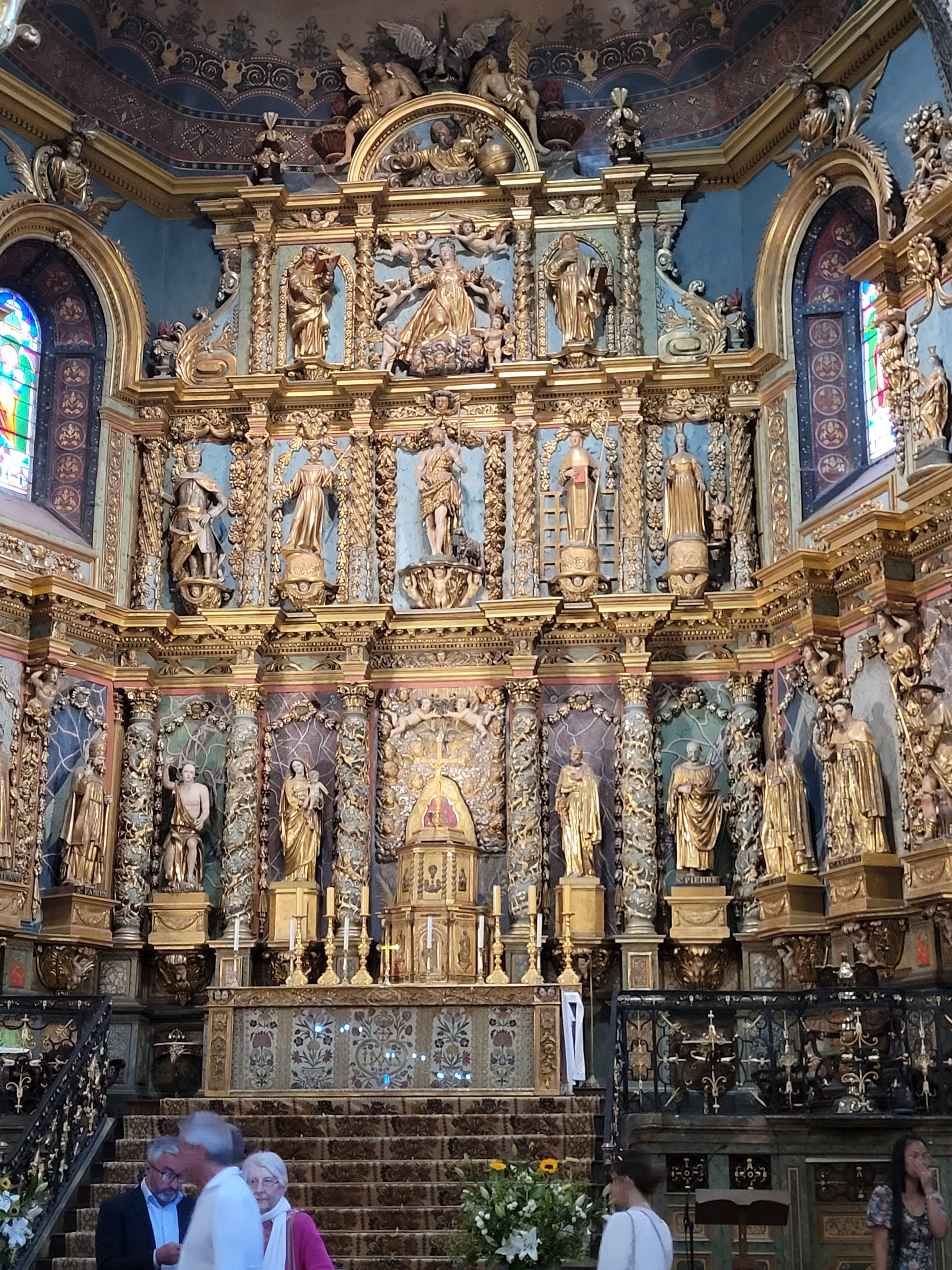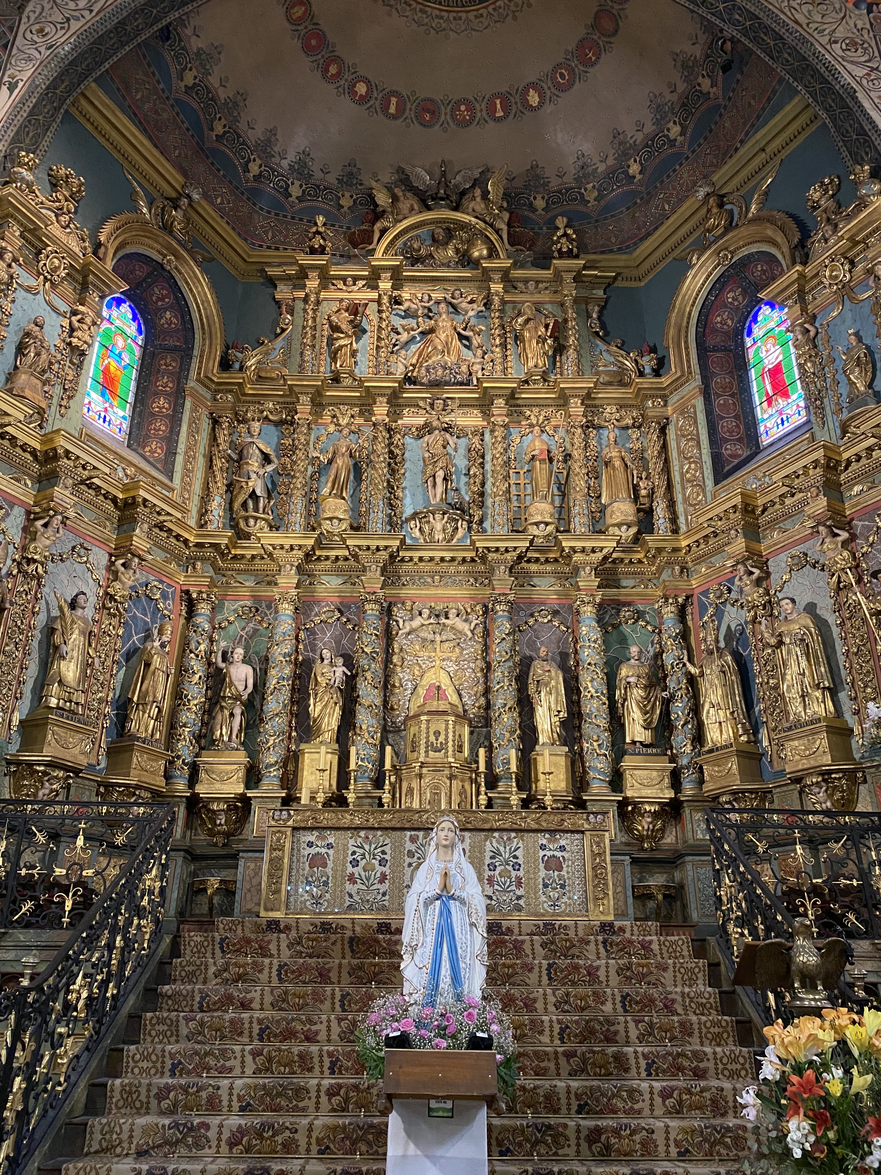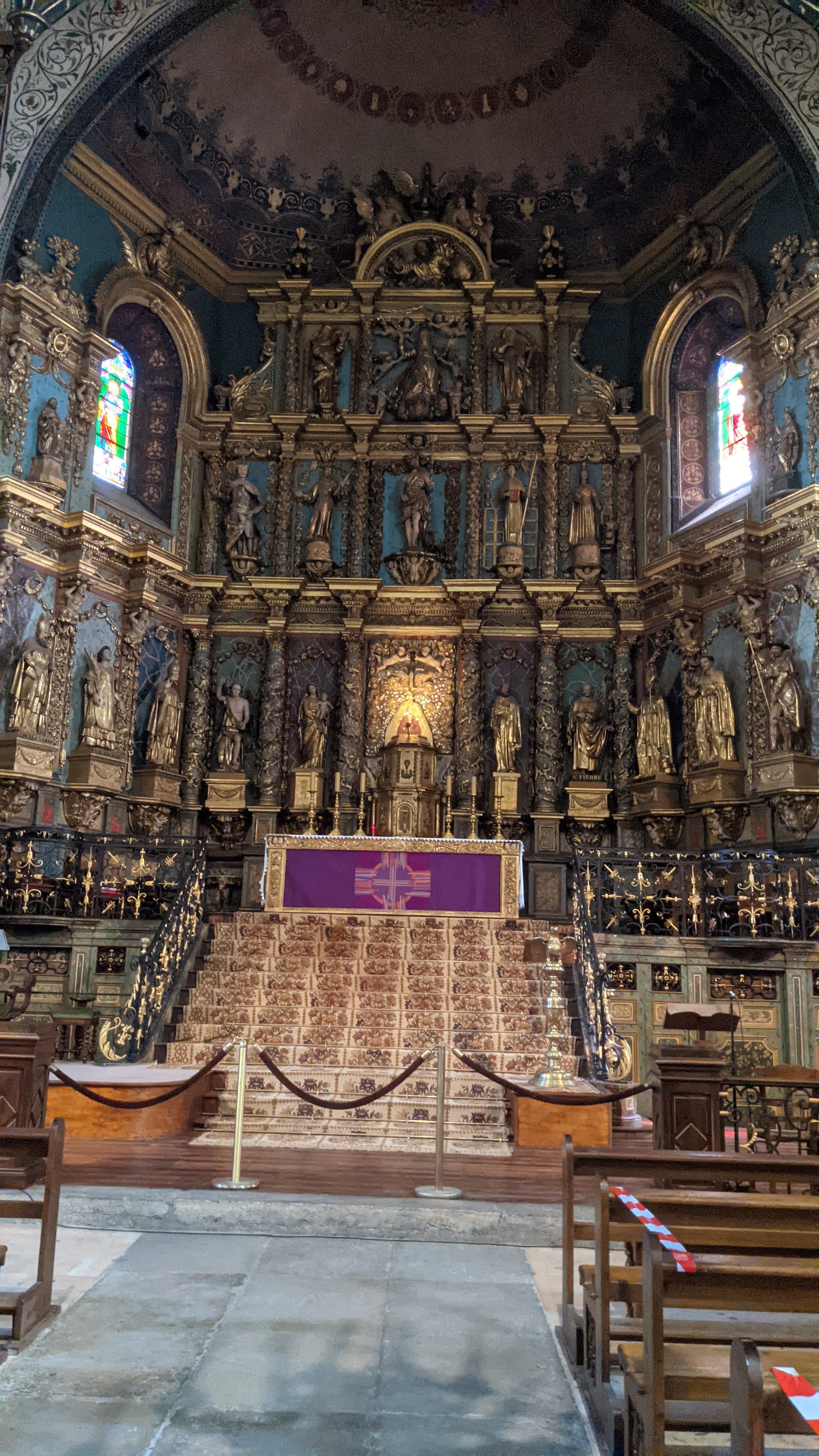 Étonnée et impressionnée par sa richesse: retable en bois doré magnifique avec ses 18 statues, son autel et ses marches, même l'orgue... Je réalise enfin que c'est dans cette église que Louis XIV s'est marié 😅...