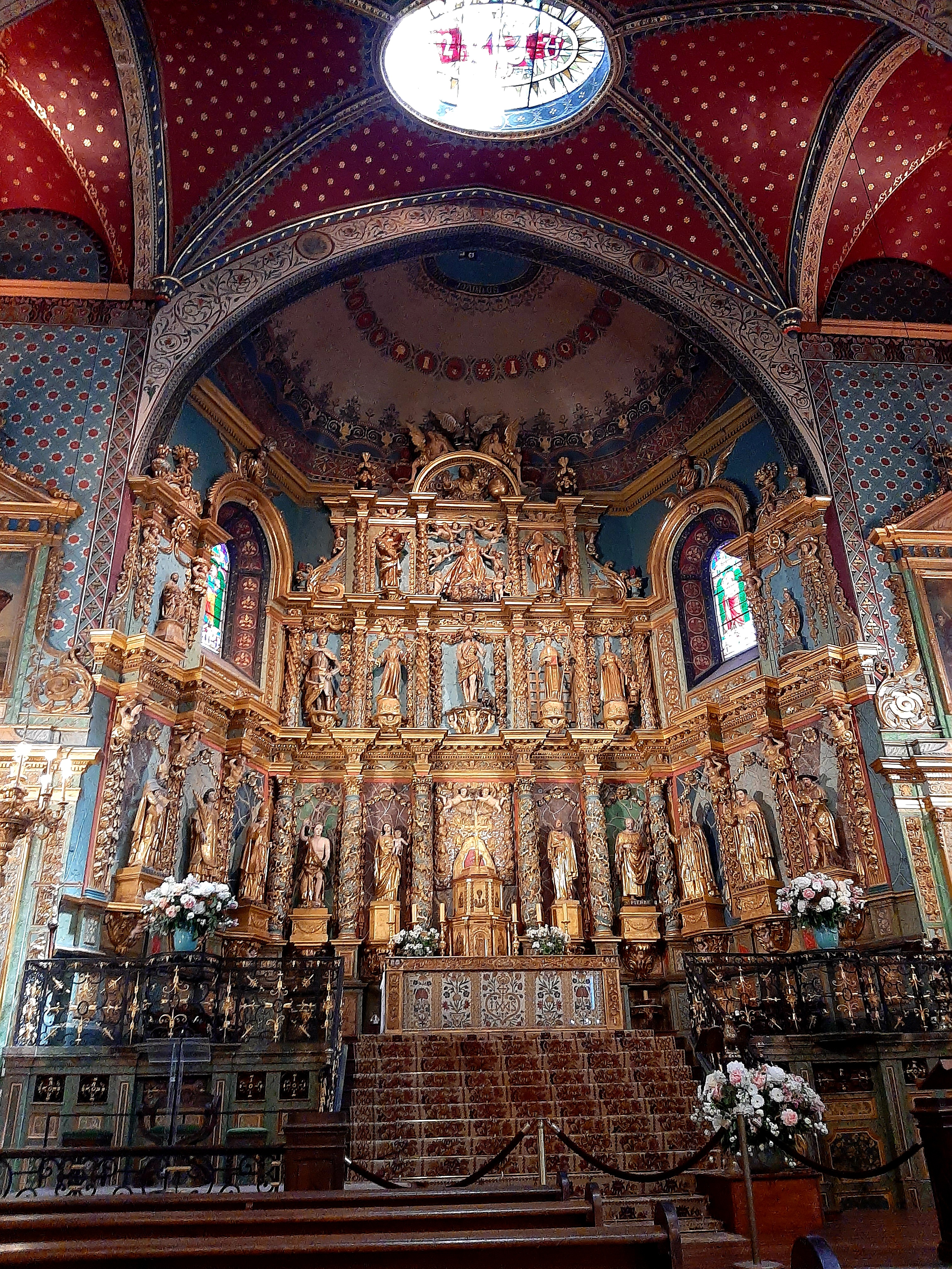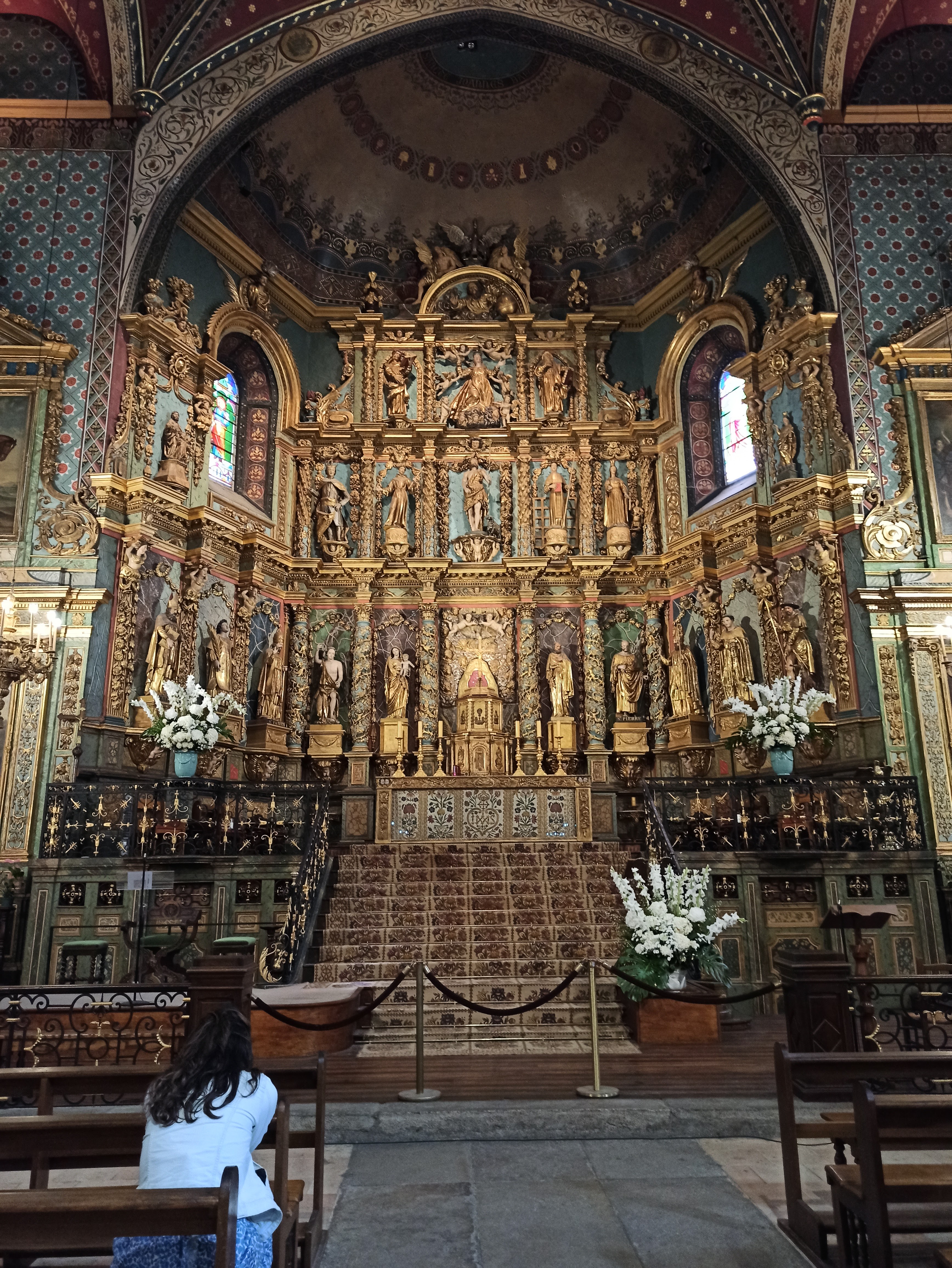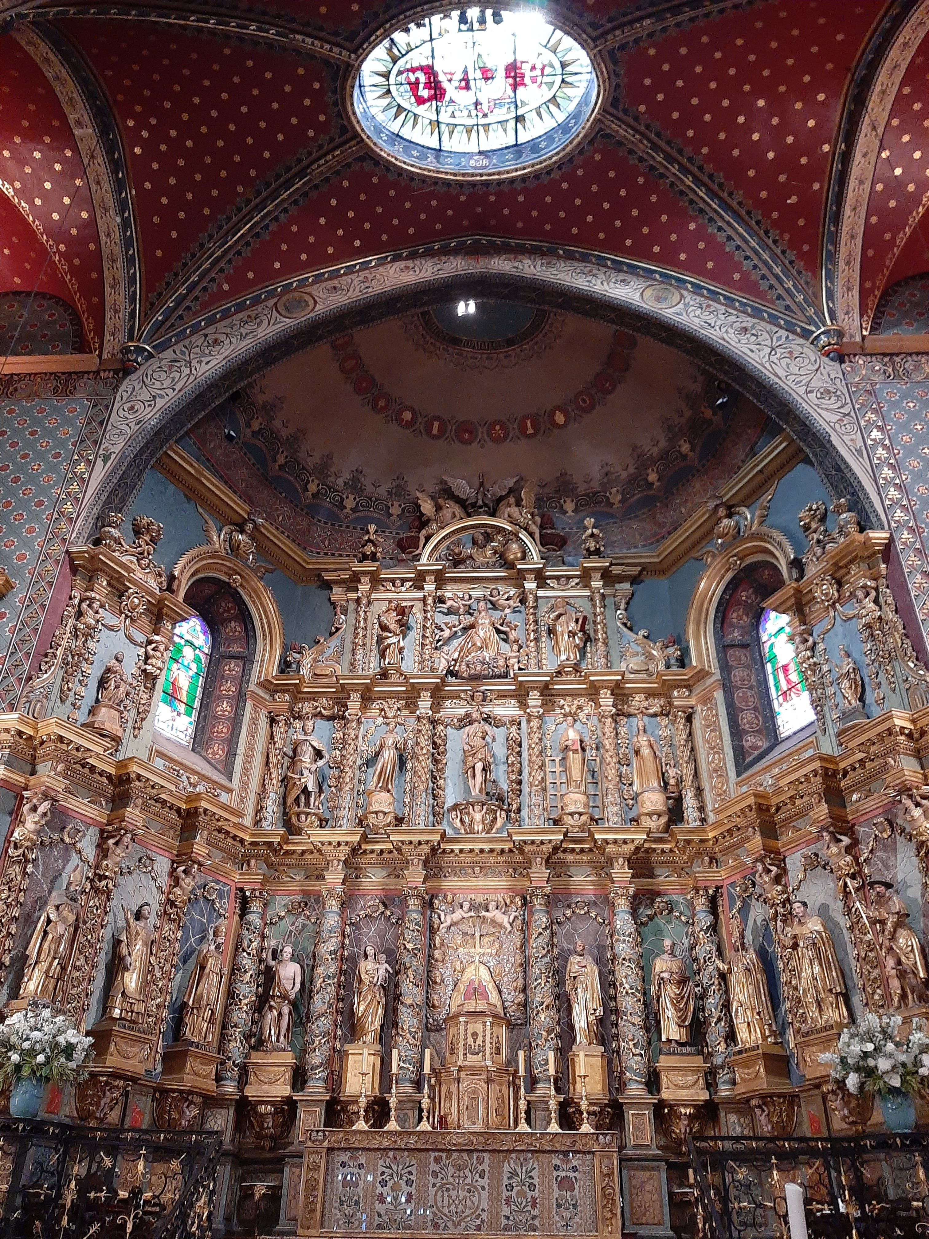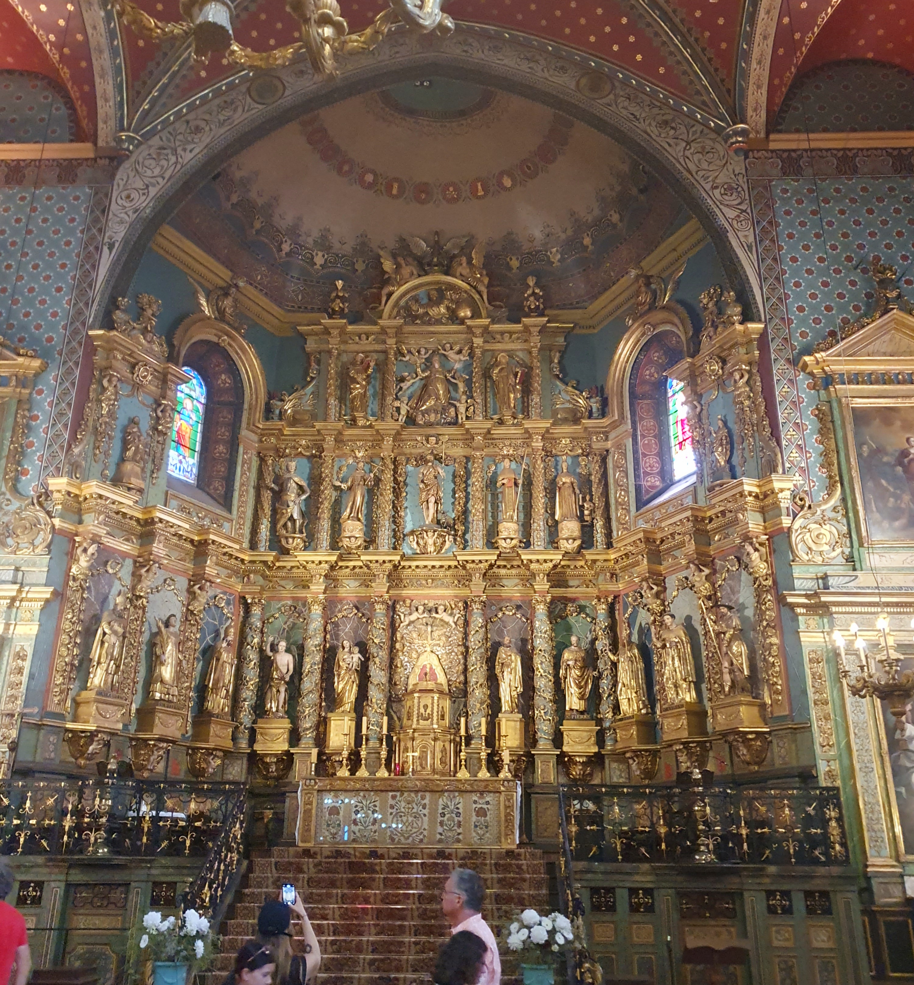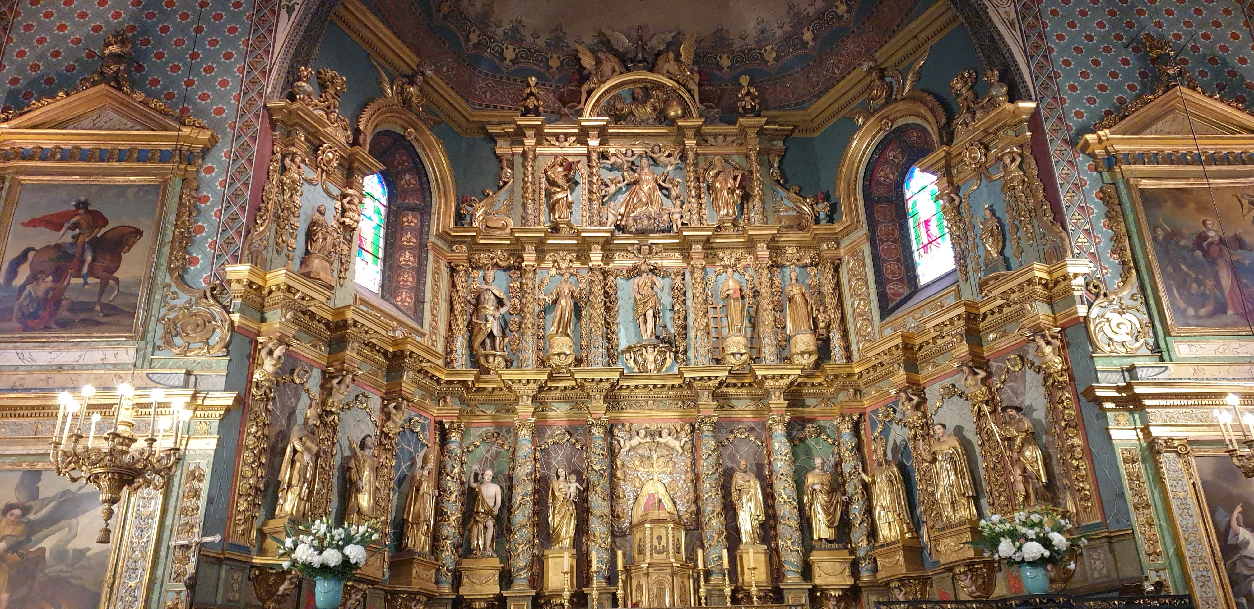 Étonnée et impressionnée par sa richesse: retable en bois doré magnifique avec ses 18 statues, son autel et ses marches, même l'orgue... Je réalise enfin que c'est dans cette église que Louis XIV s'est marié 😅...