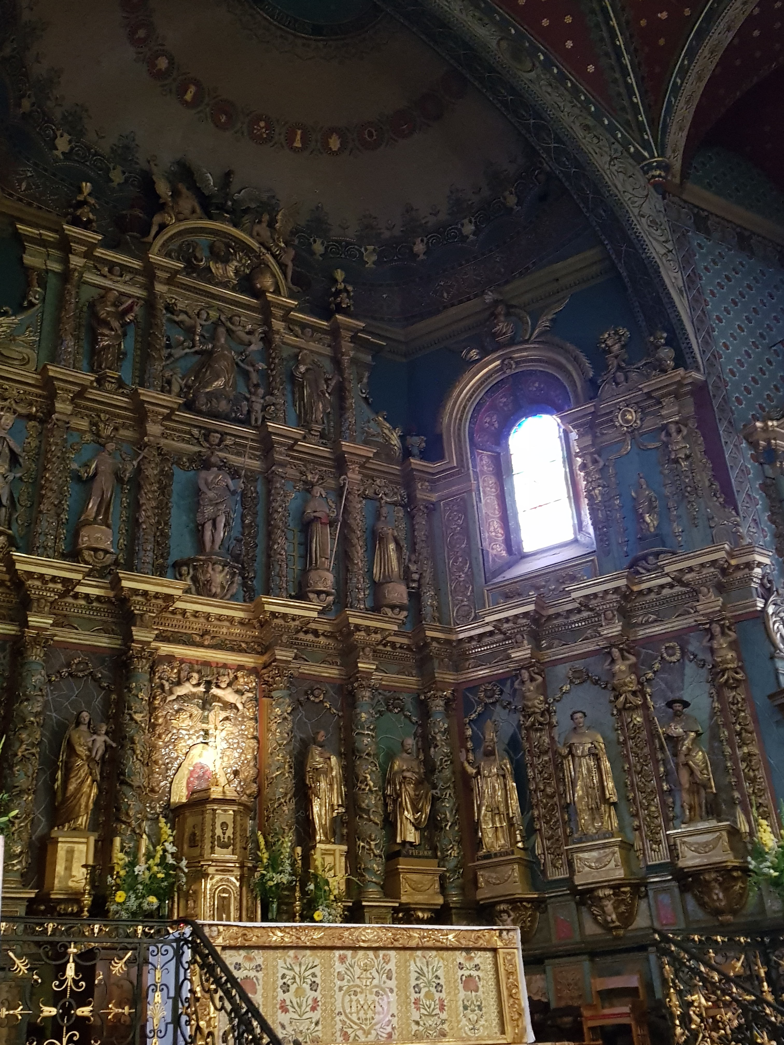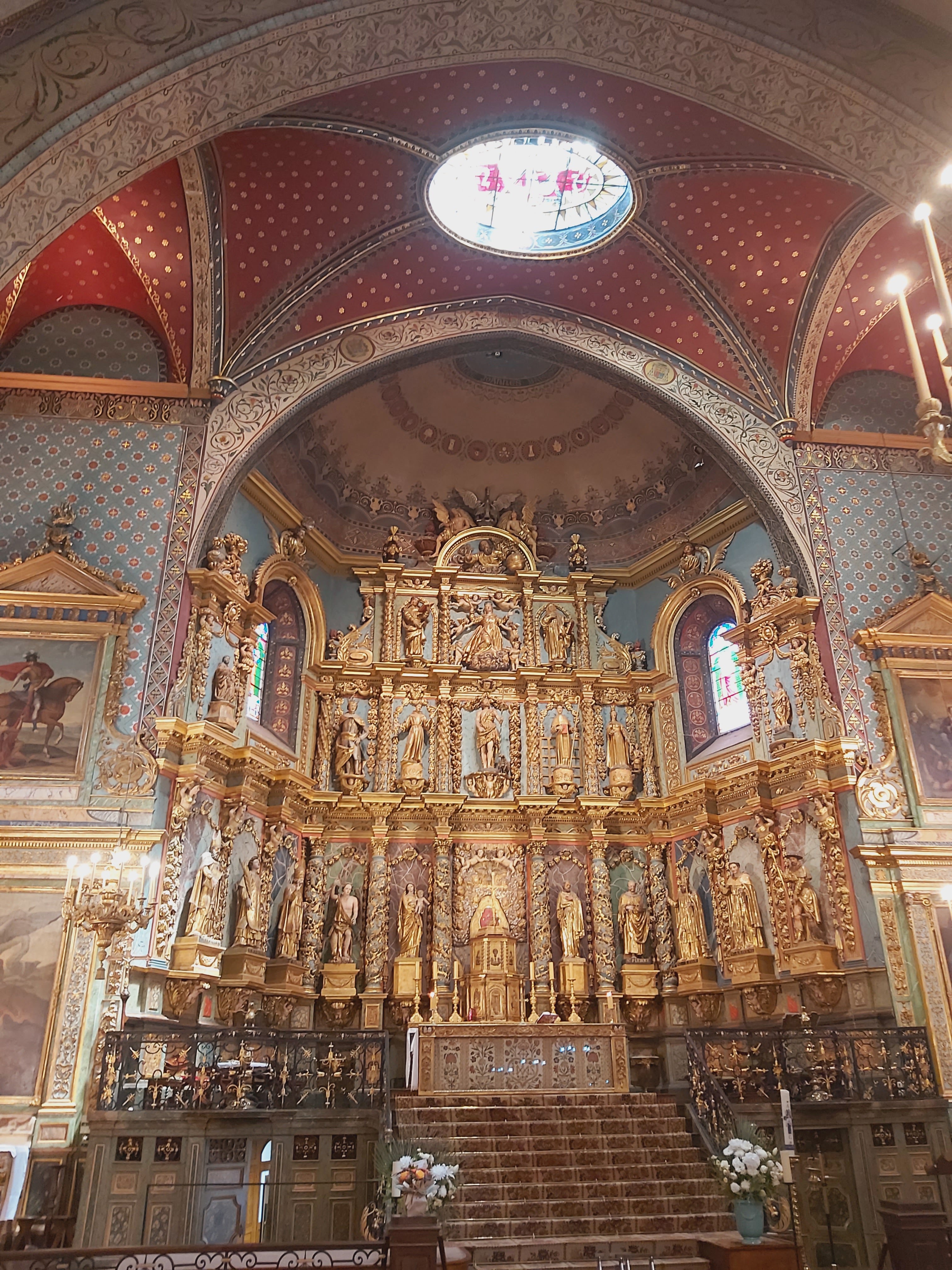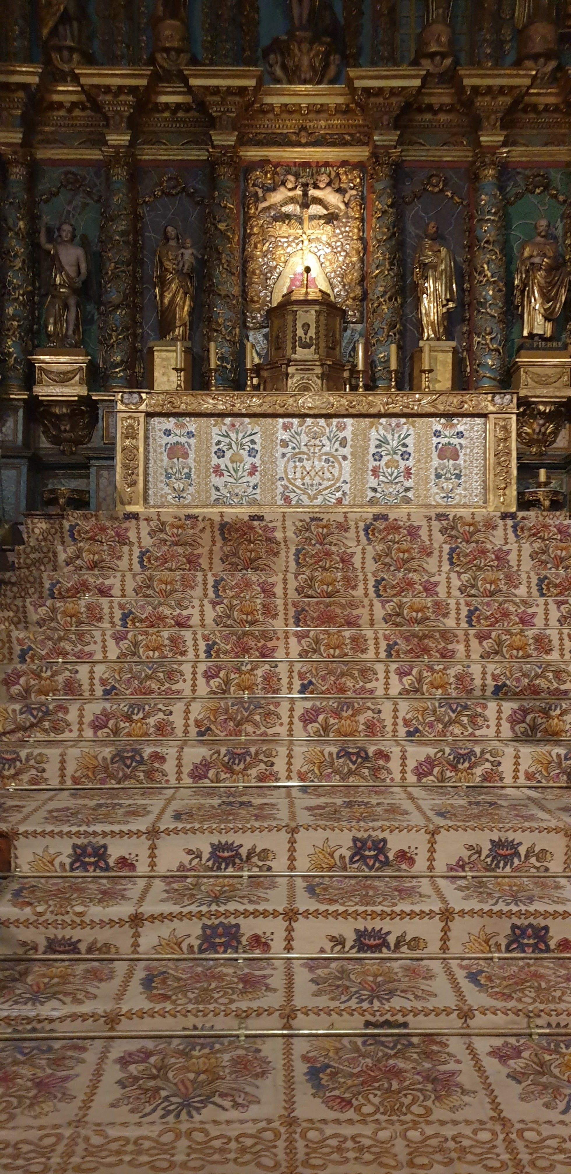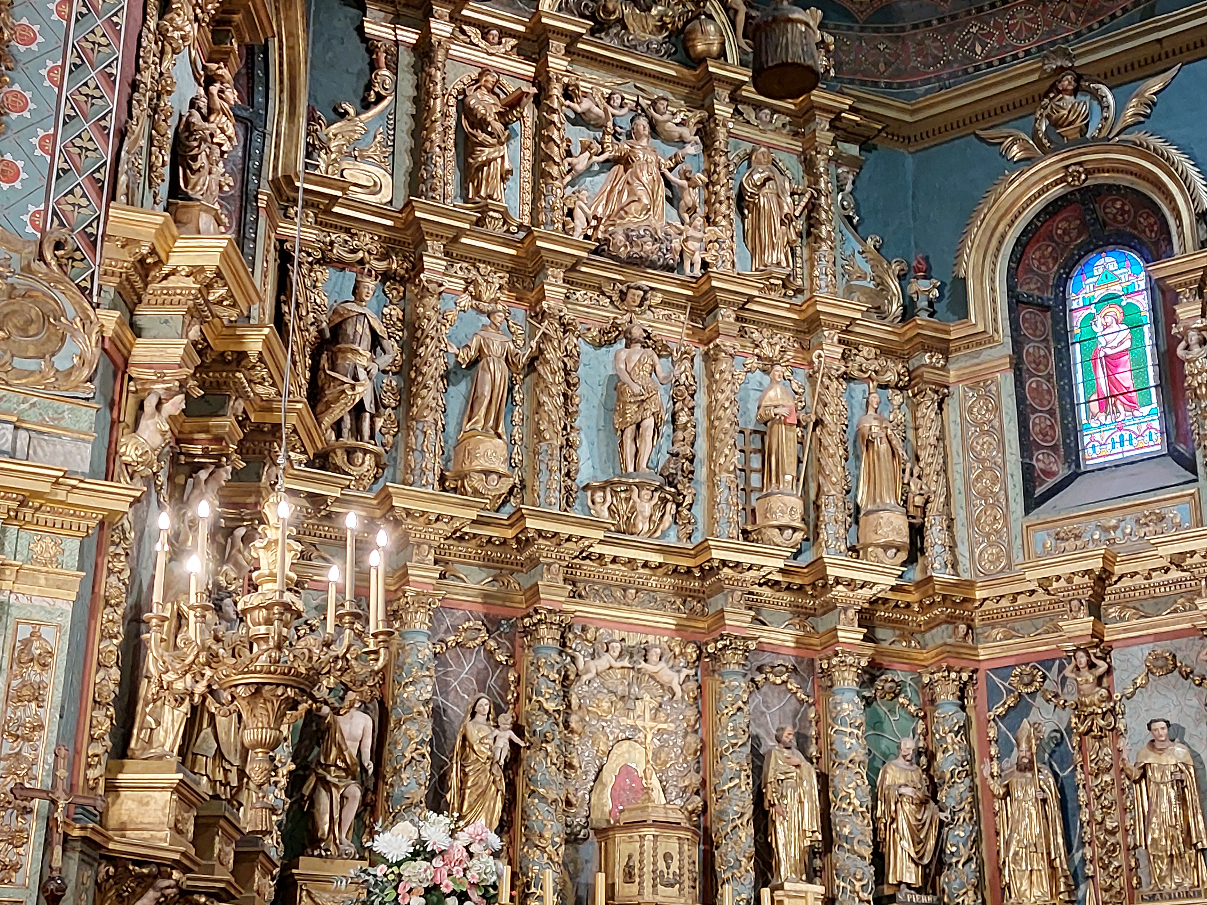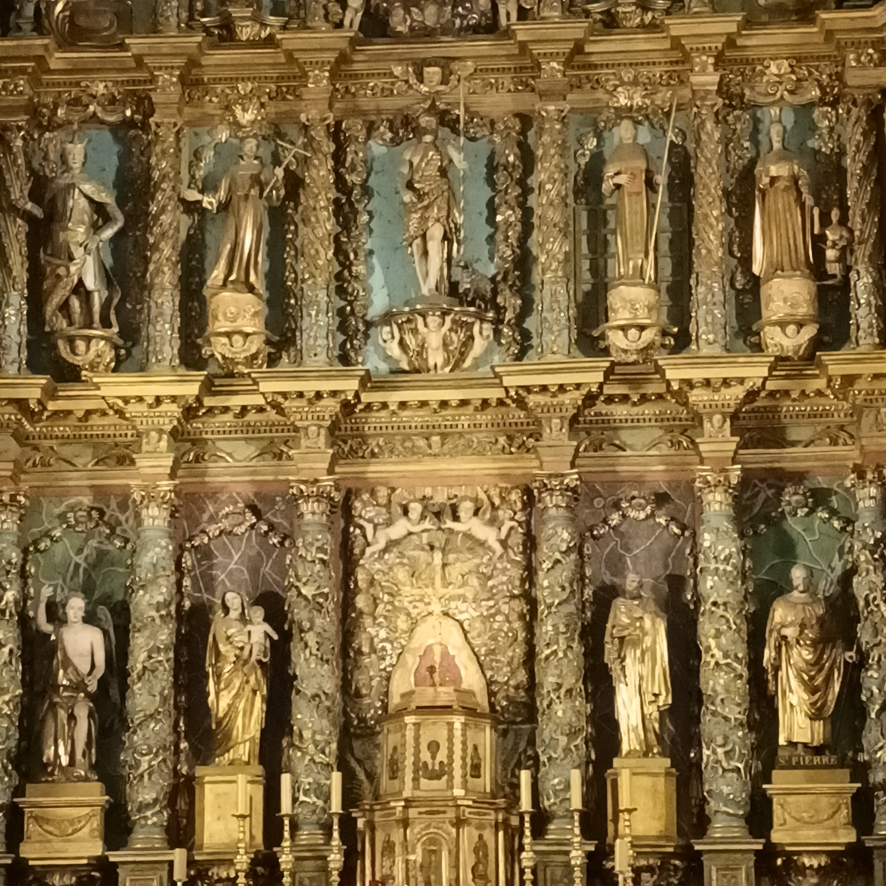 Étonnée et impressionnée par sa richesse: retable en bois doré magnifique avec ses 18 statues, son autel et ses marches, même l'orgue... Je réalise enfin que c'est dans cette église que Louis XIV s'est marié 😅...