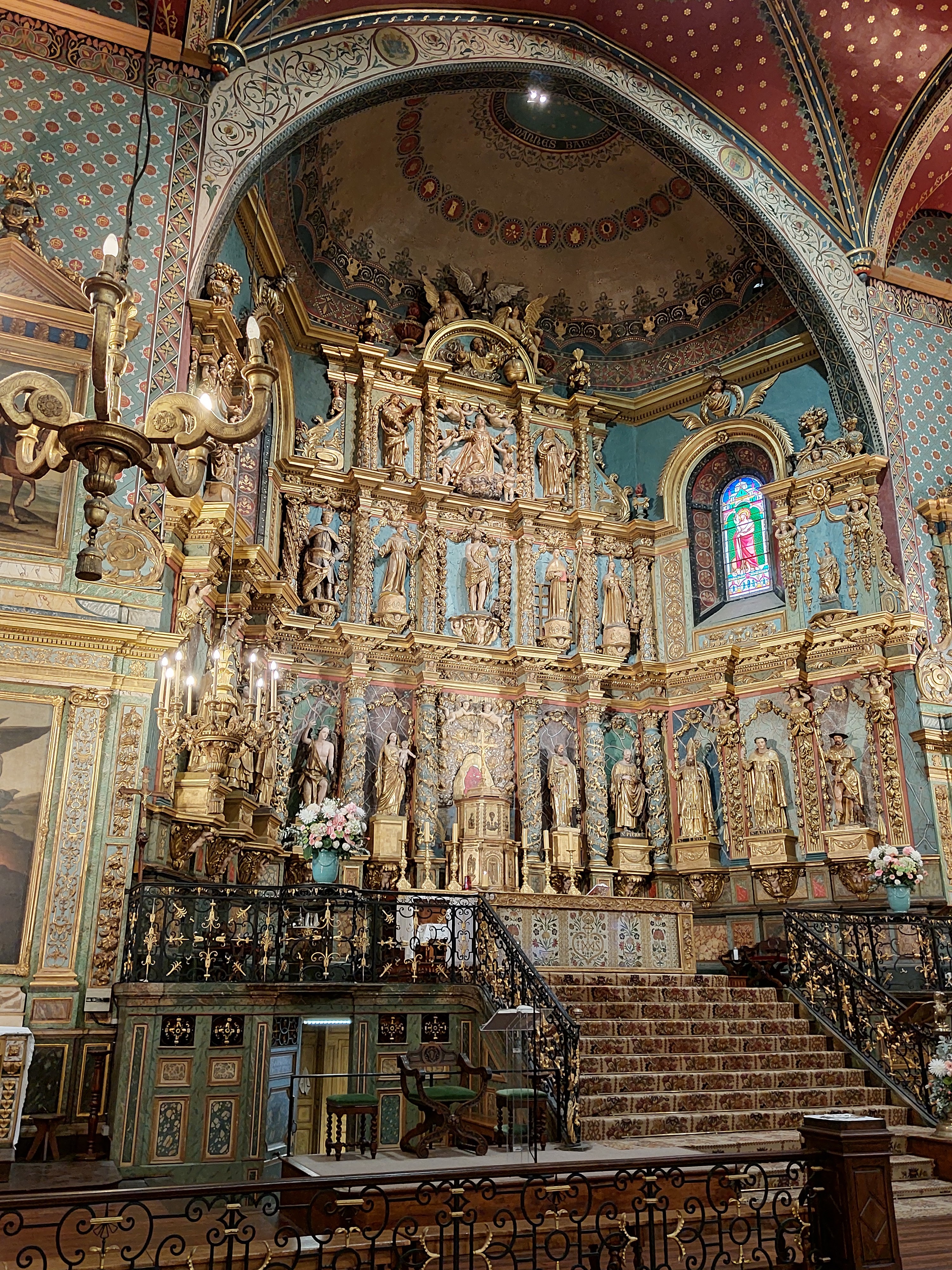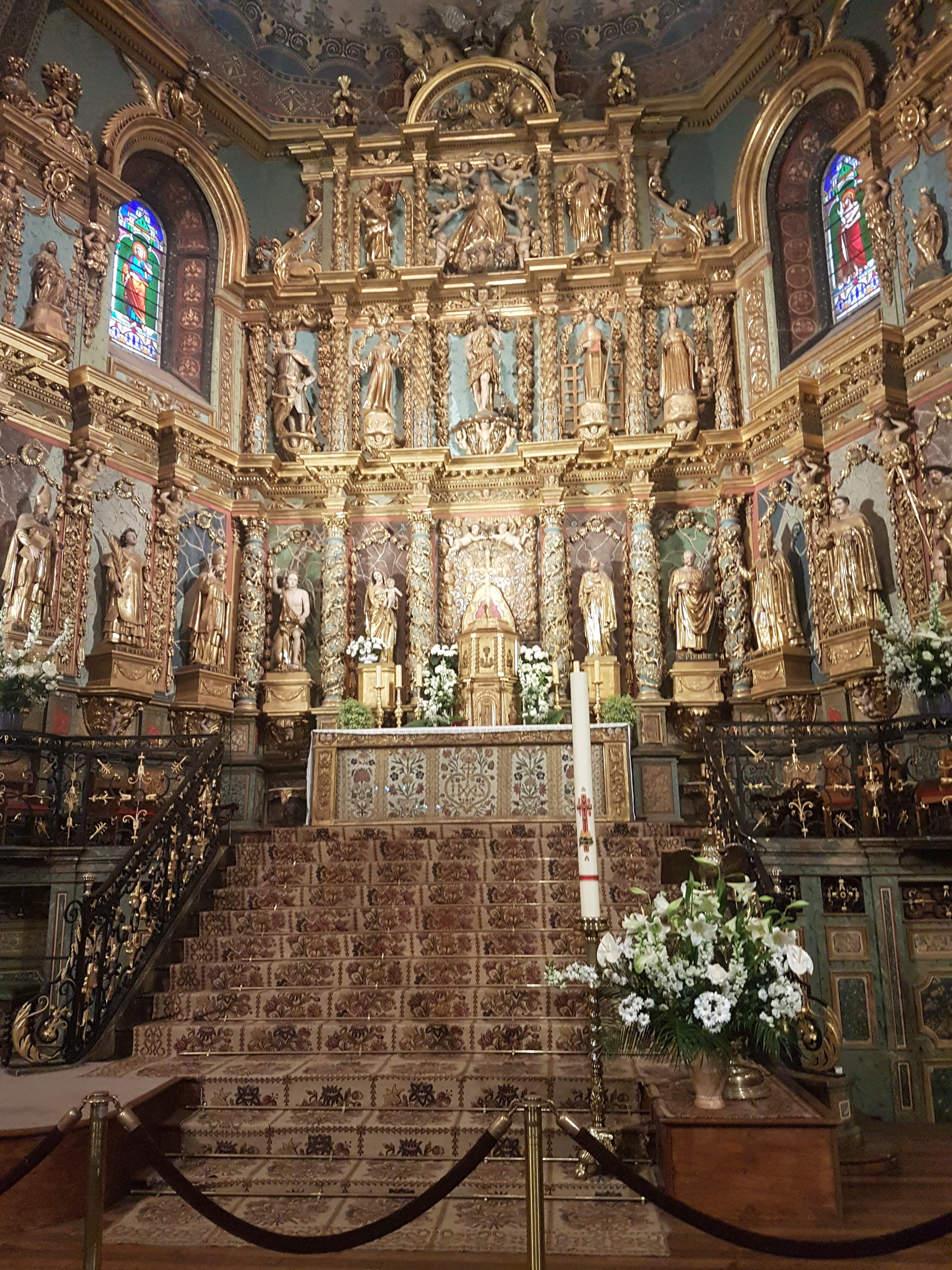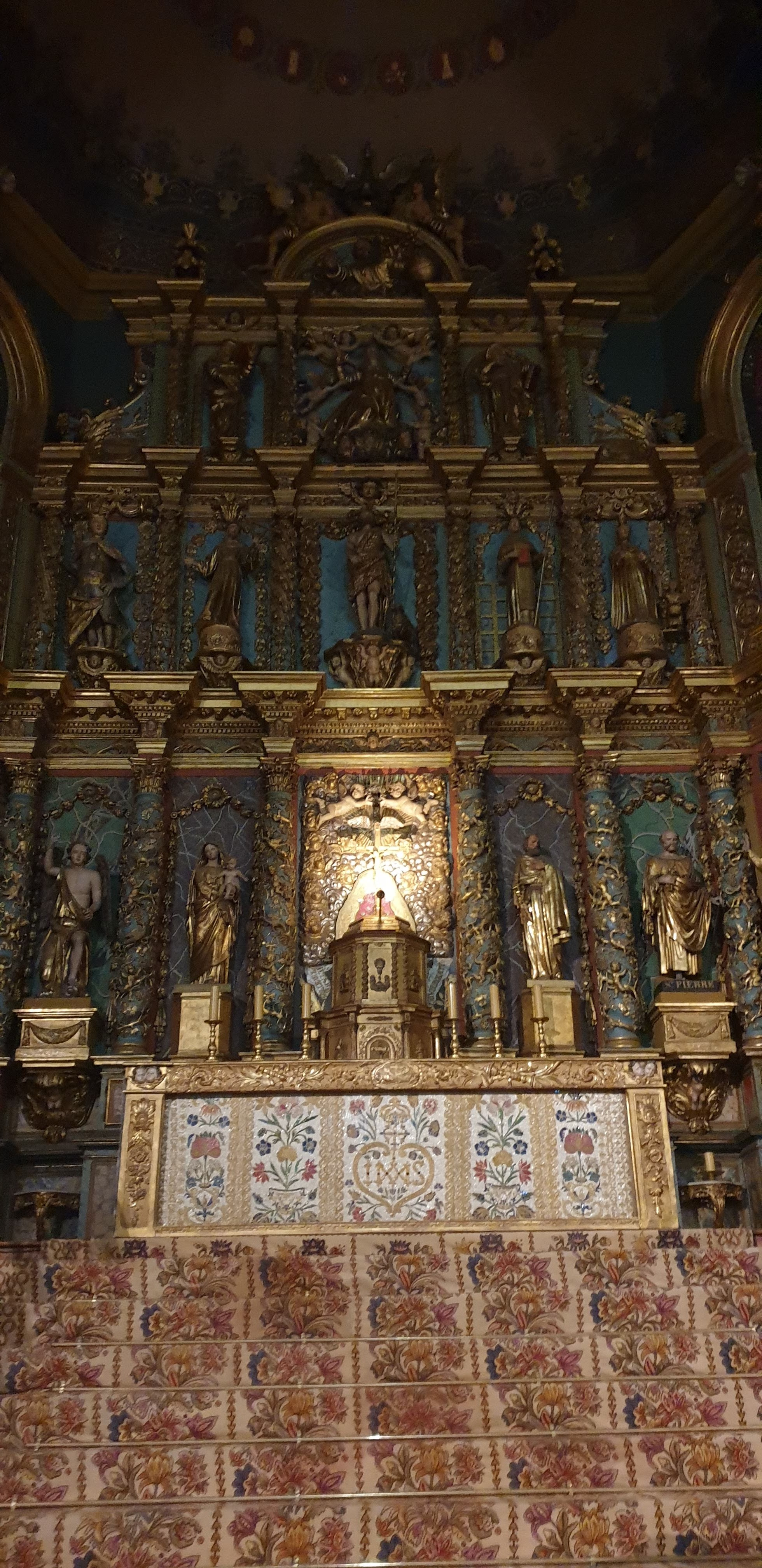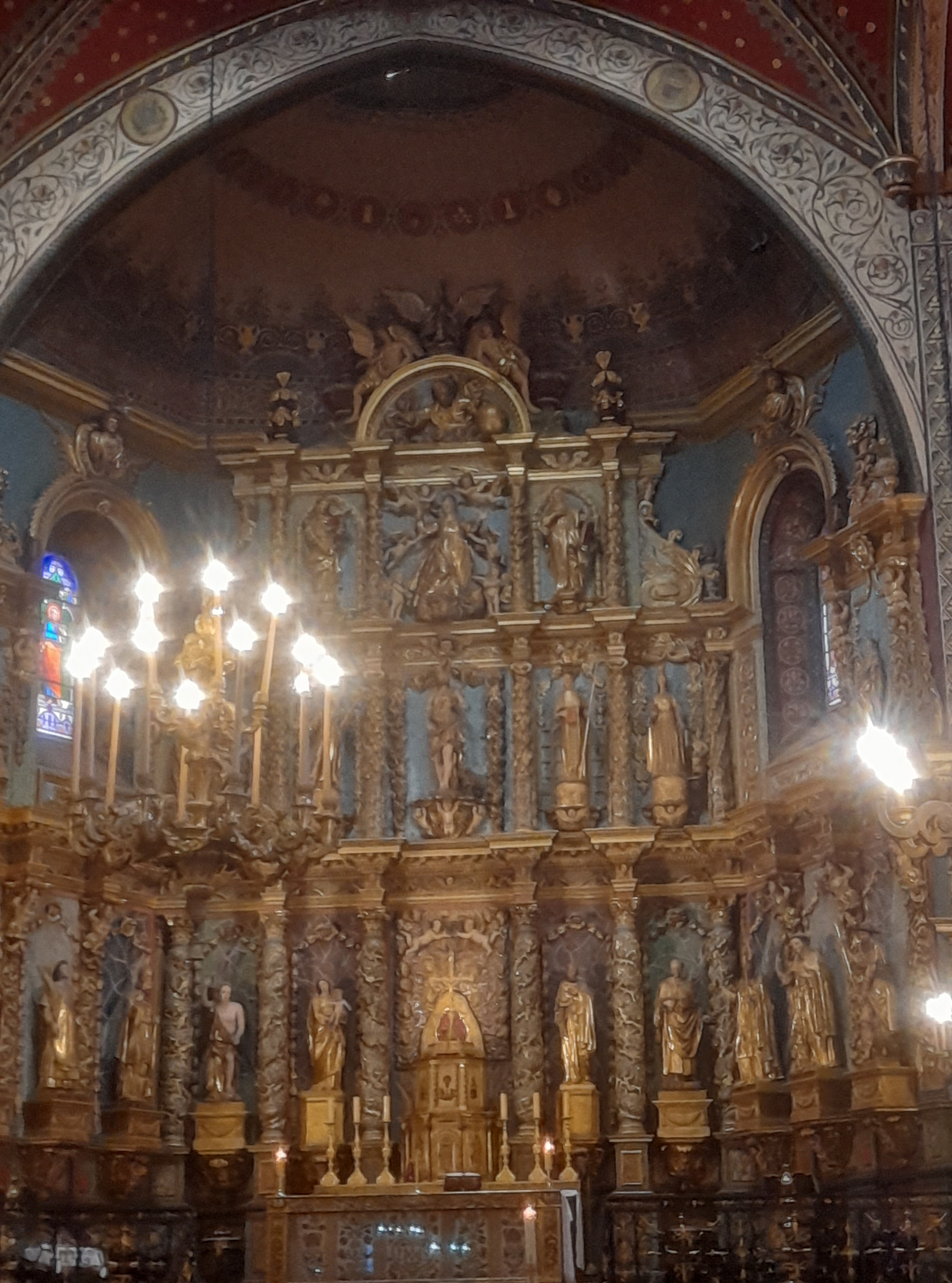 Étonnée et impressionnée par sa richesse: retable en bois doré magnifique avec ses 18 statues, son autel et ses marches, même l'orgue... Je réalise enfin que c'est dans cette église que Louis XIV s'est marié 😅...