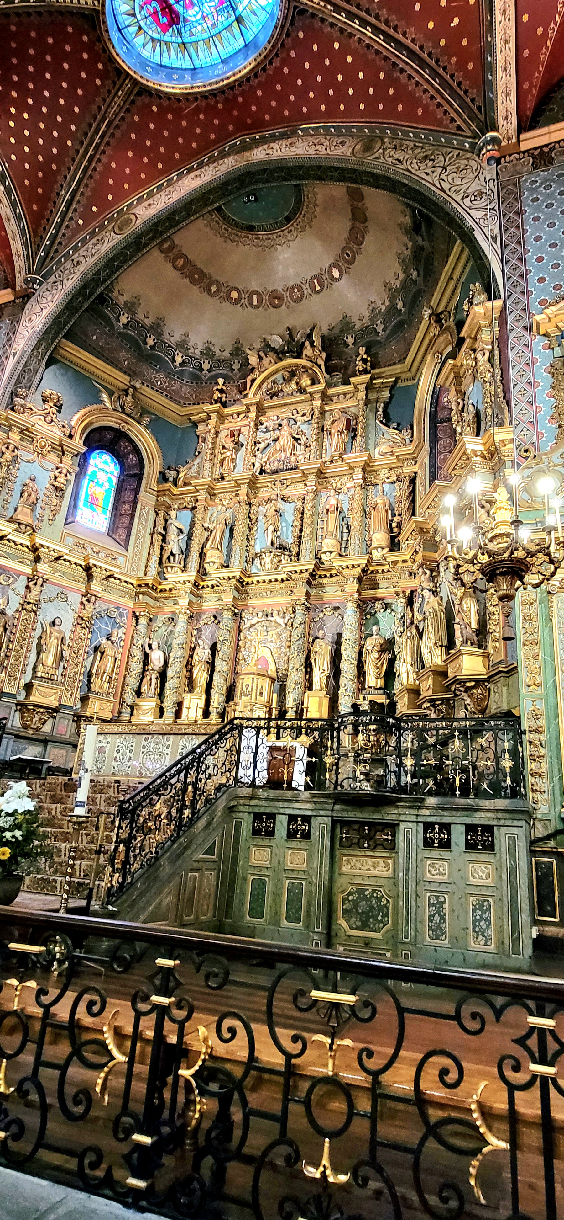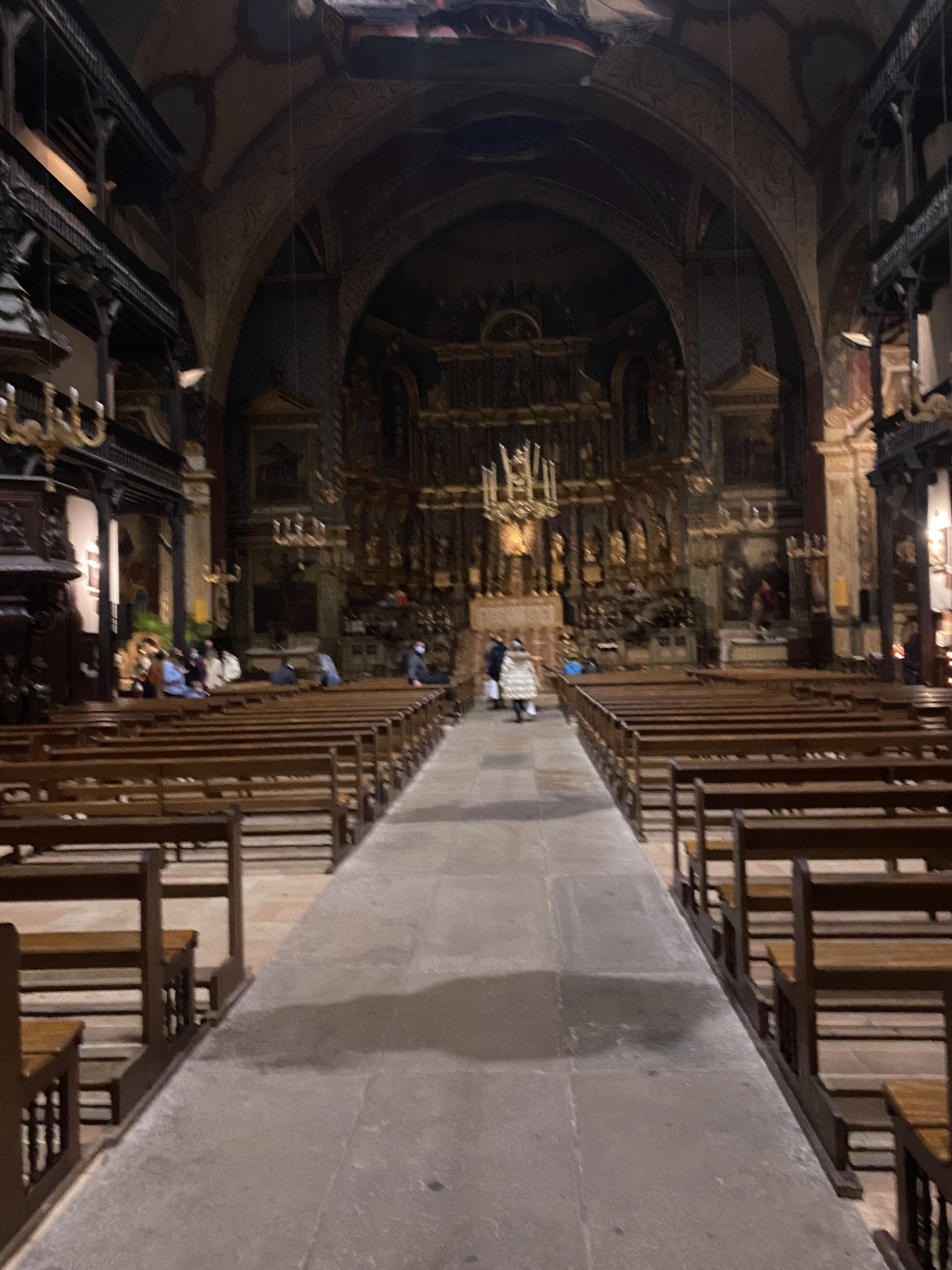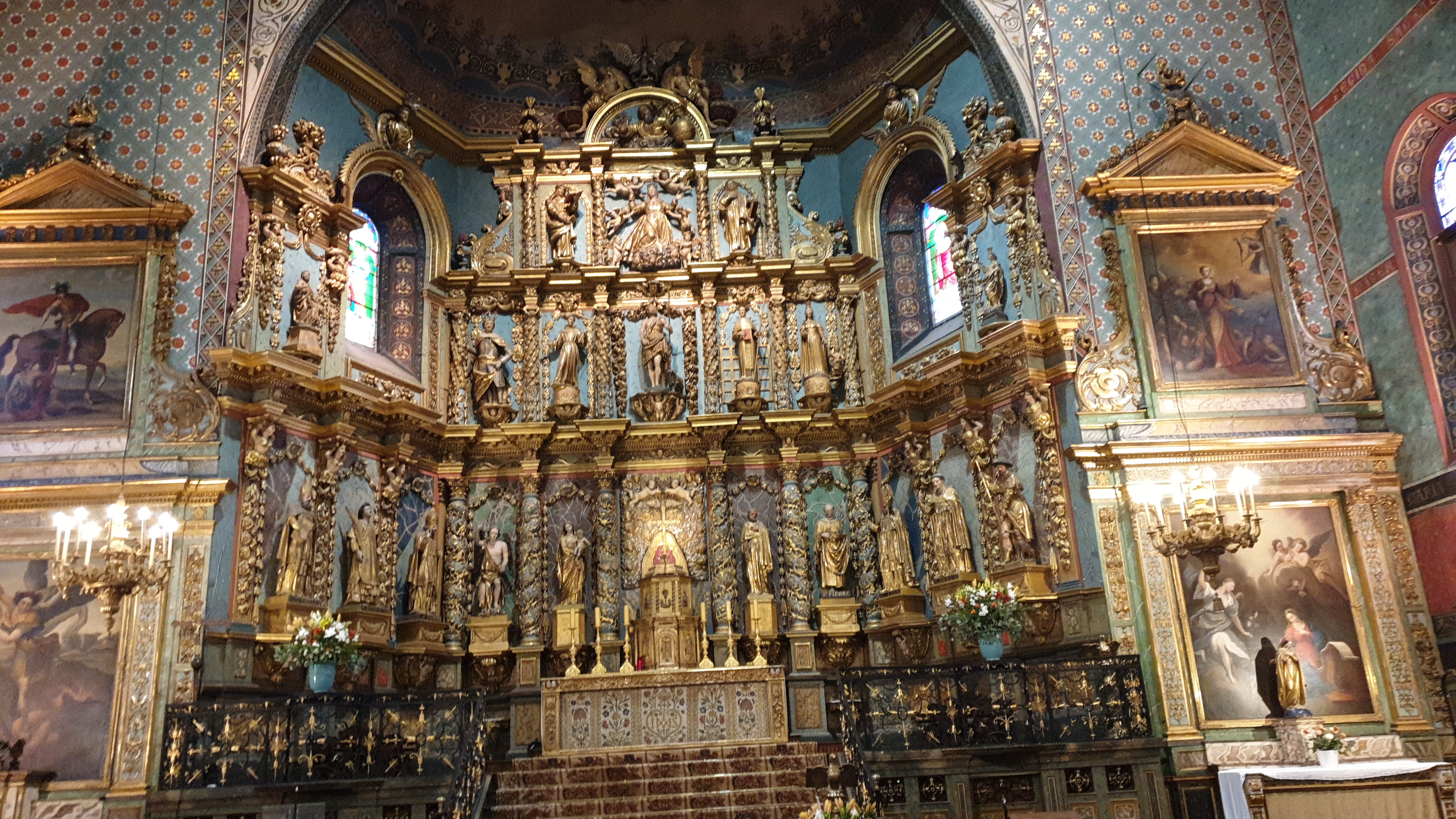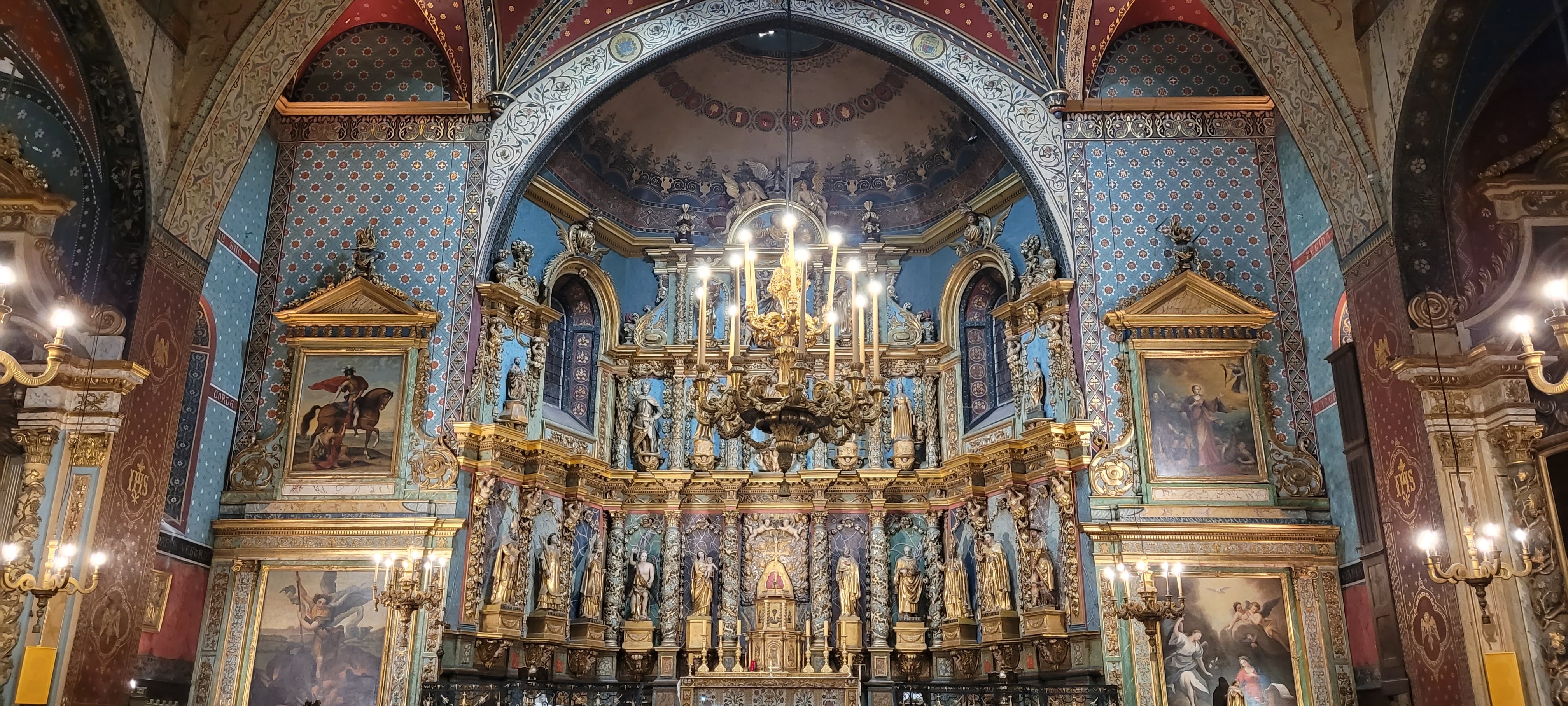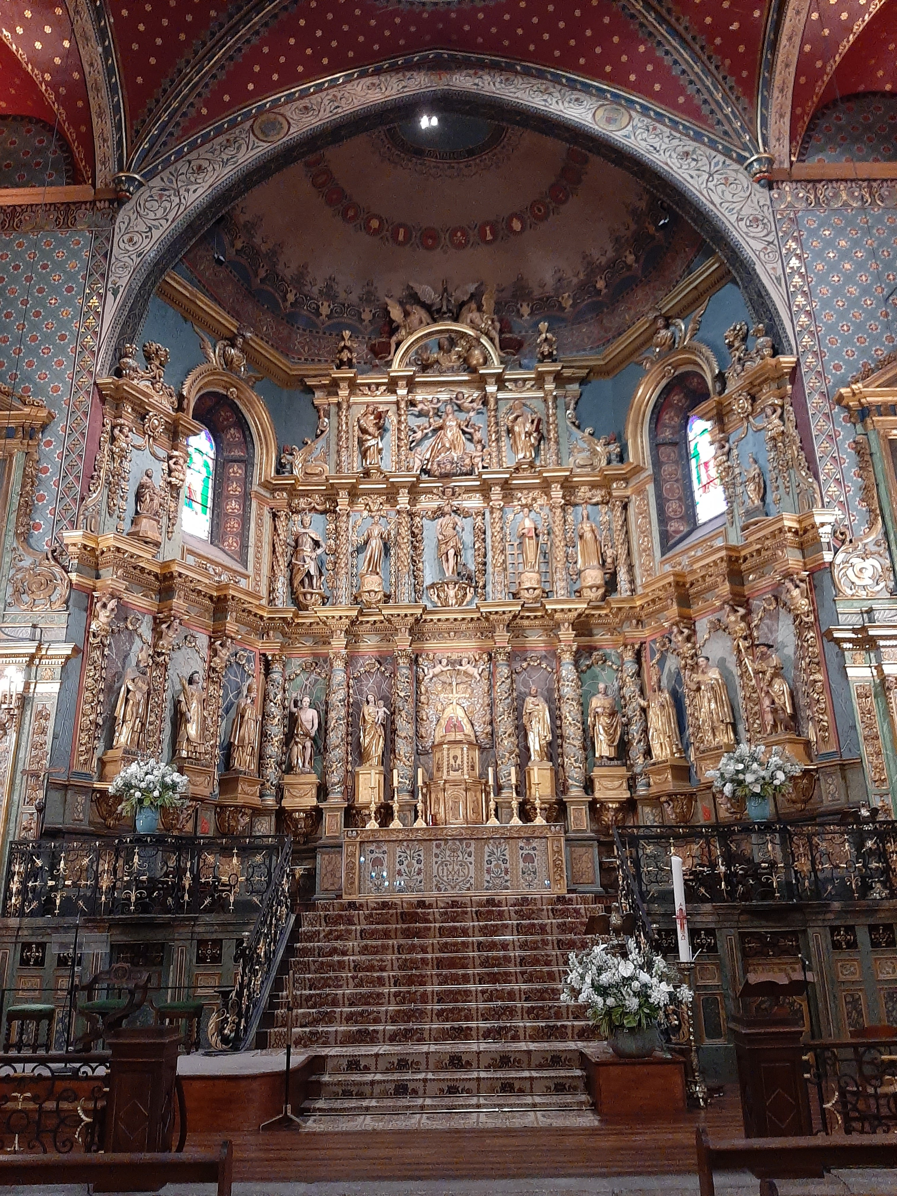 Étonnée et impressionnée par sa richesse: retable en bois doré magnifique avec ses 18 statues, son autel et ses marches, même l'orgue... Je réalise enfin que c'est dans cette église que Louis XIV s'est marié 😅...