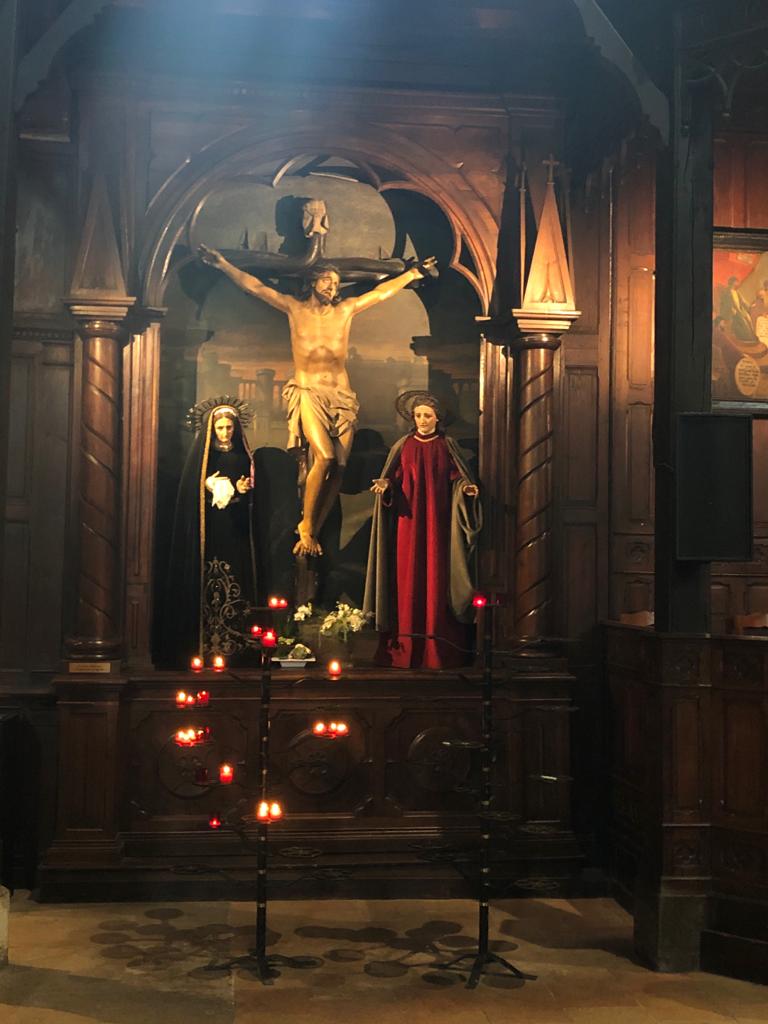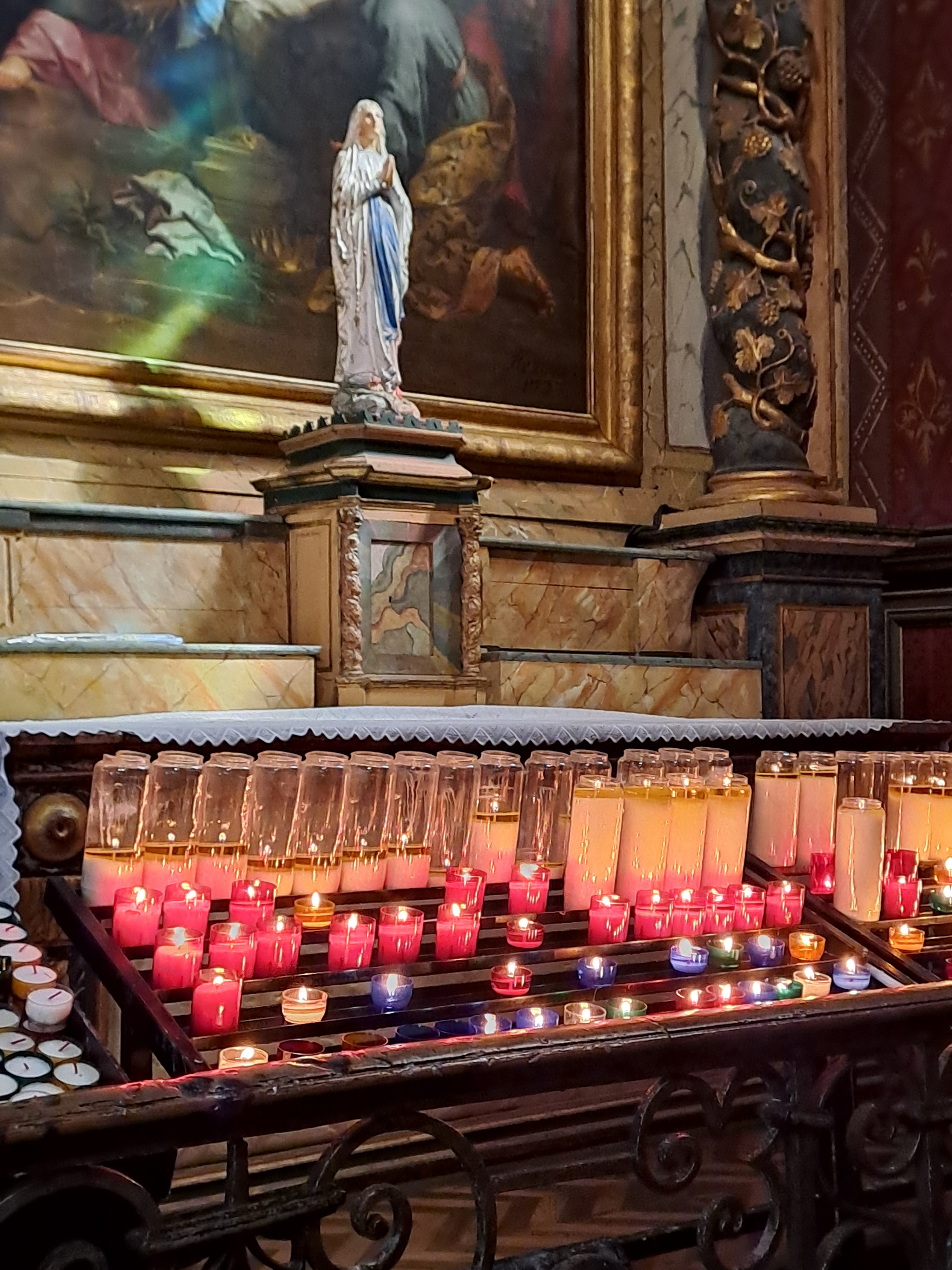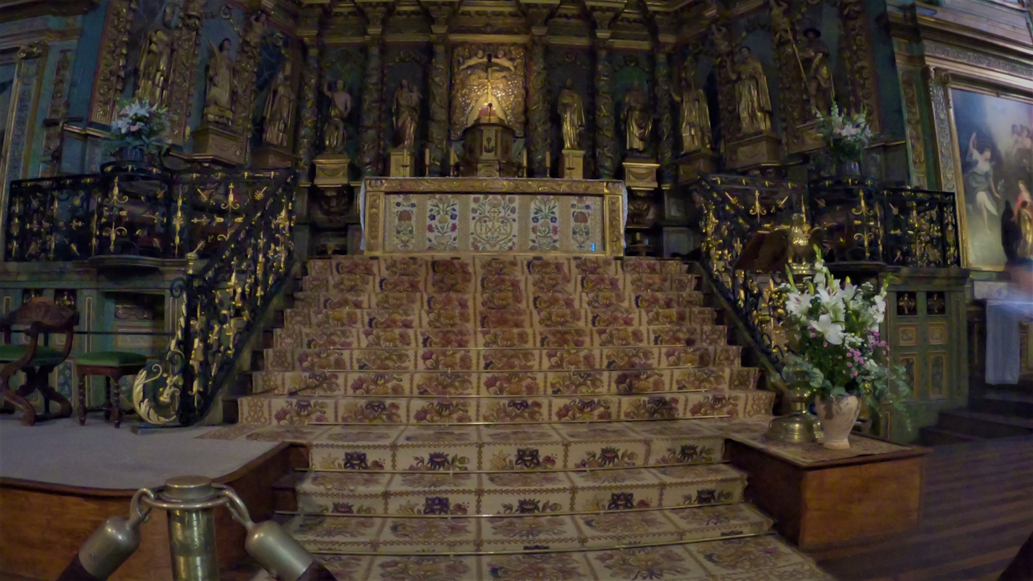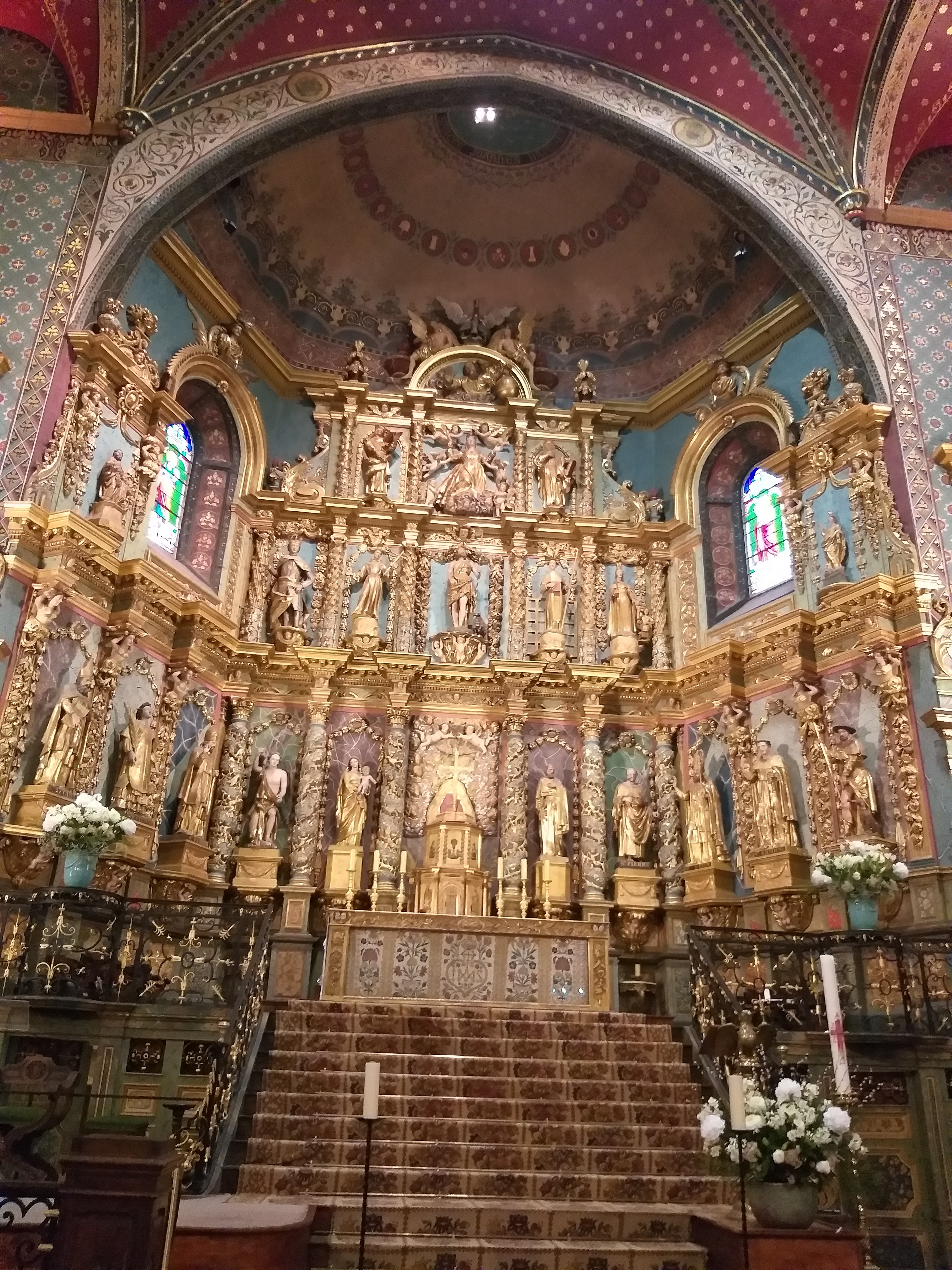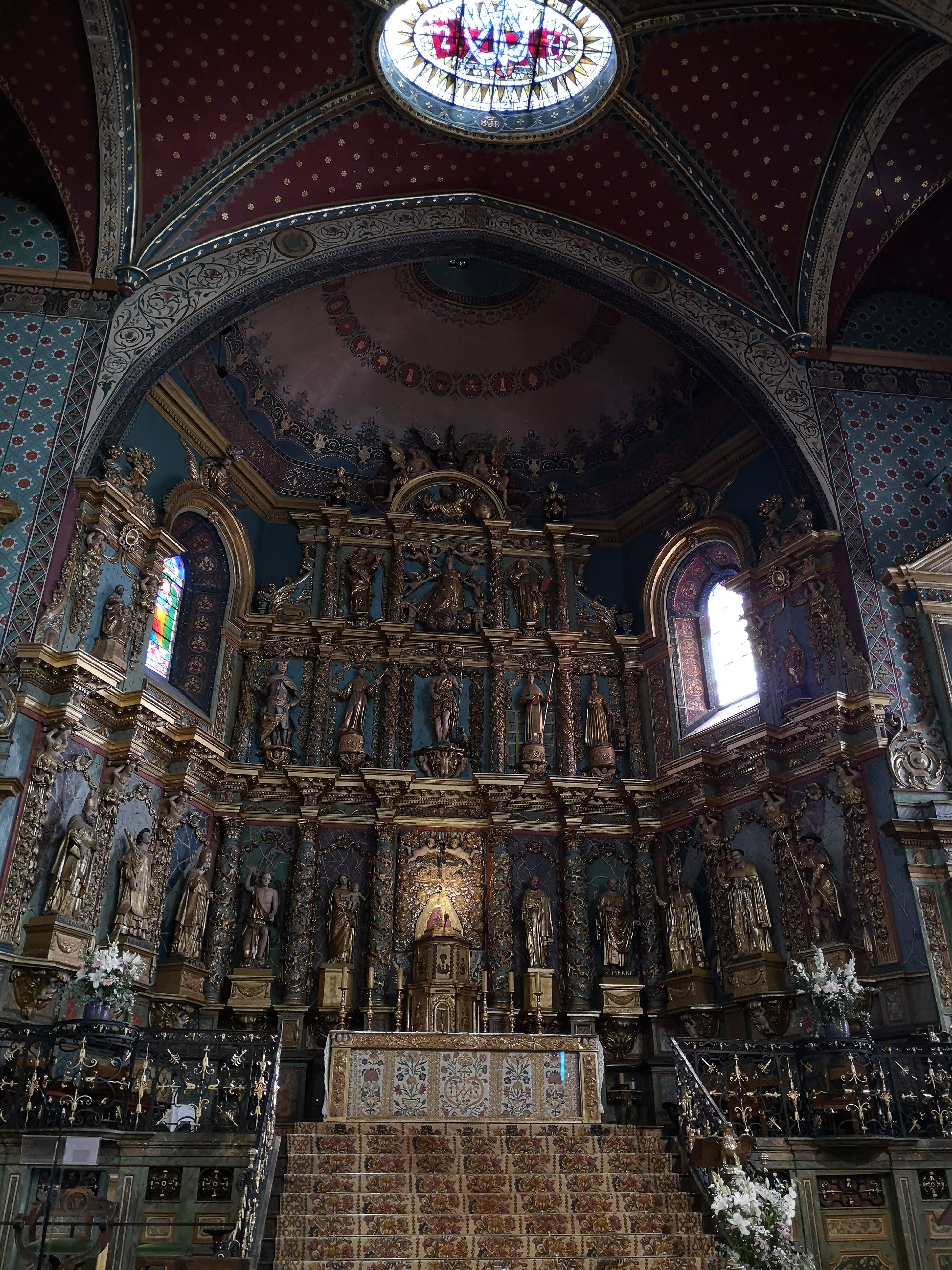 Étonnée et impressionnée par sa richesse: retable en bois doré magnifique avec ses 18 statues, son autel et ses marches, même l'orgue... Je réalise enfin que c'est dans cette église que Louis XIV s'est marié 😅...