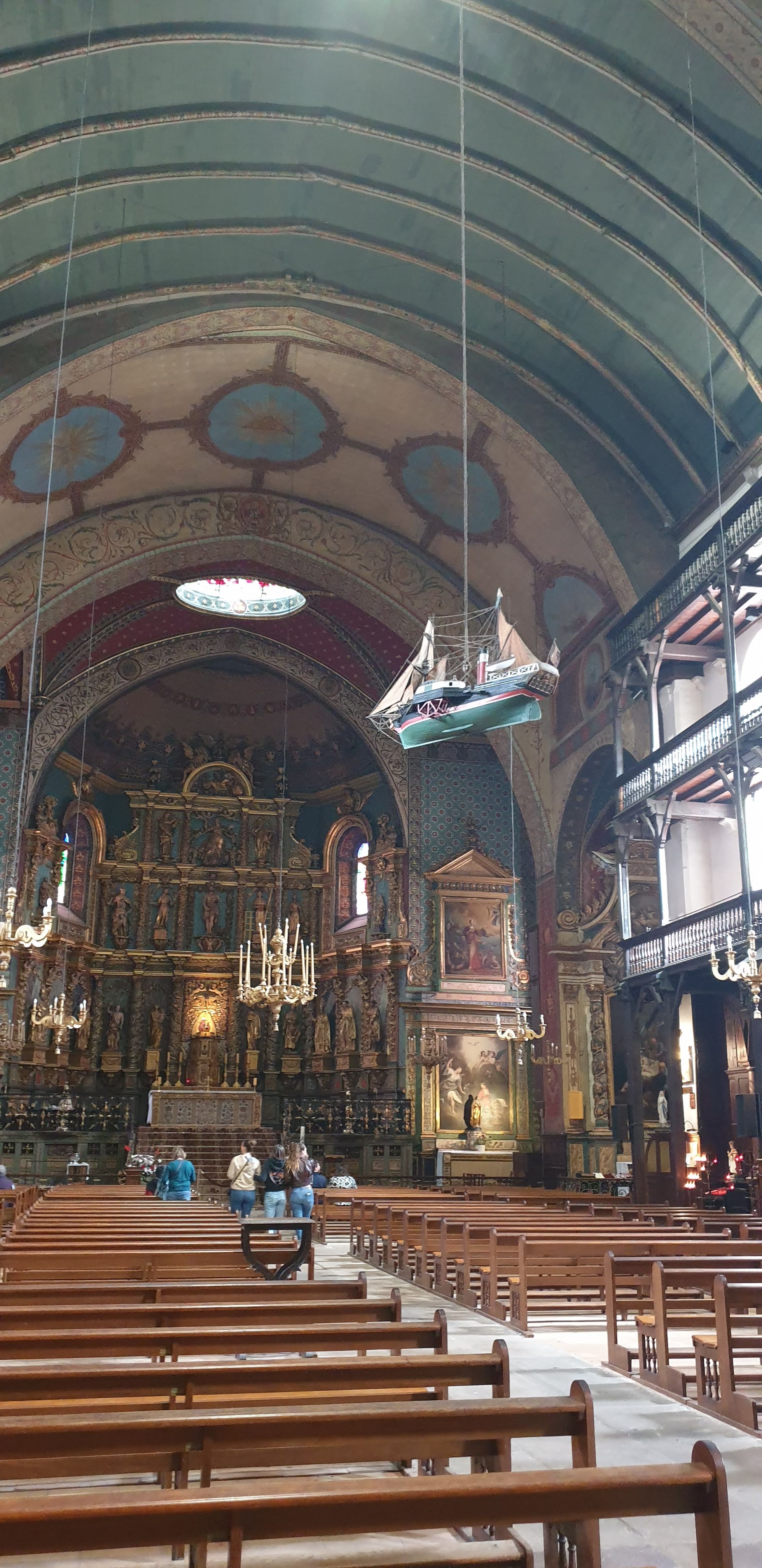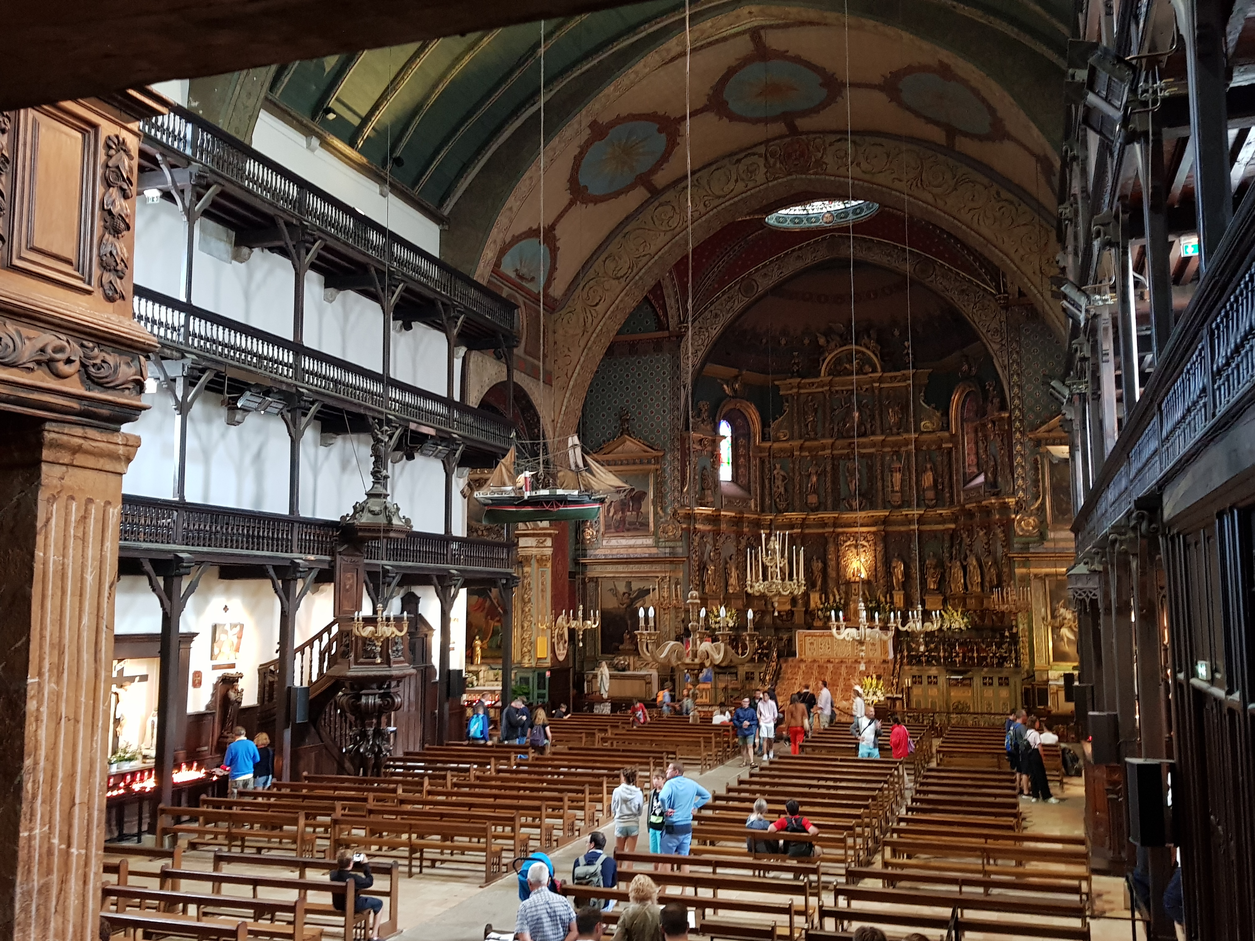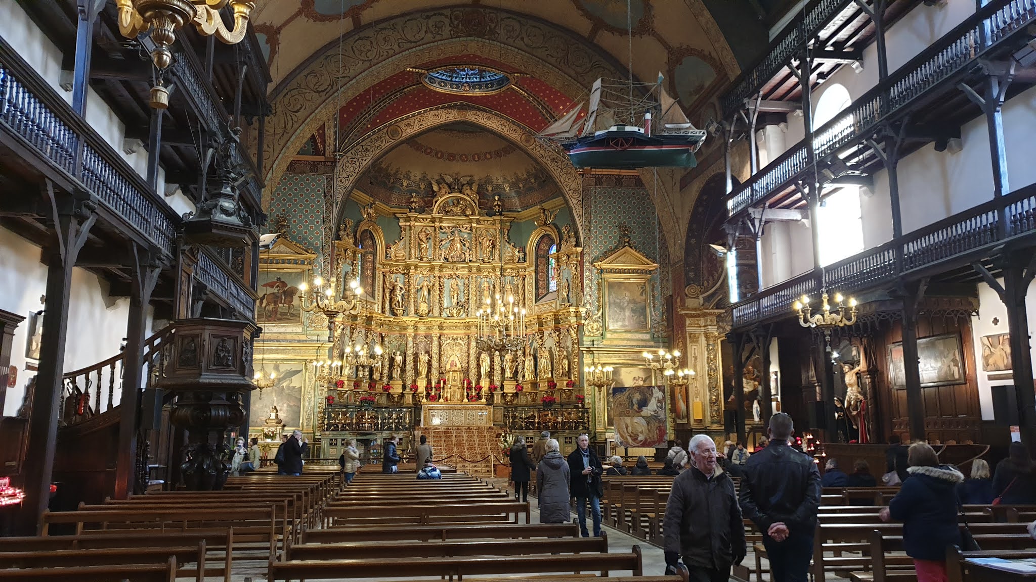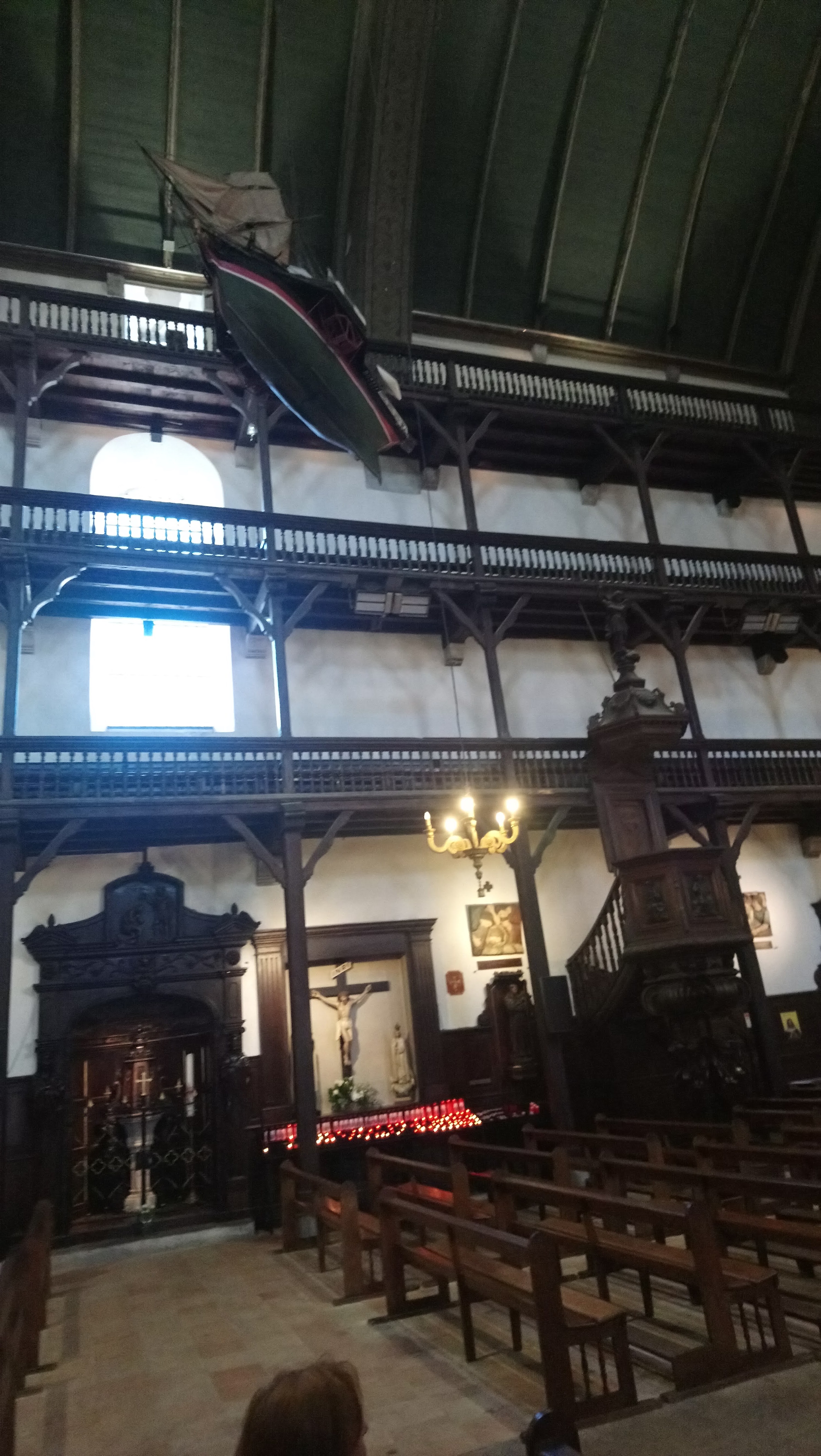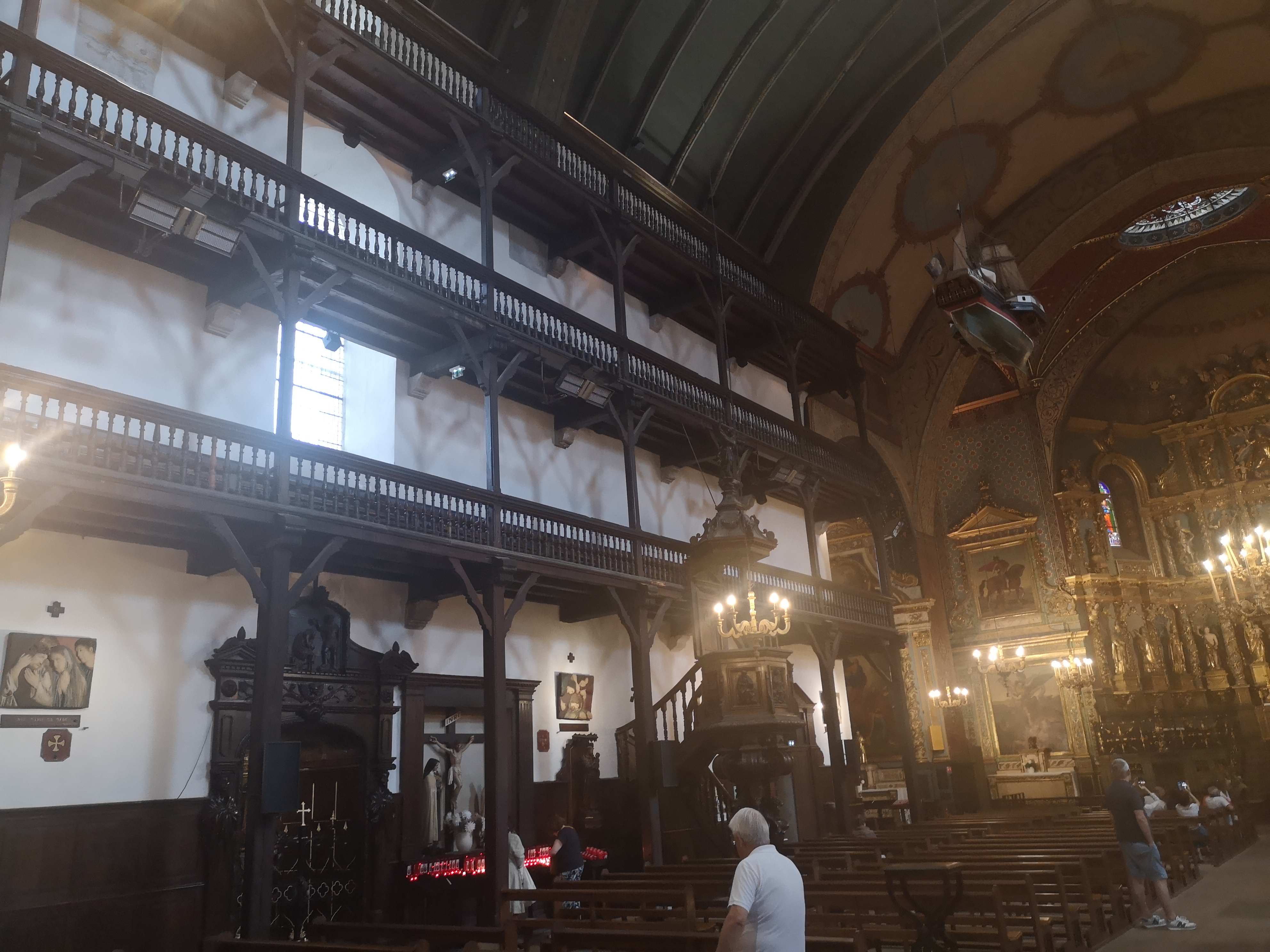 Très belle église par son intérieur richement décoré, qui avec ses étages à l'intérieur est peu commune (le principe me rappelle certaine synagogue). On comprend que la richesse du port a bénéficié aux voix du seigneur.