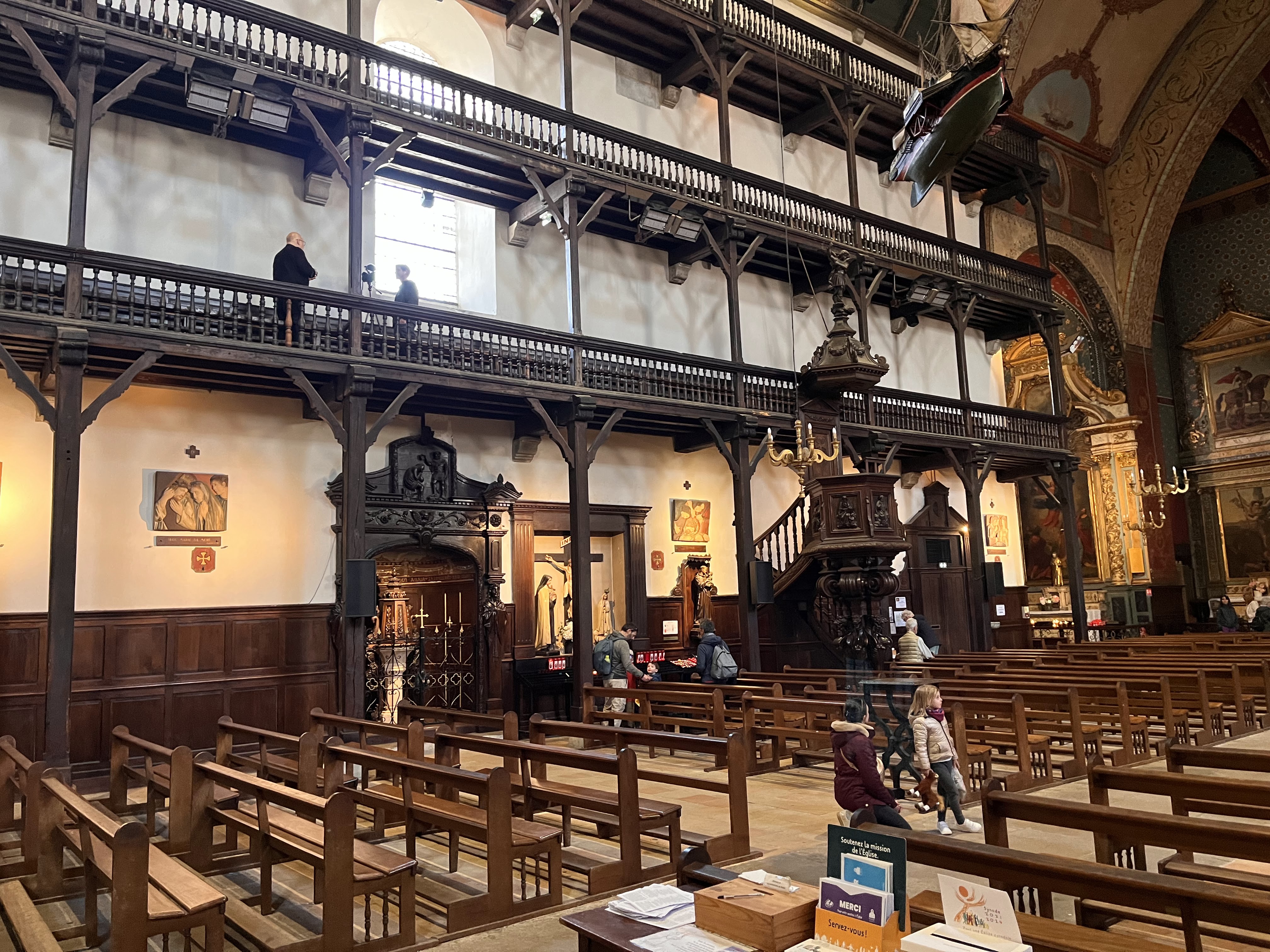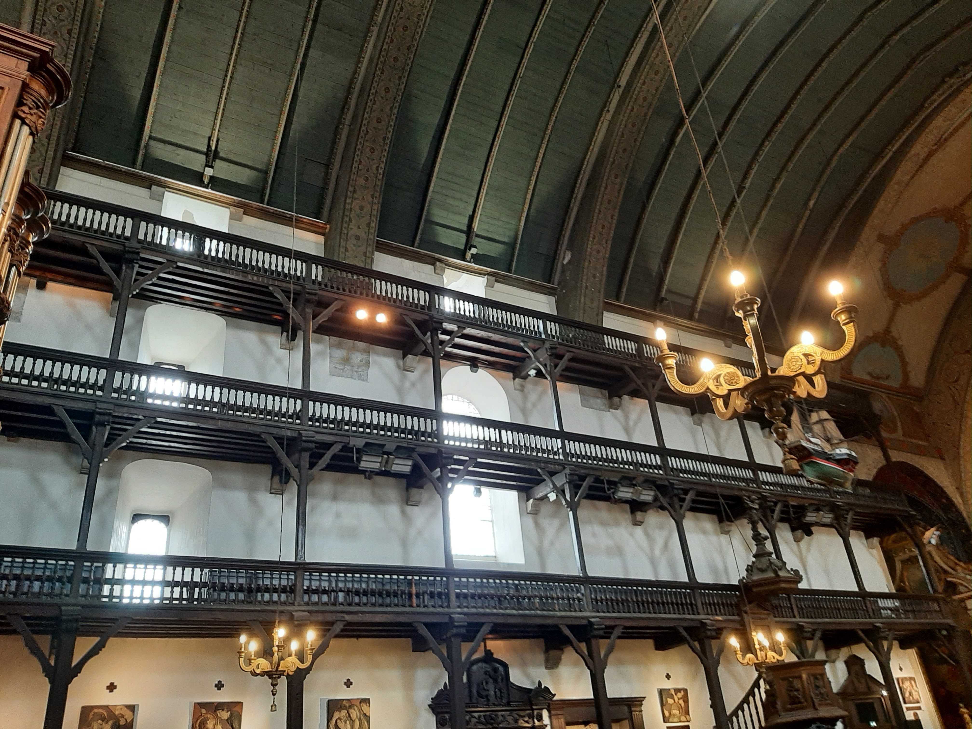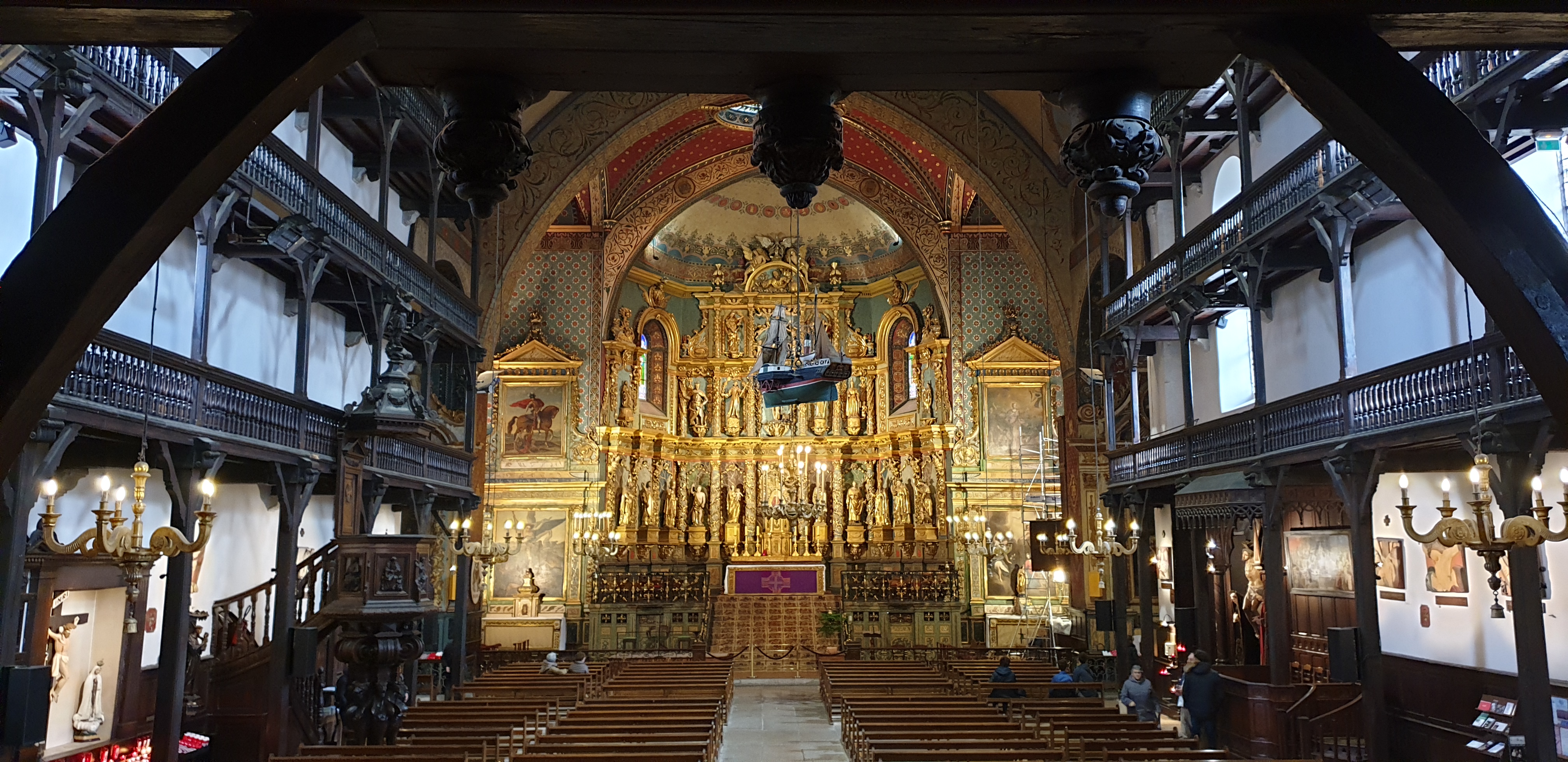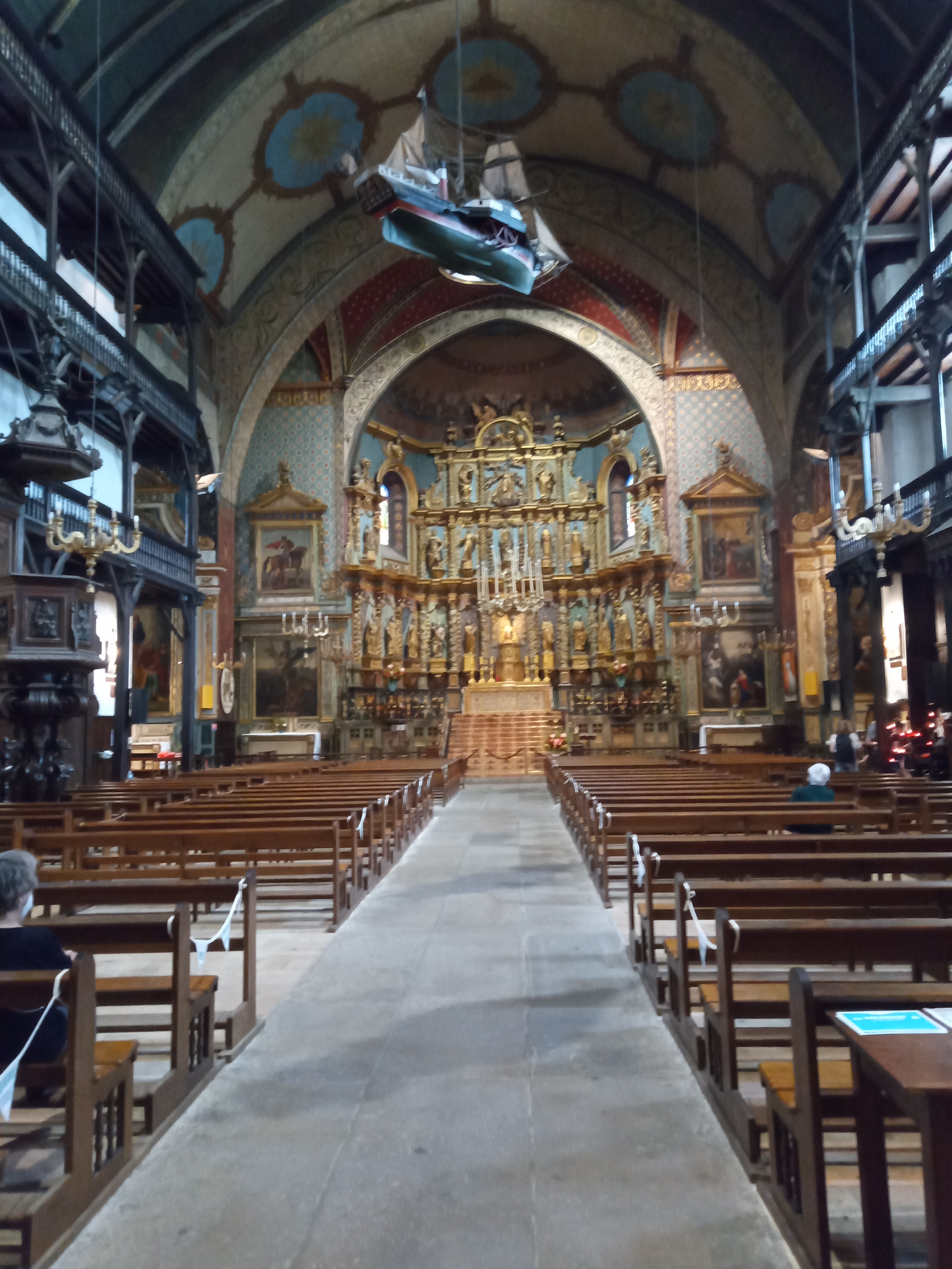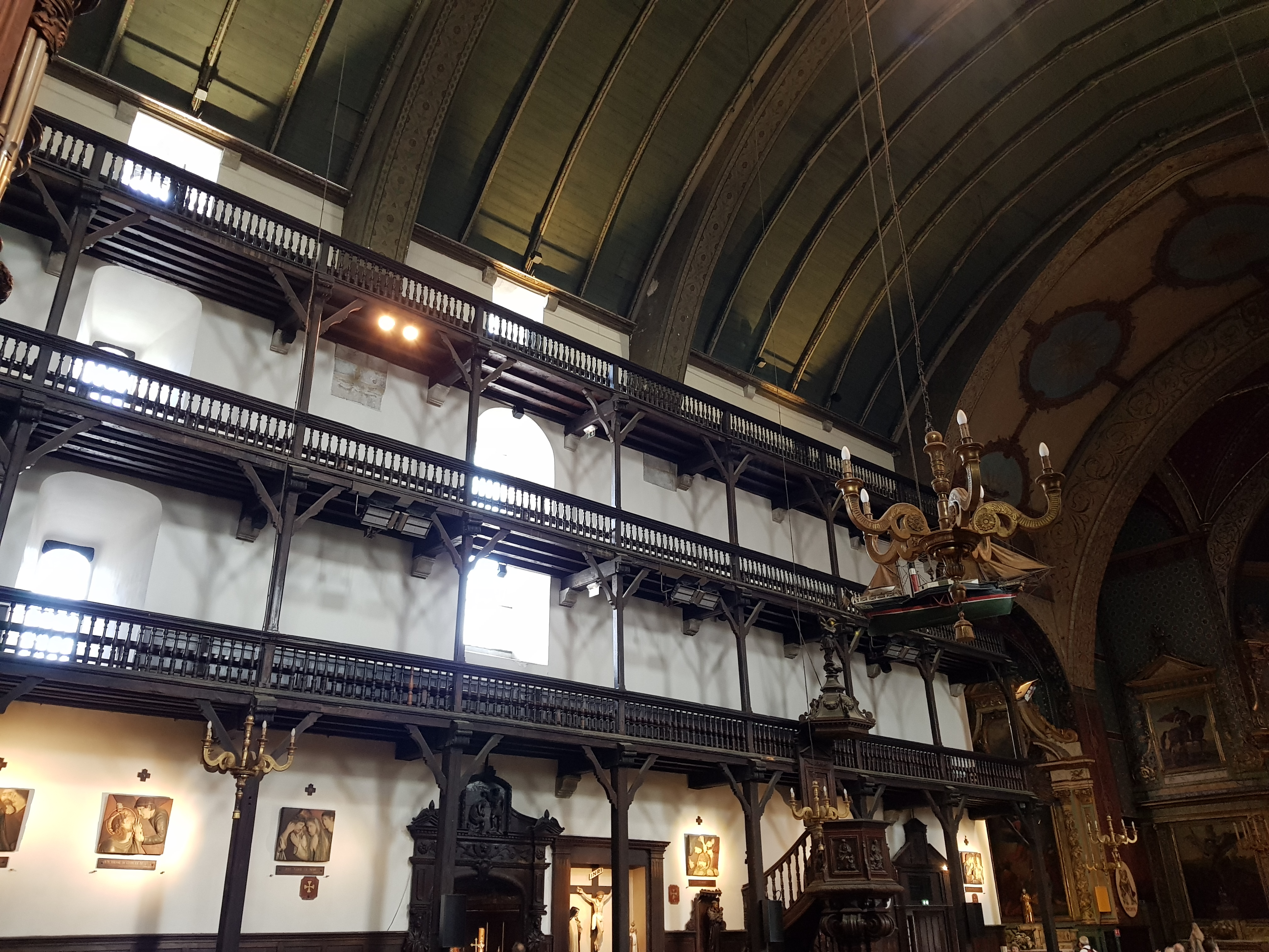 Très belle église par son intérieur richement décoré, qui avec ses étages à l'intérieur est peu commune (le principe me rappelle certaine synagogue). On comprend que la richesse du port a bénéficié aux voix du seigneur.