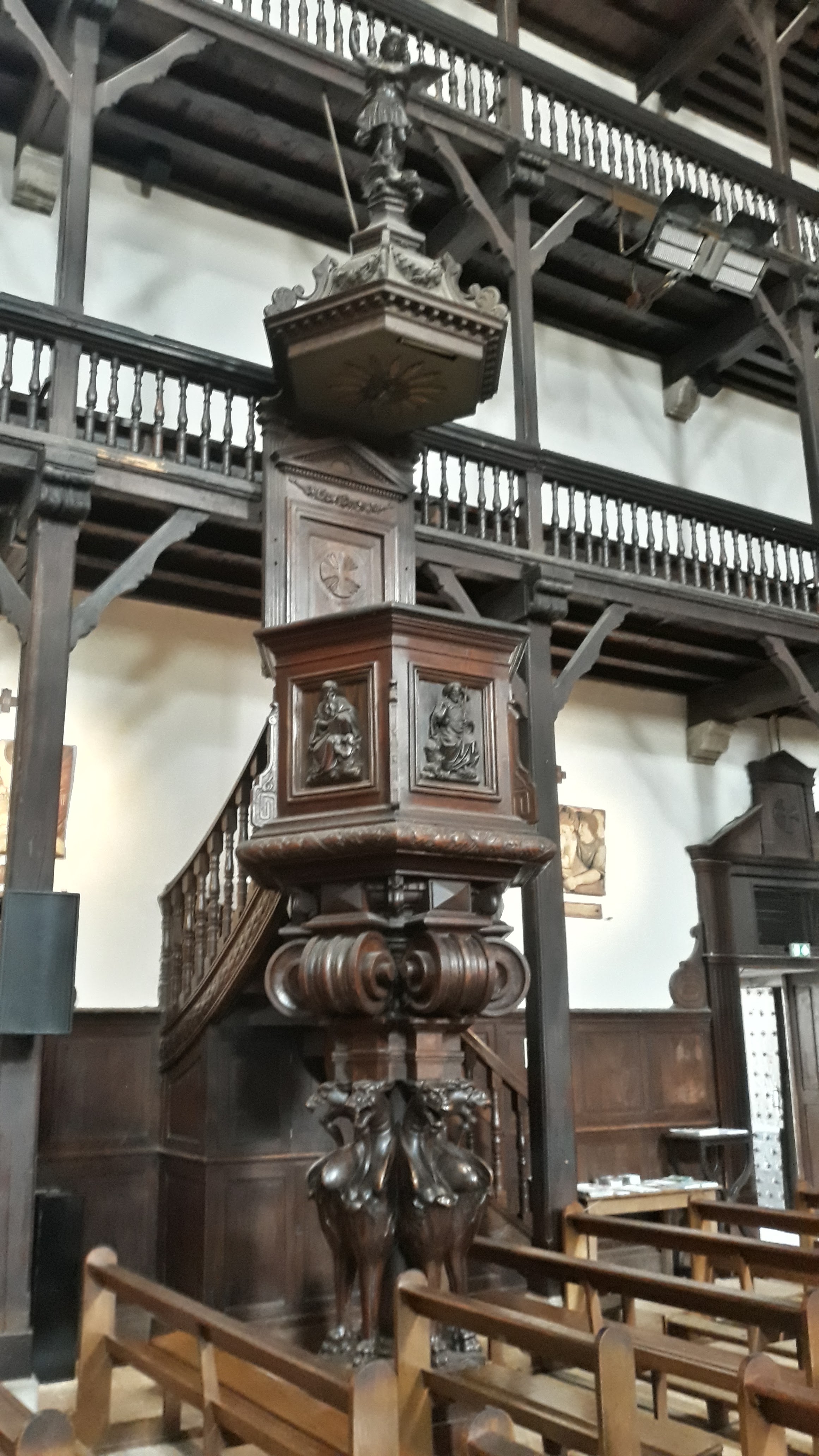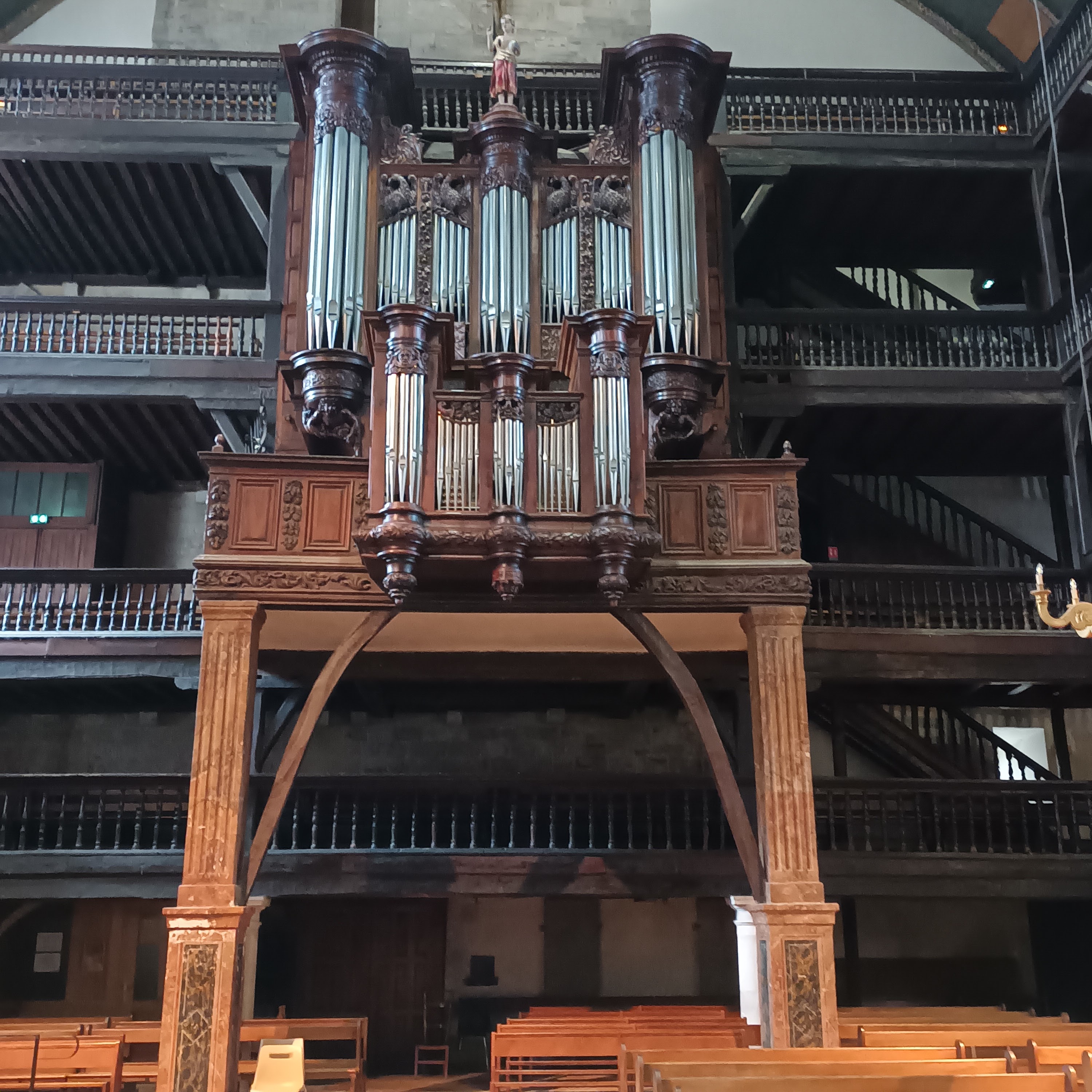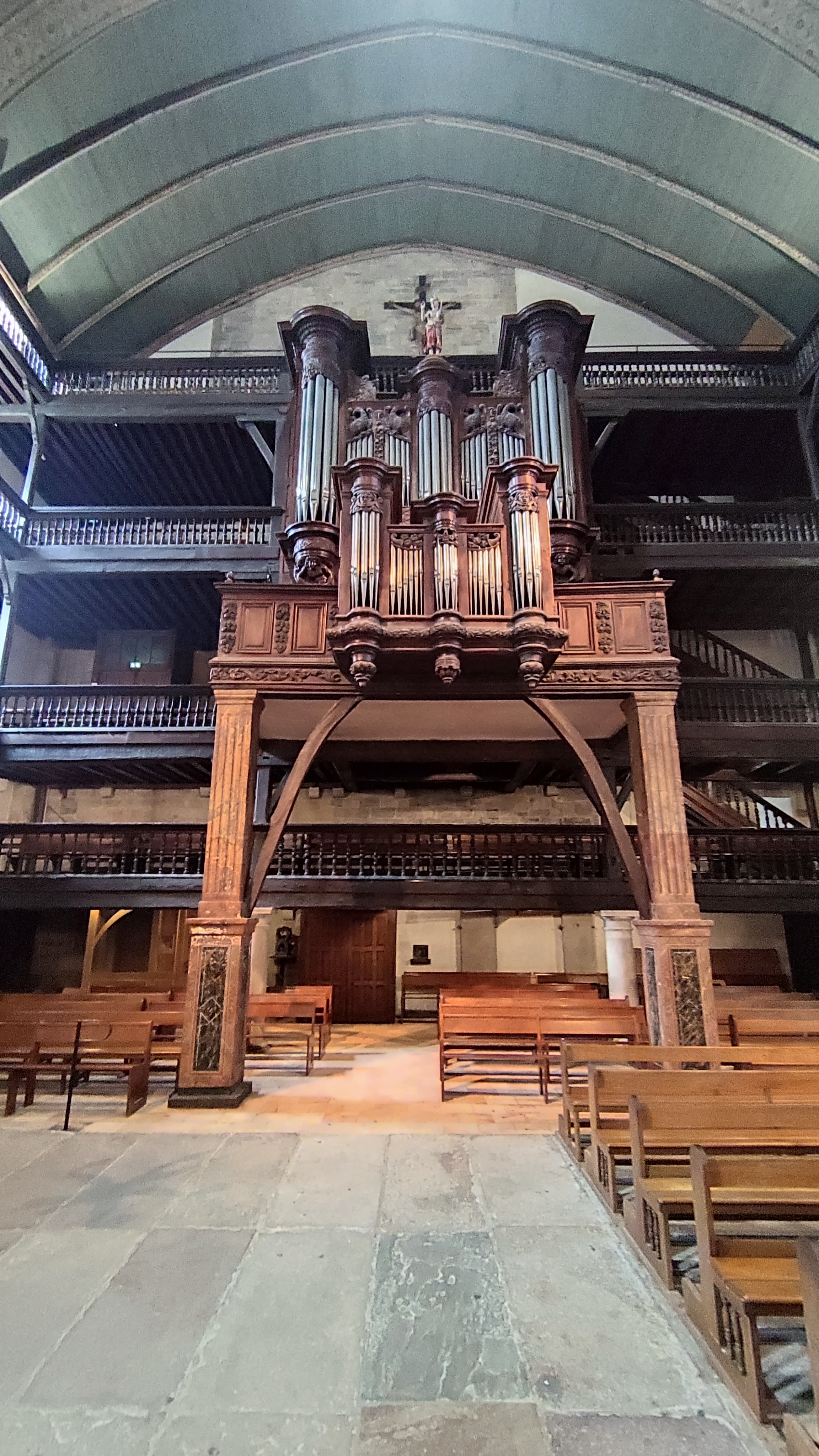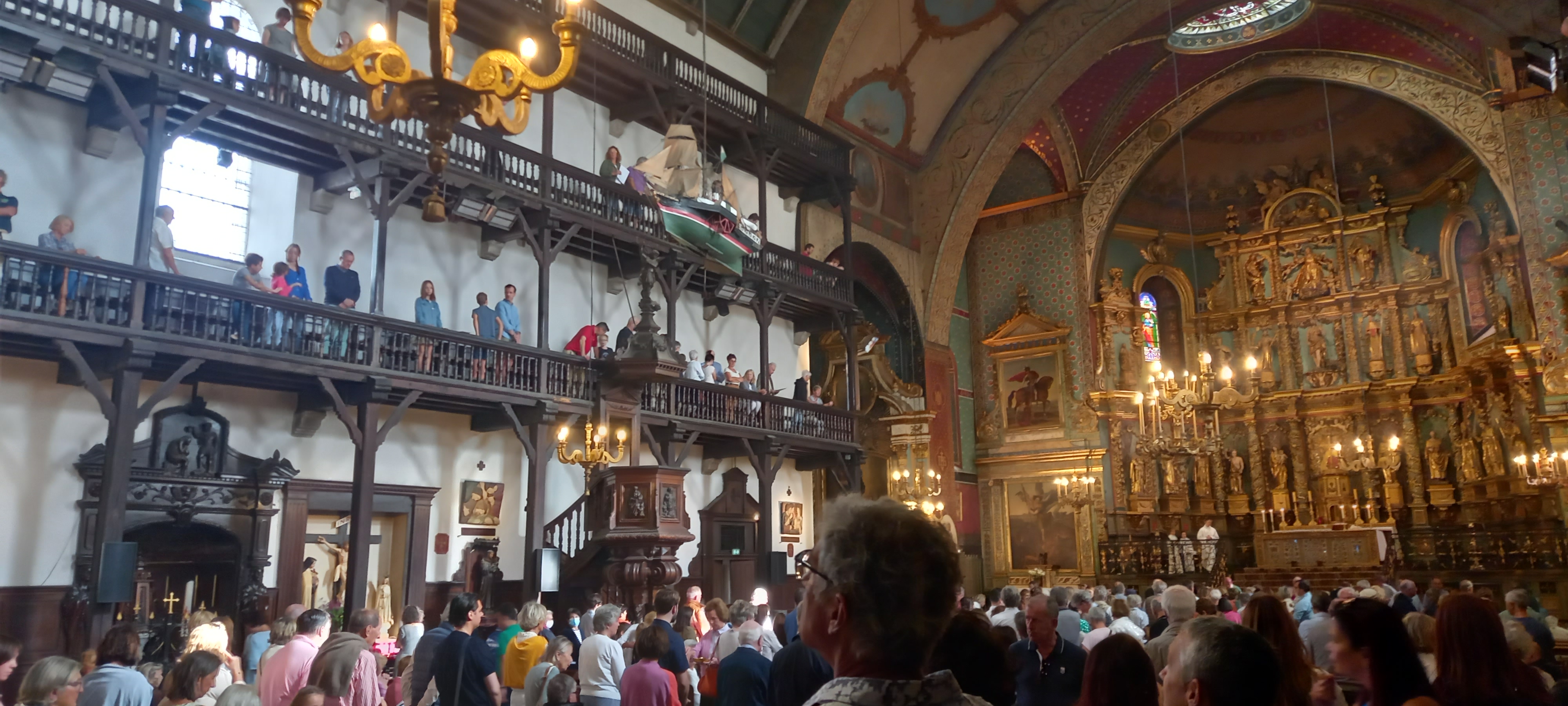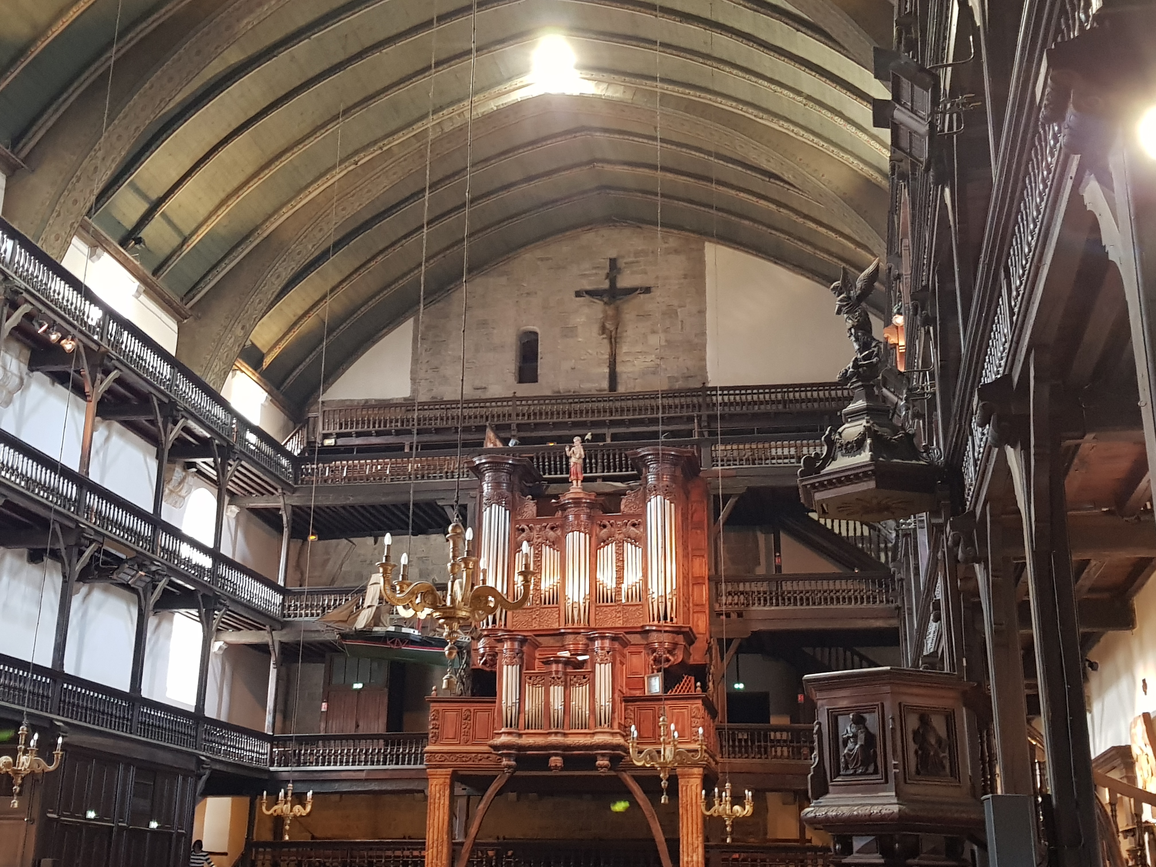 Très belle église par son intérieur richement décoré, qui avec ses étages à l'intérieur est peu commune (le principe me rappelle certaine synagogue). On comprend que la richesse du port a bénéficié aux voix du seigneur.