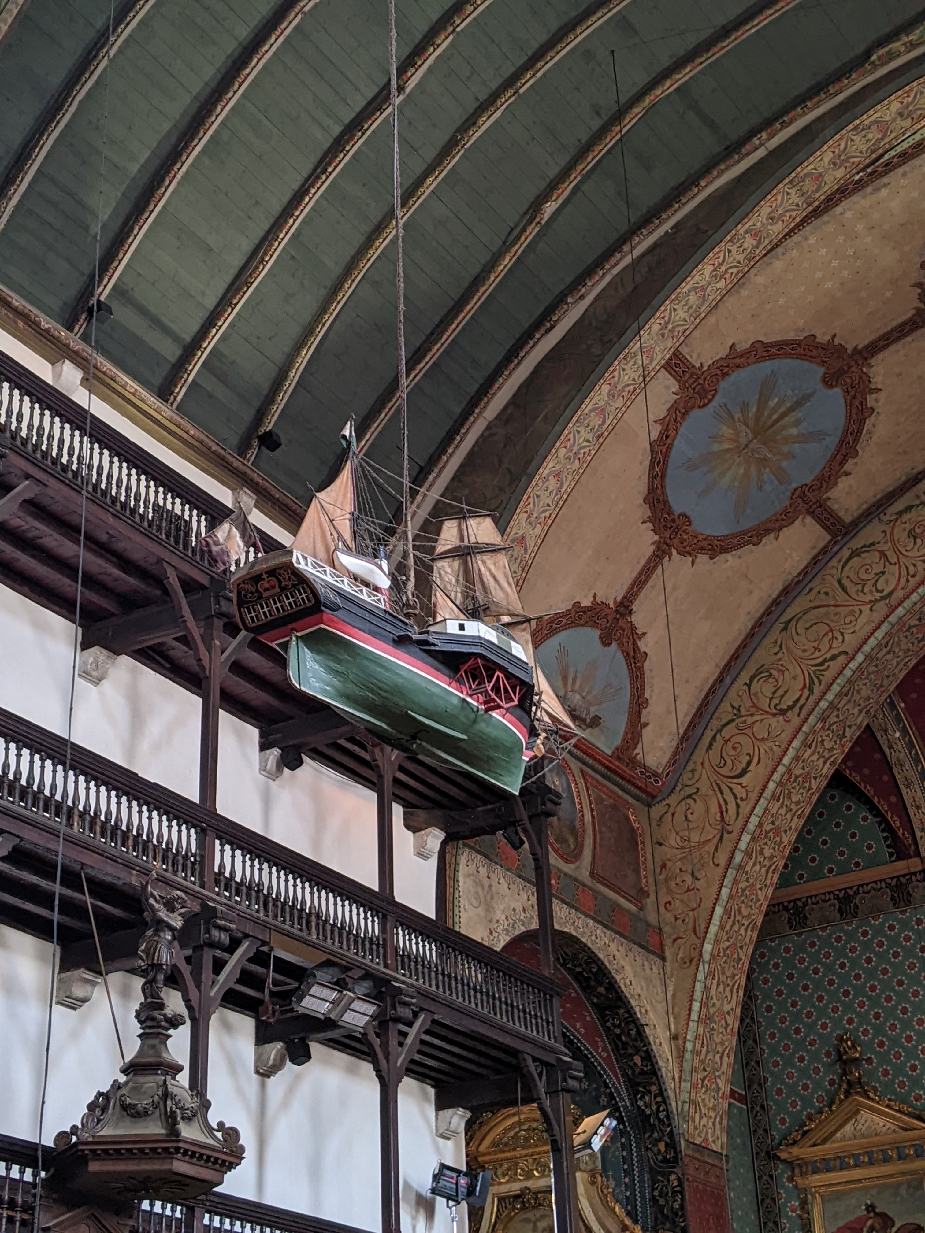 Magnifique monument. Si l'extérieur ne paye pas de mine, à l'intérieur c'est bluffant. On a vraiment la sensation que cette église est édifiée pour les marins. Le bois foncé est beaucoup présent, notamment sur les murs puisqu'il y a 3 étages constituées de bancs supplémentaires. La décoration faite au niveau du choeur est juste incroyable.