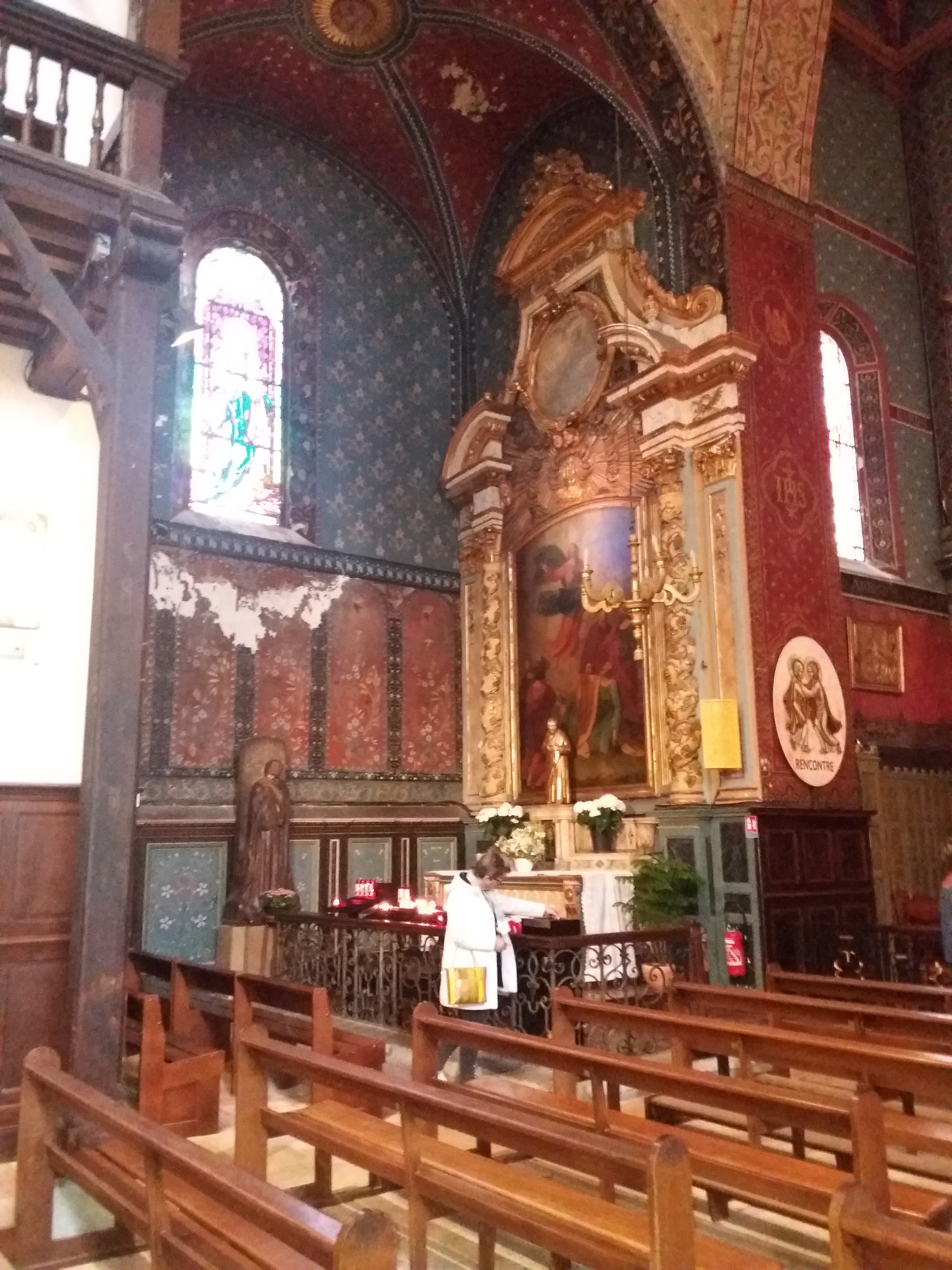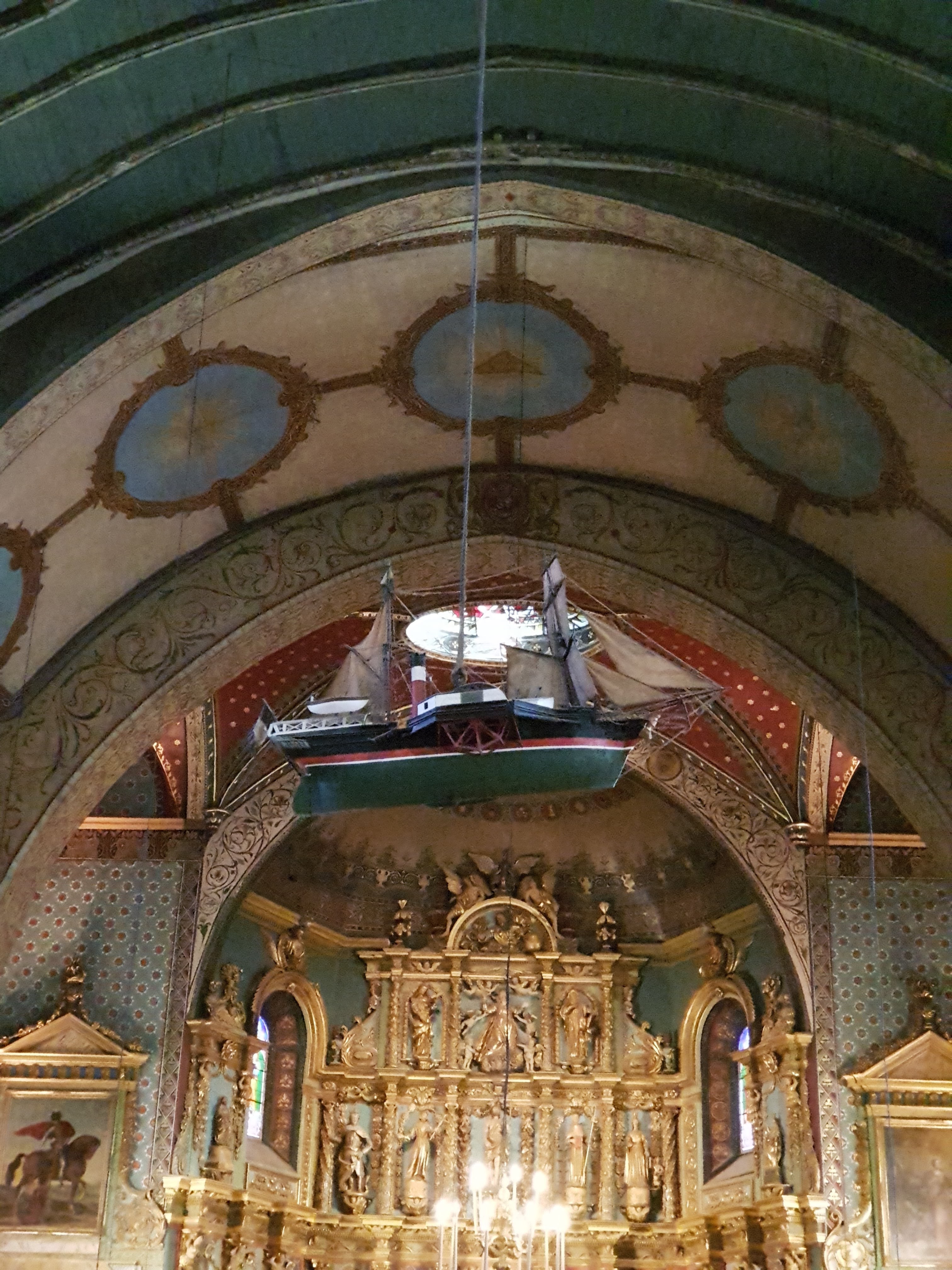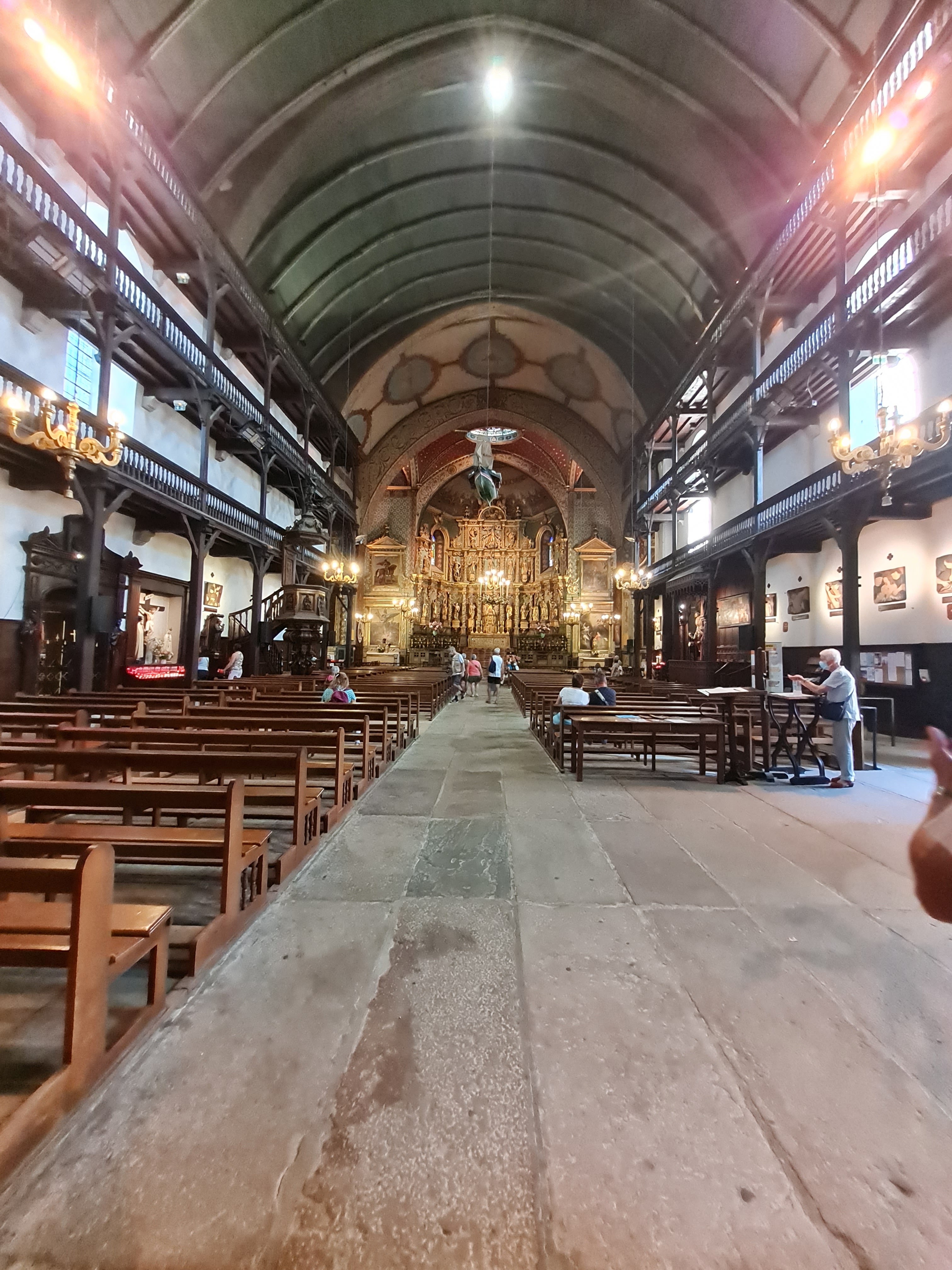 Je dois vous avouer que de l'extérieur elle ne paye pas de mine plus que ça. Mais lorsque l'on se faufile à l'intérieur c'est grandiose un retable magnifique que vous pouvez éclairé quelques minutes en mettant une pièce sur la droite sublime. Je l'ai trouve original avec ses constructions bois , ce bateau qui flotte tel un oiseau, c'est un endroit à visite absolument.