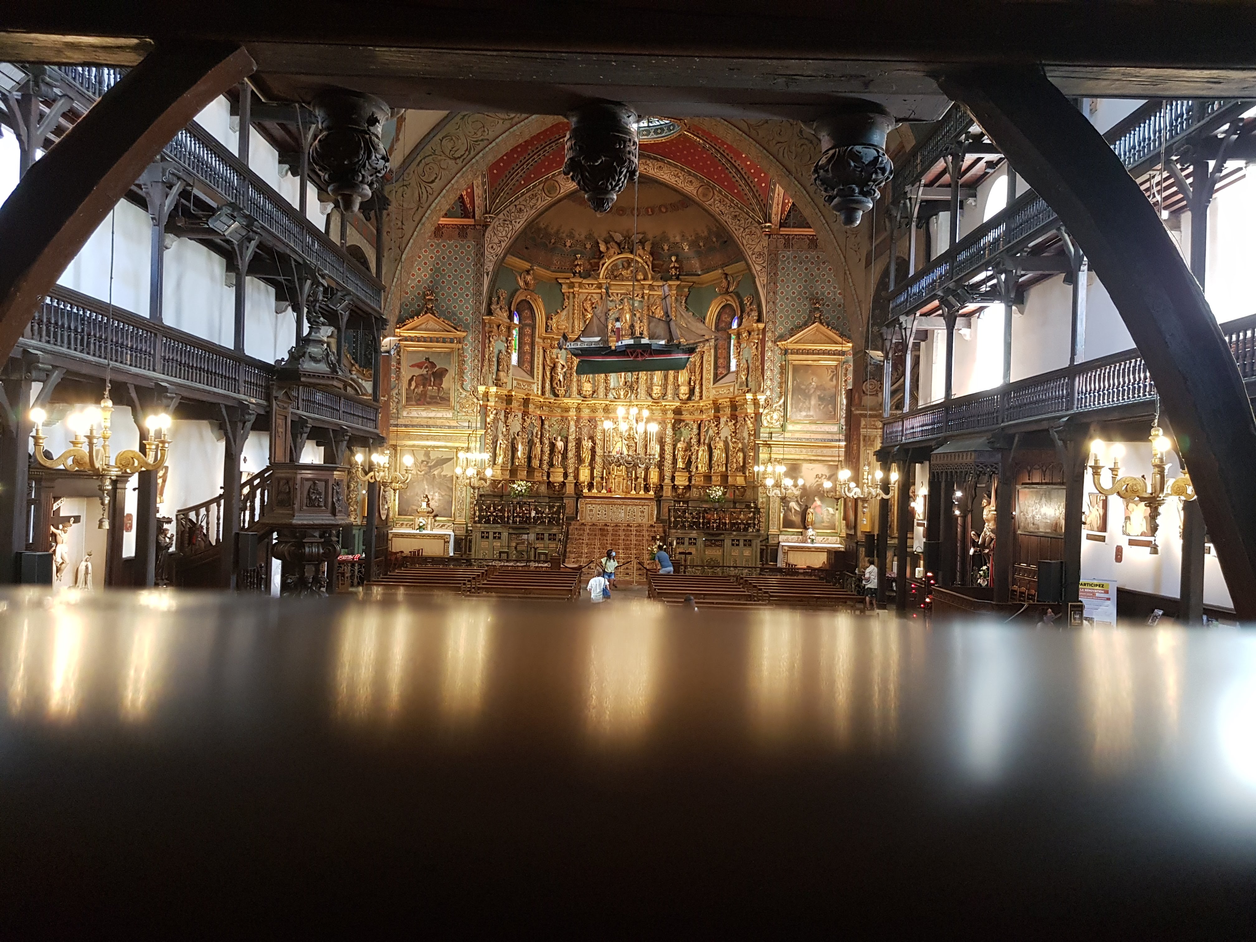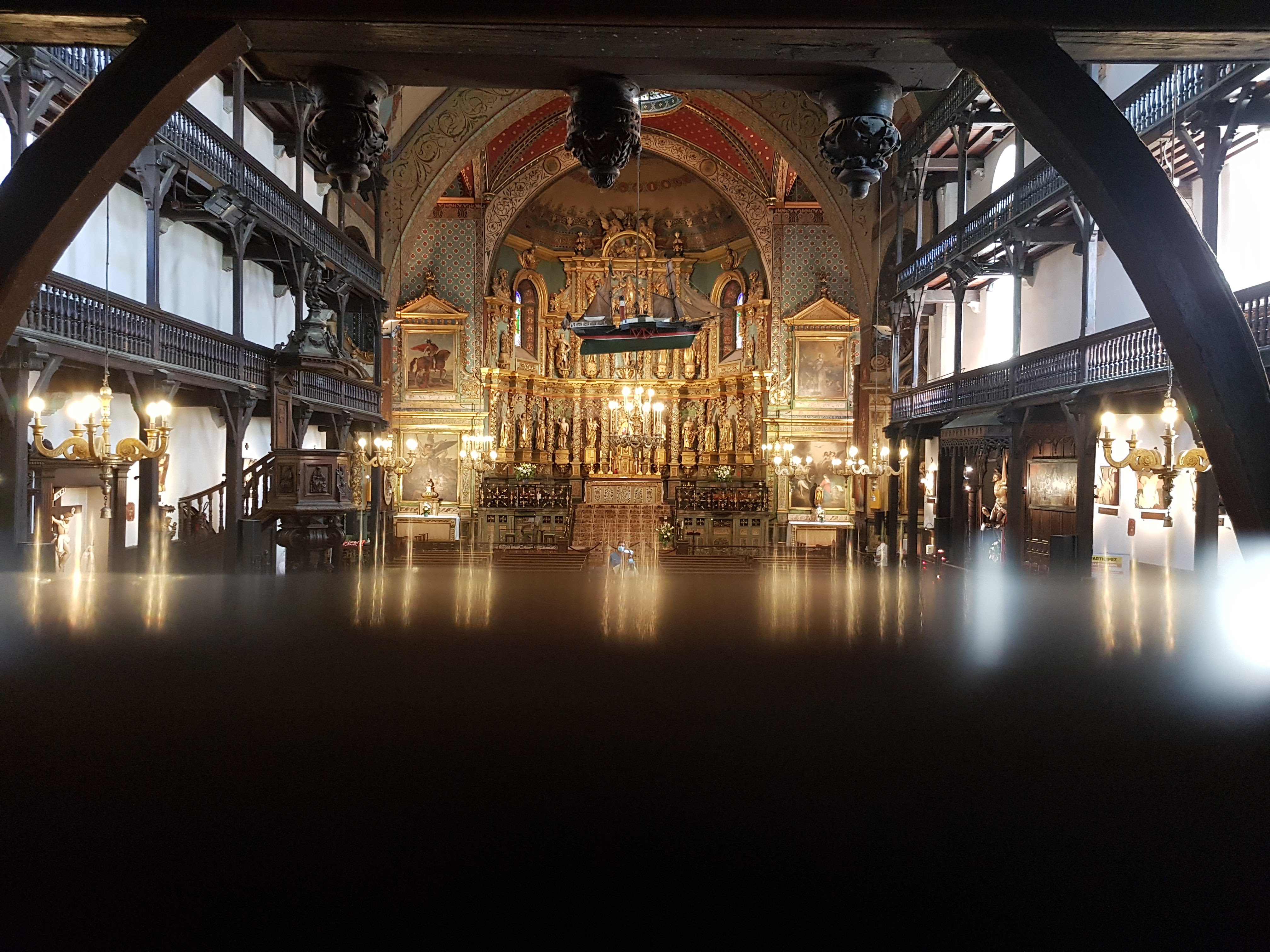 Magnifique retable pour une église basque typique avec balcons en bois Lieu chargé d’histoire avec notamment le mariage de Louis IV et l’infante d’Espagne