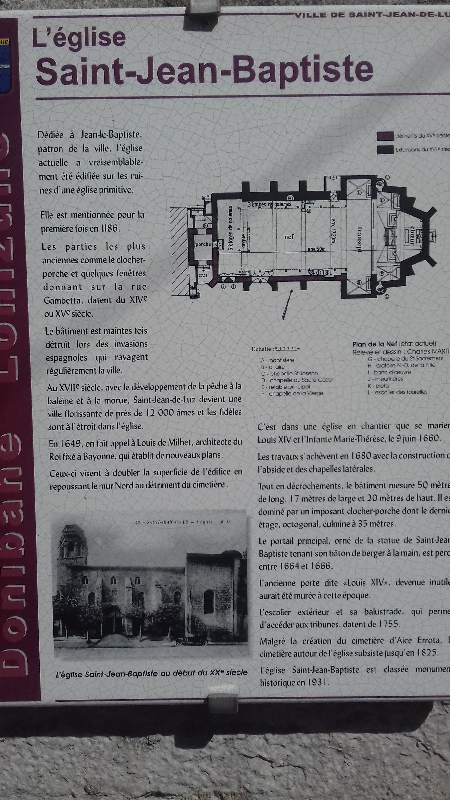 Ce lieu transpire l histoire. Rien que de penser que Louis XIV c est marié dans cette église de Saint Jean de Luz rend cet endroit émouvant. Les balcons sont typiques du Pays Basque. Les marins sont chez eux dans ce saint lieu, un bateau trône en plein milieu. De remarques tableaux sont visibles. En cours de rénovation mais reste ouvert au public. A faire si vous passer par ce magnifique village.